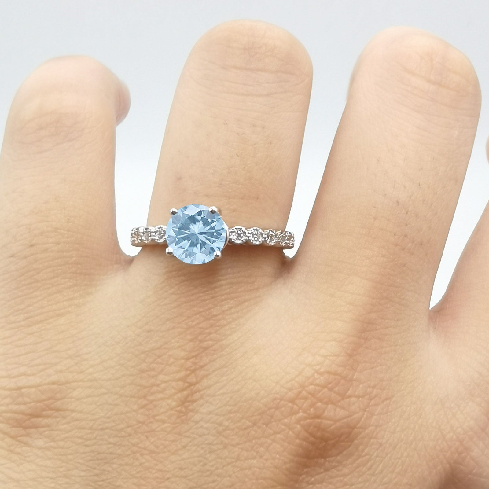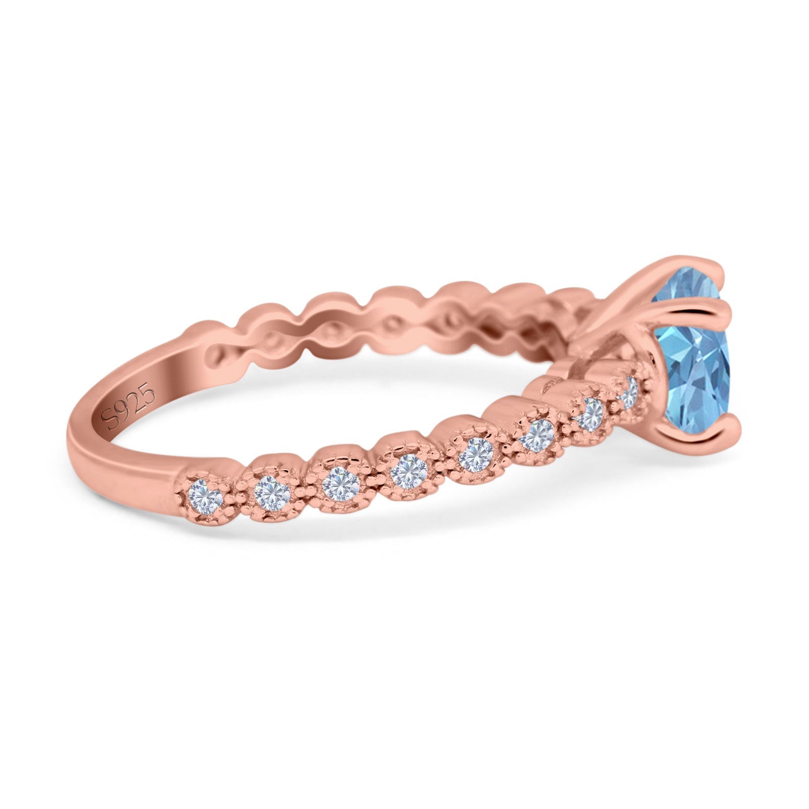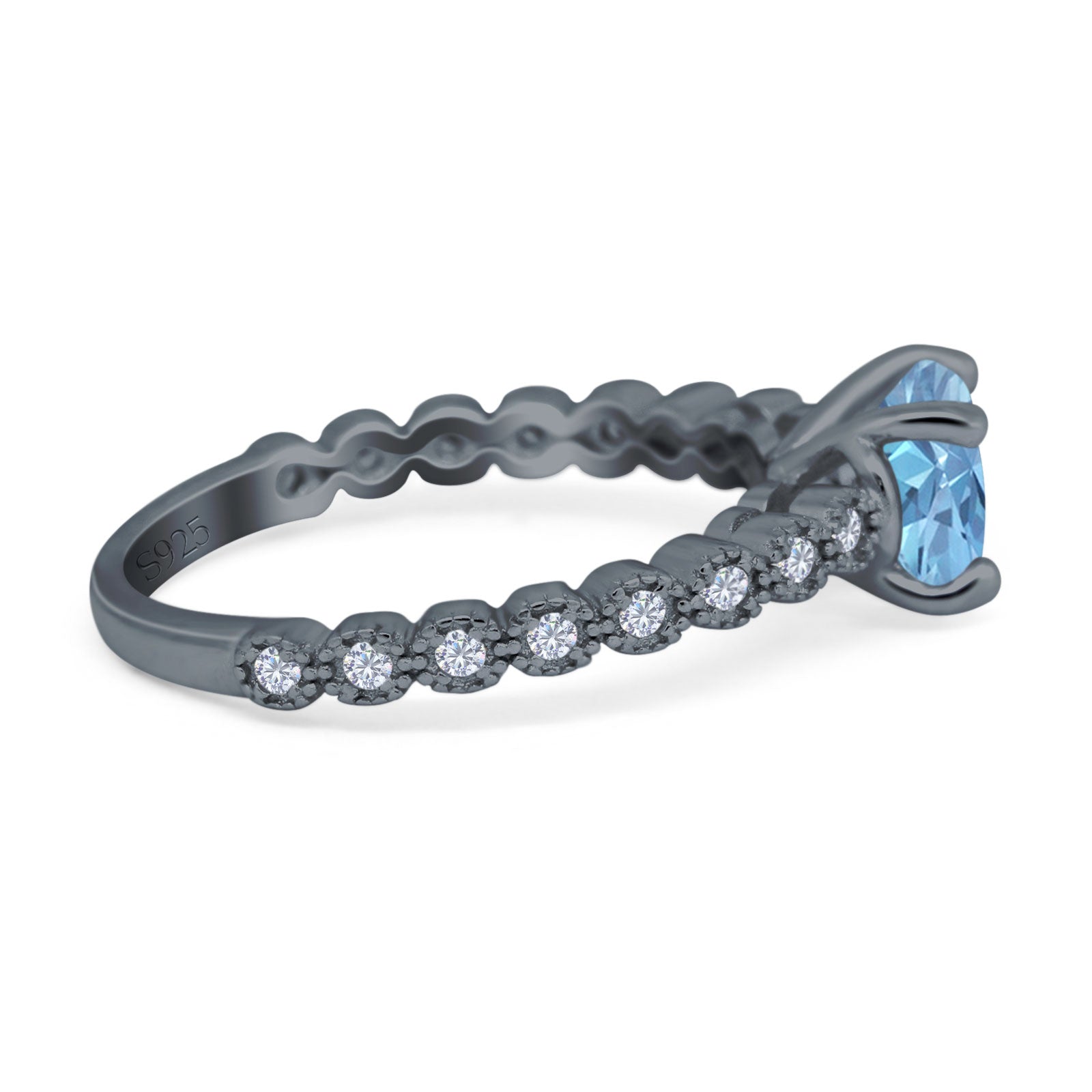Round Natural Aquamarine Vintage Style Art Deco Ring 925 Sterling Silver