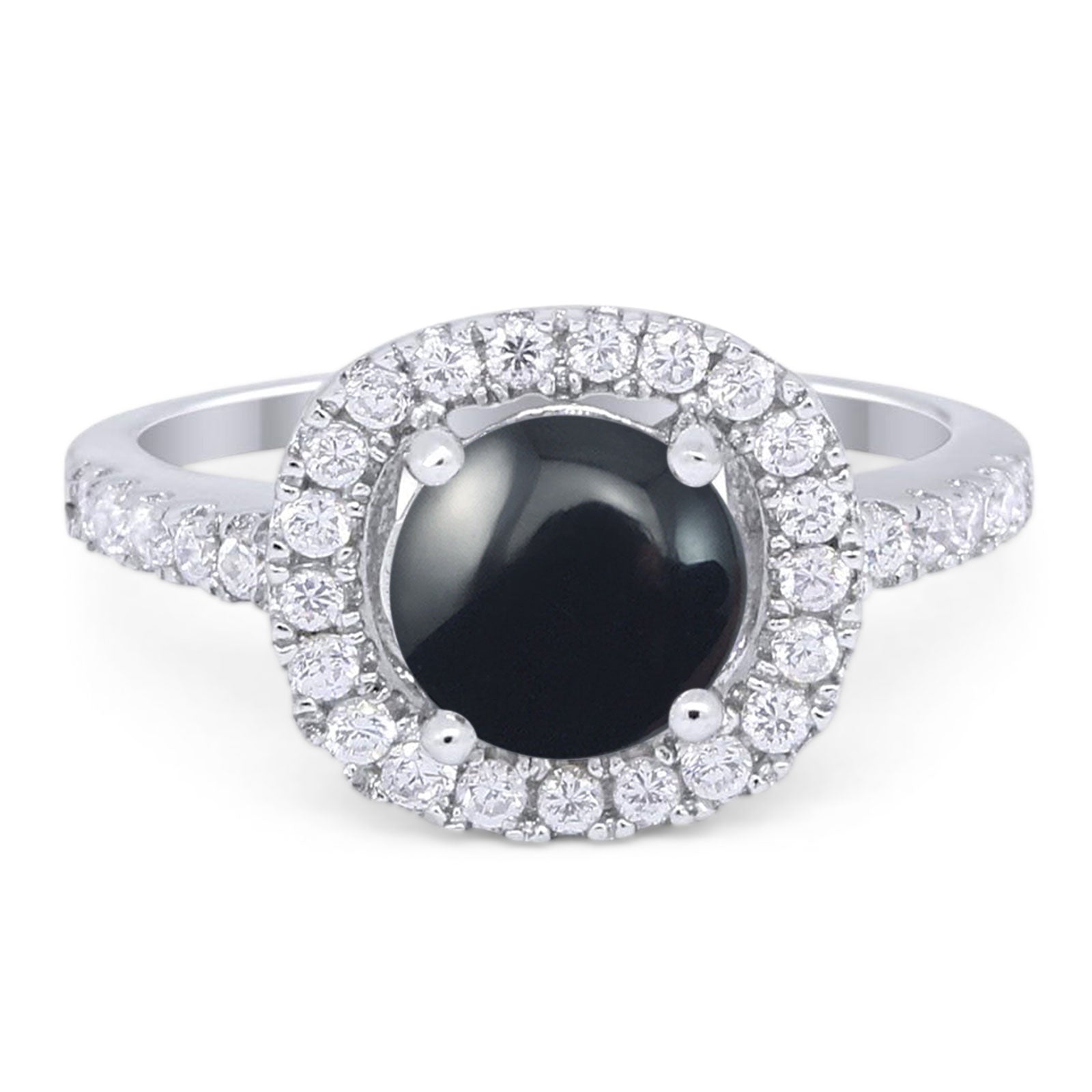 Round Natural Black Onyx Art Deco Halo Ring 925 Sterling Silver