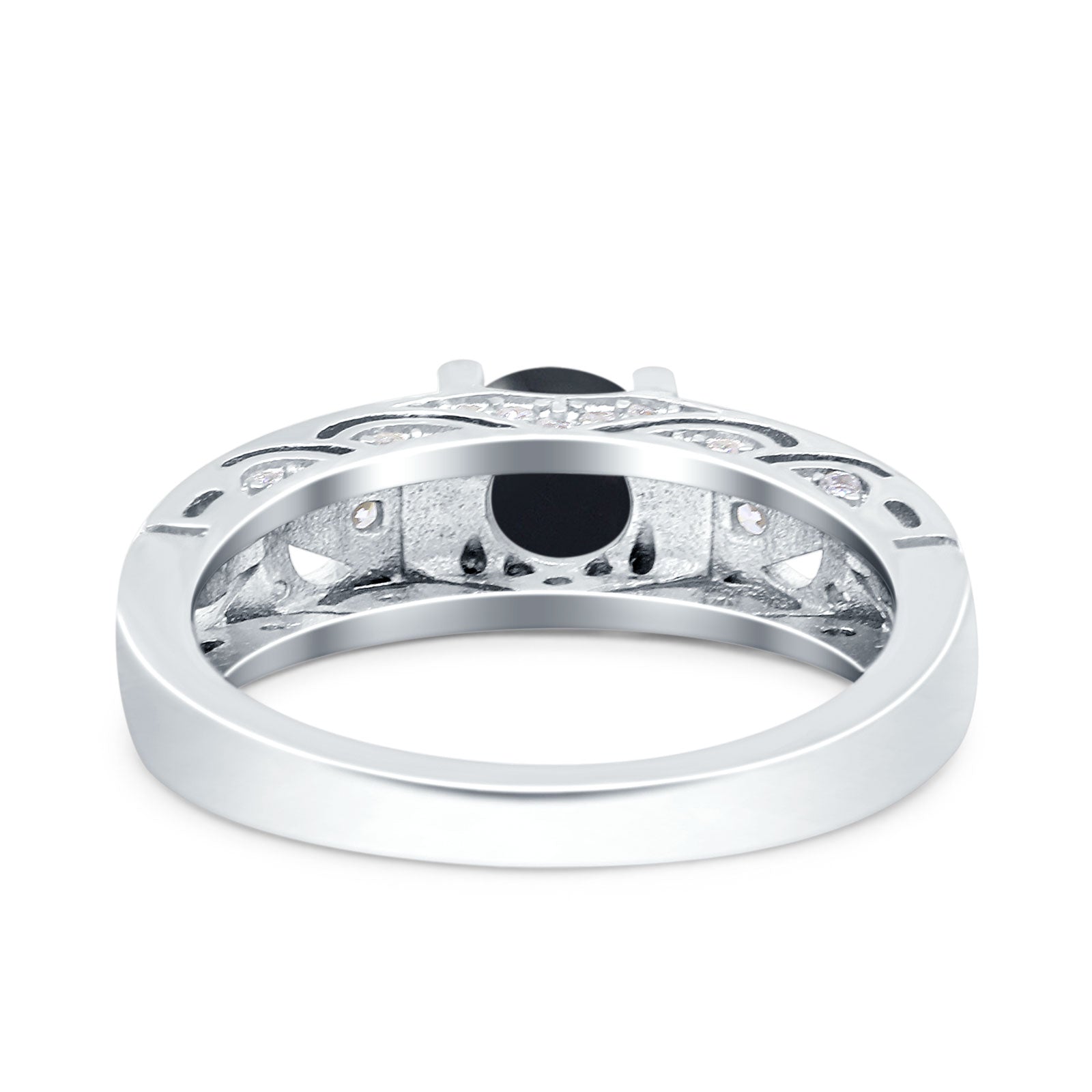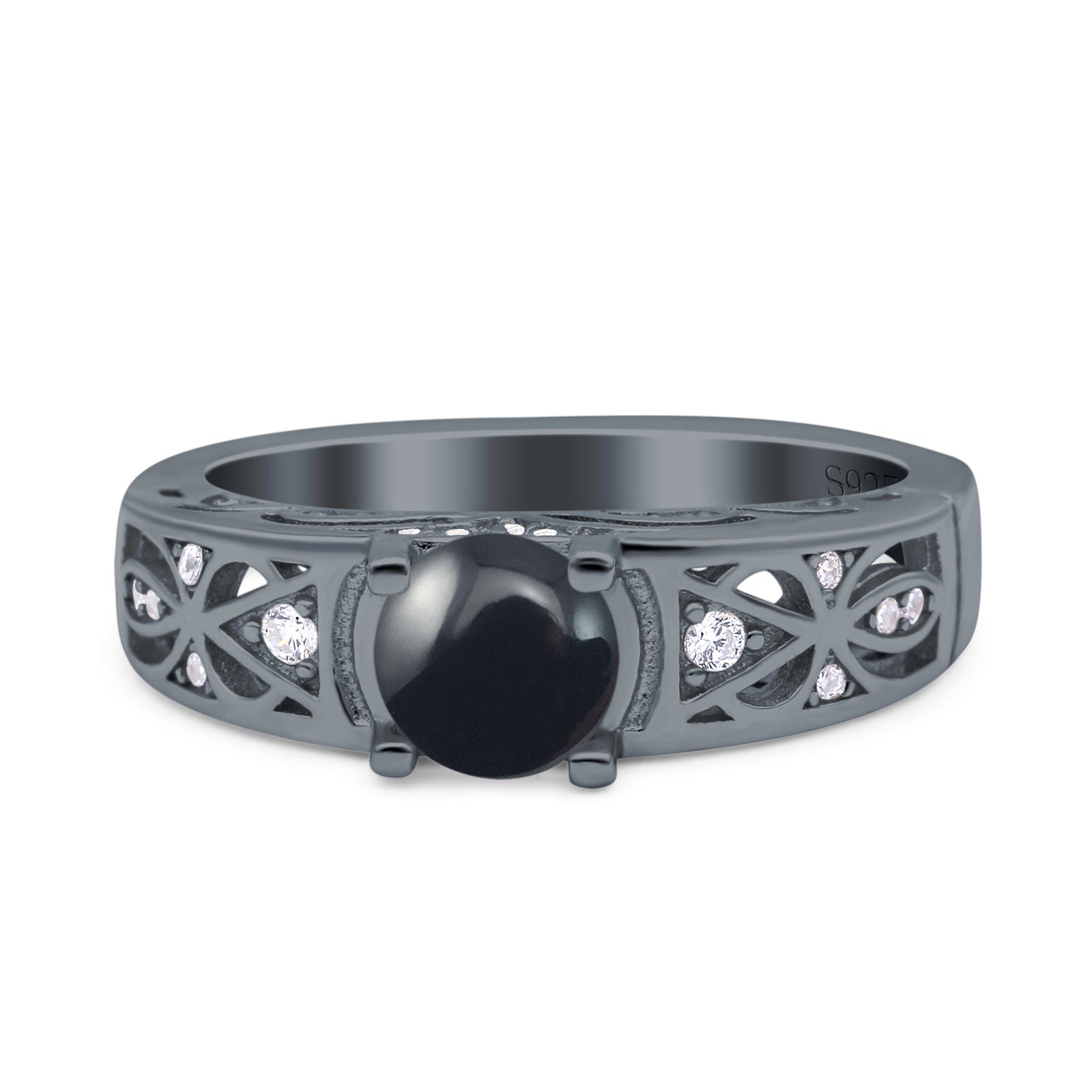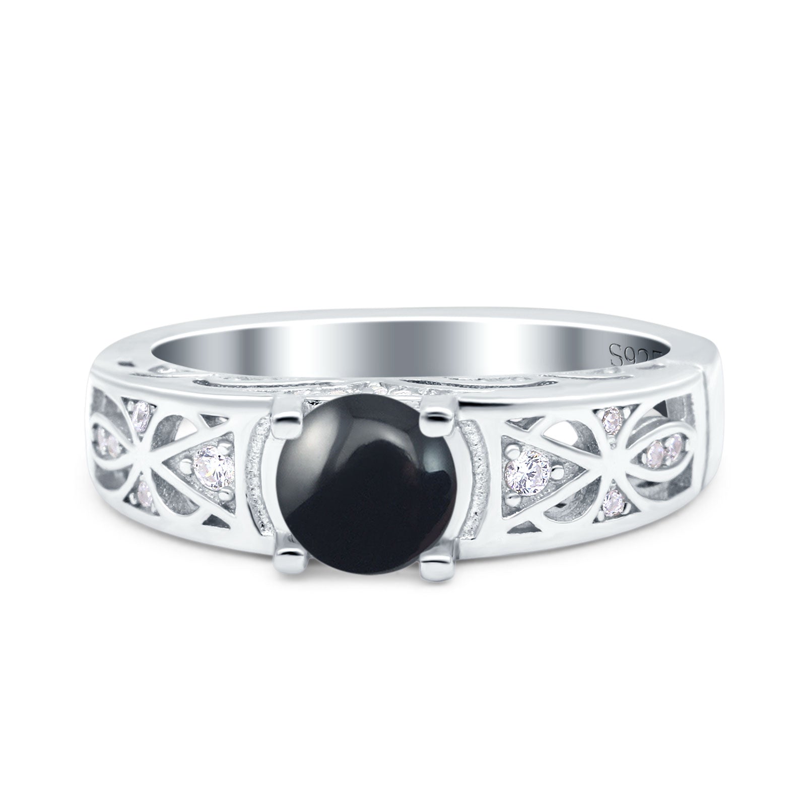 Round Natural Black Onyx Filigree Design Ring 925 Sterling Silver