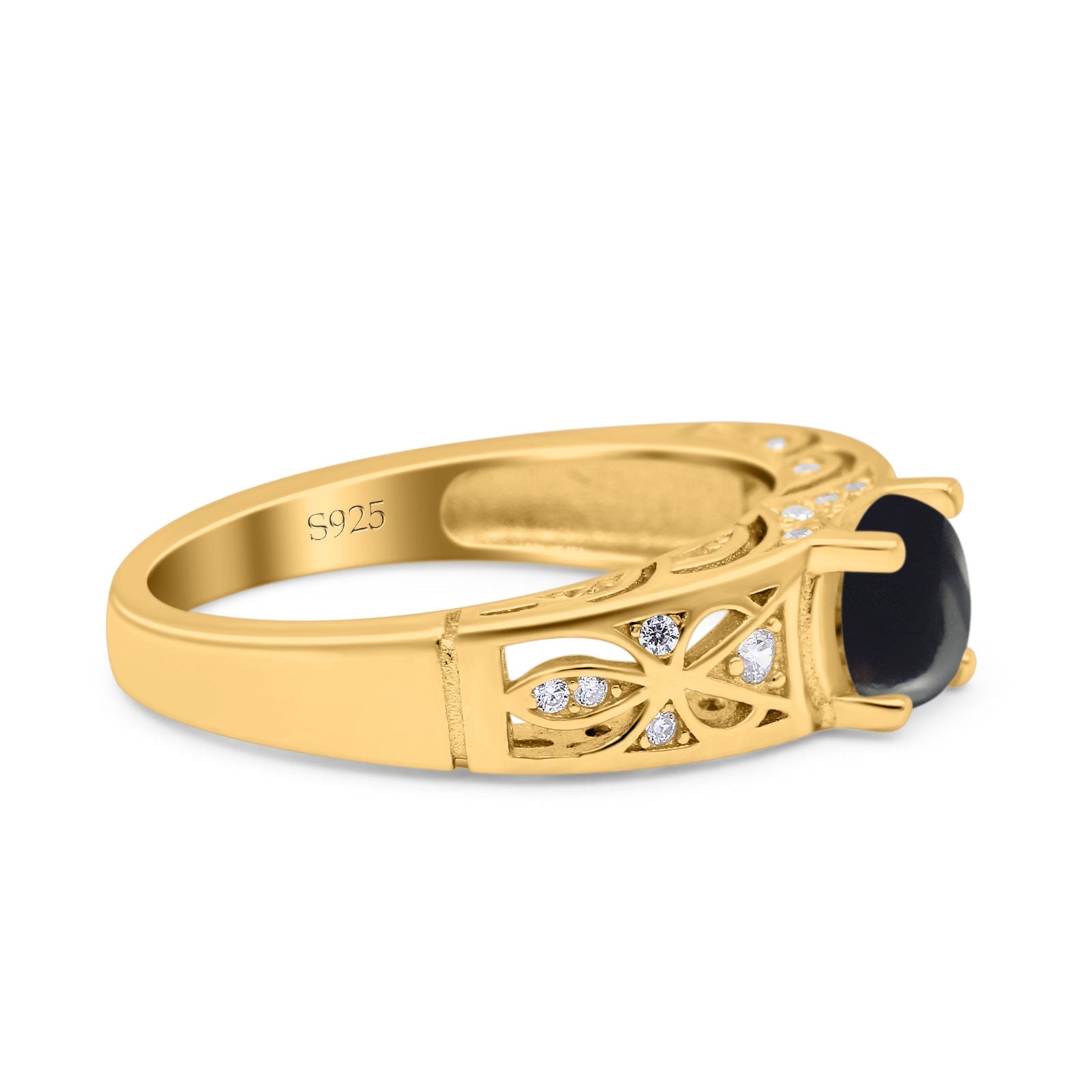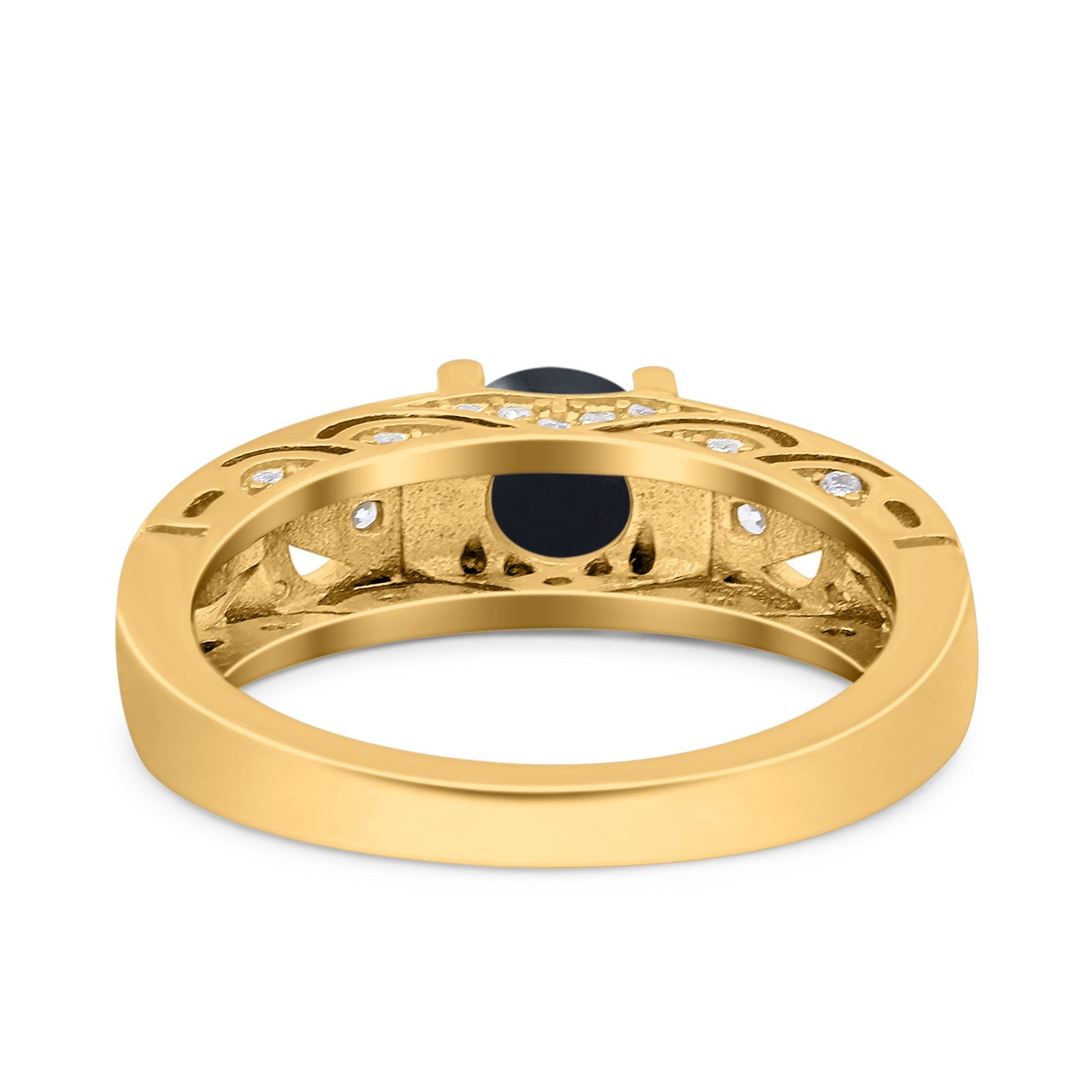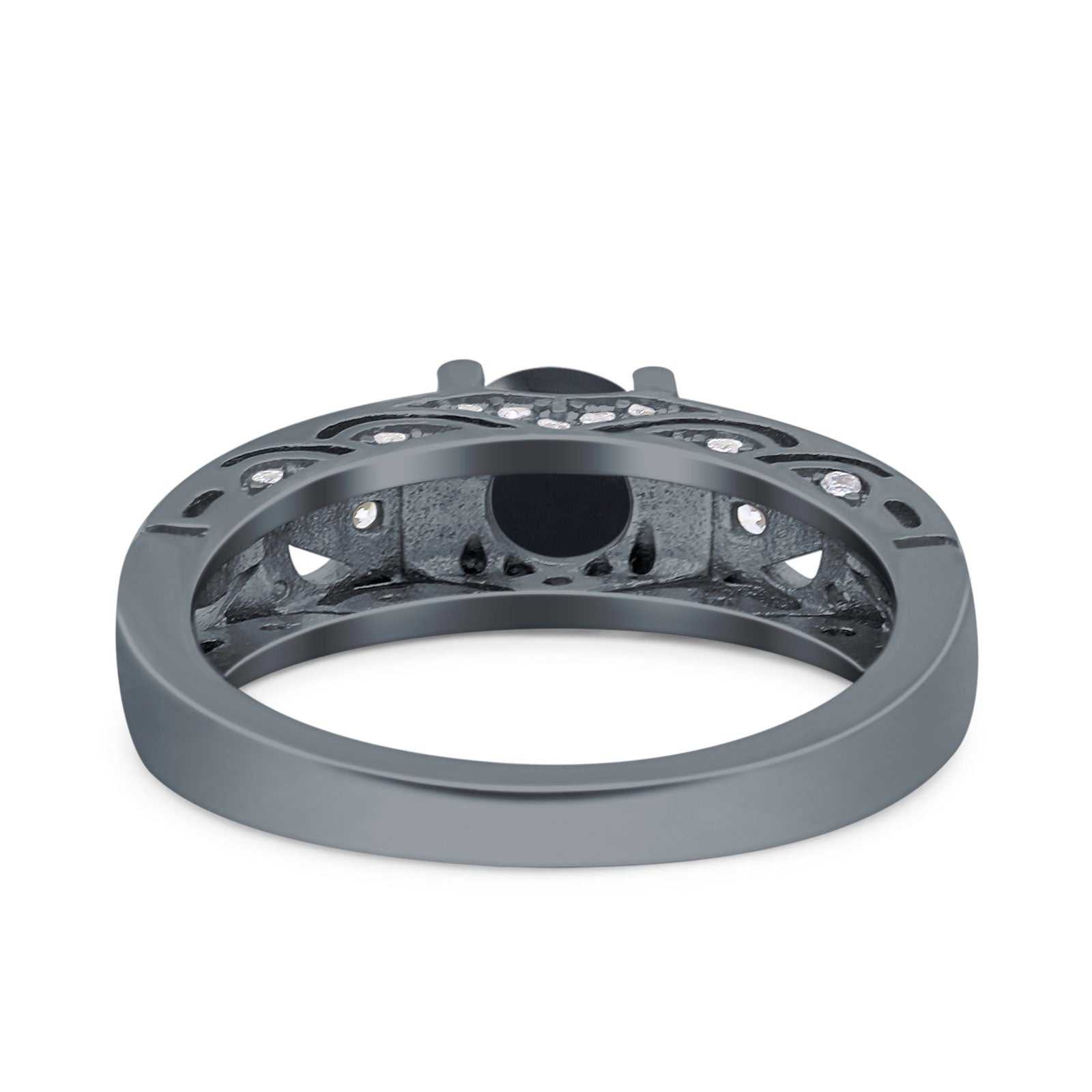 Round Natural Black Onyx Filigree Design Ring 925 Sterling Silver