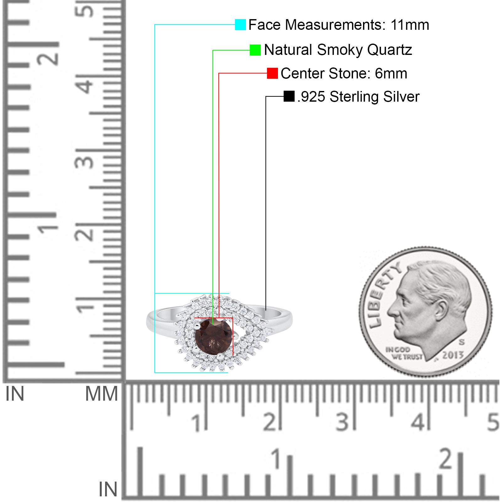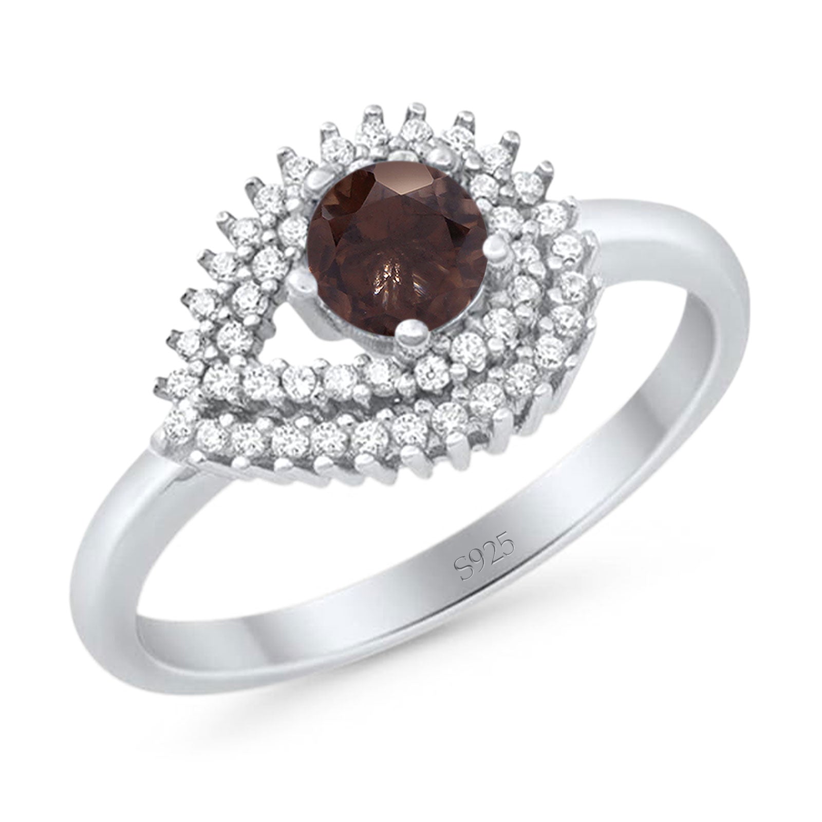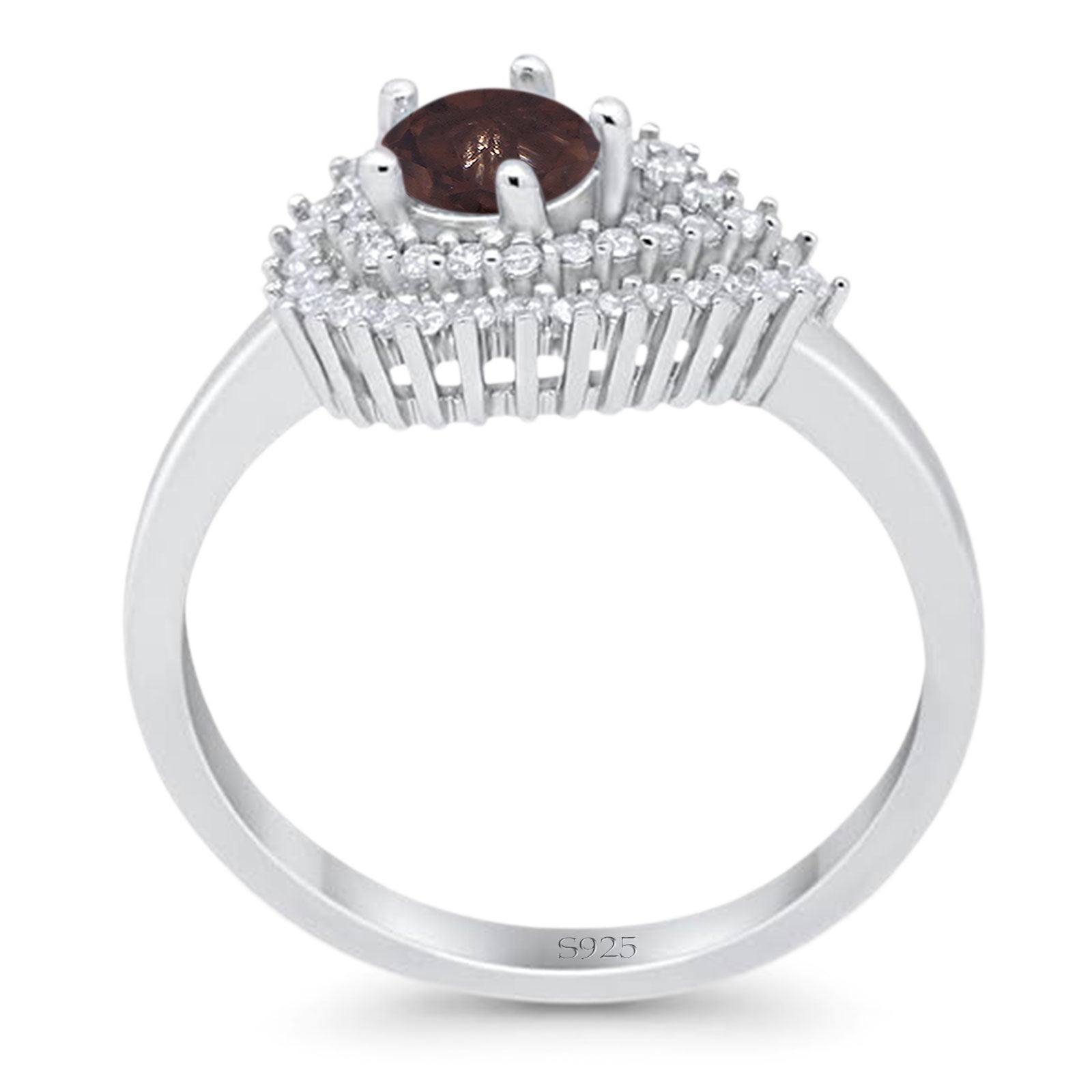 Round Natural Chocolate Smoky Quartz Sideways Pear Halo Ring 925 Sterling Silver