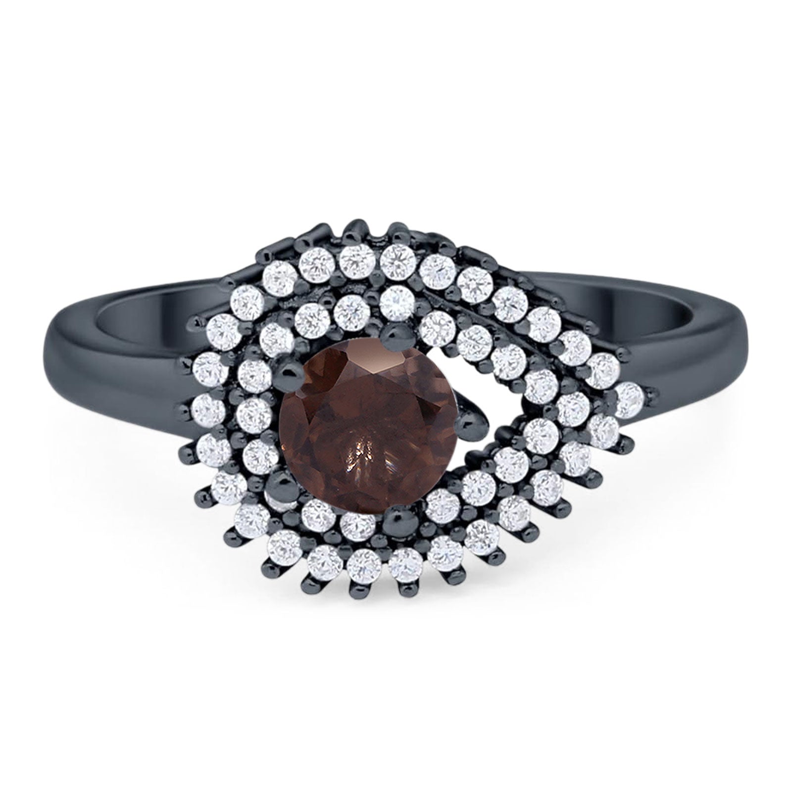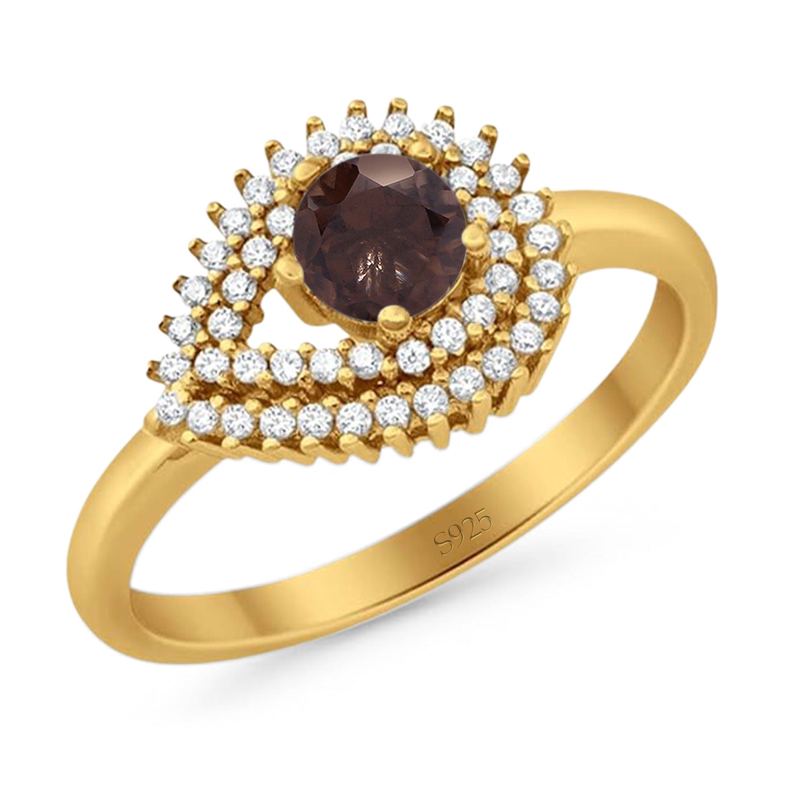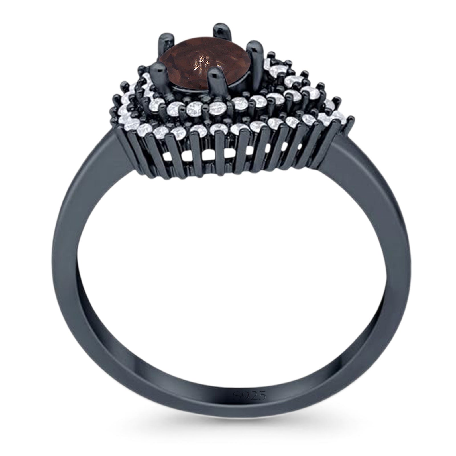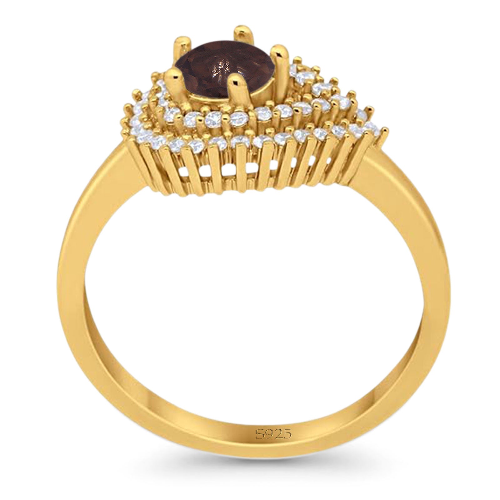Round Natural Chocolate Smoky Quartz Sideways Pear Halo Ring 925 Sterling Silver