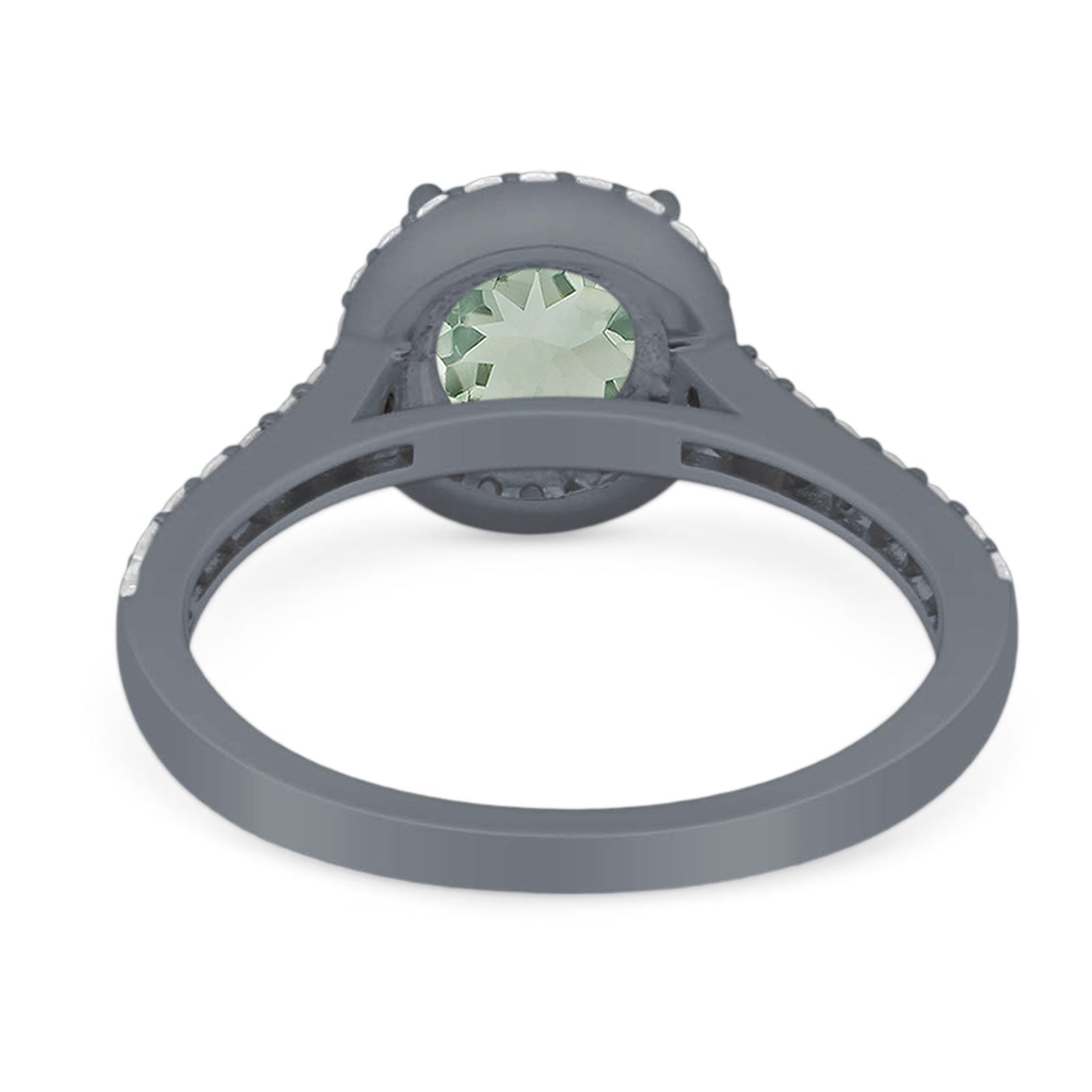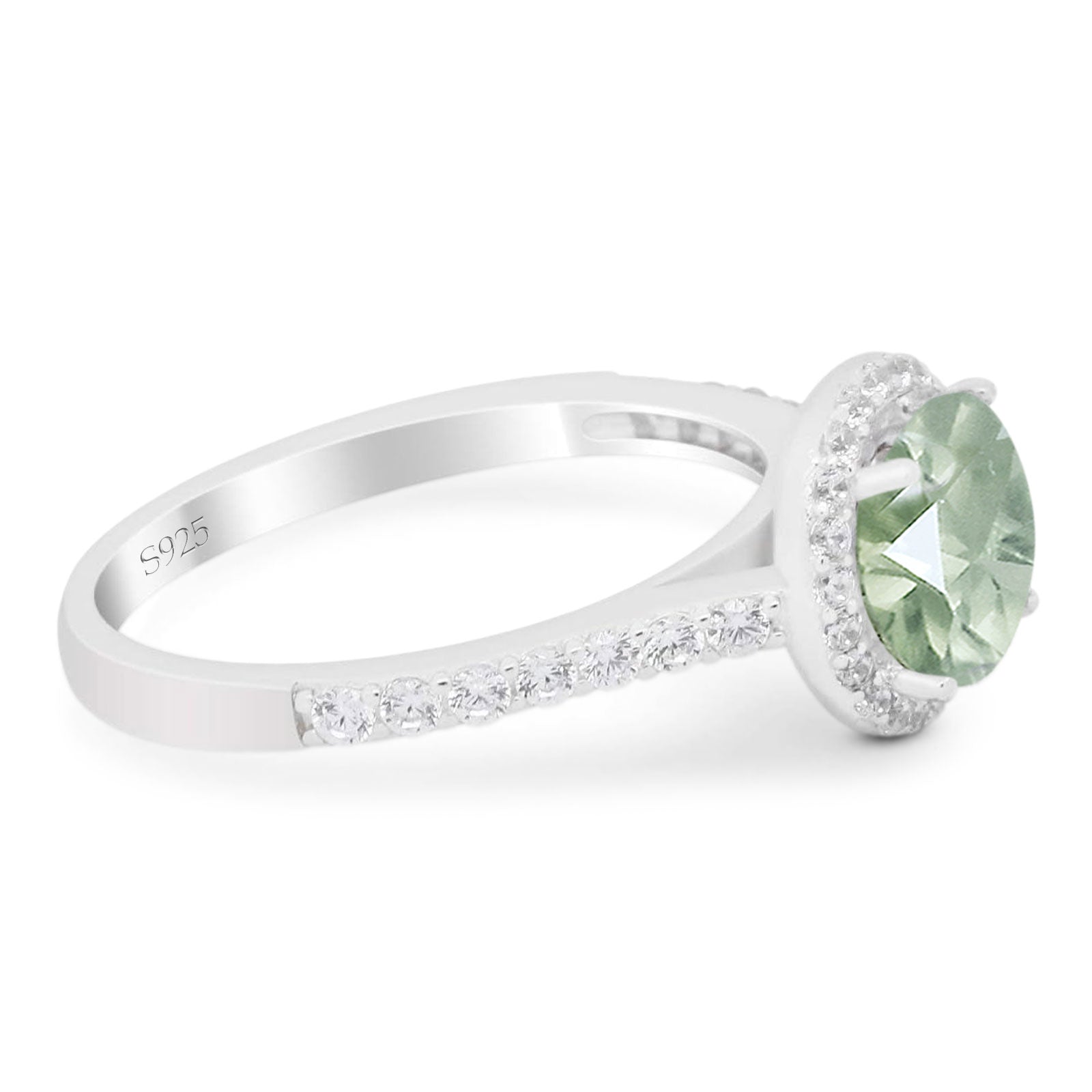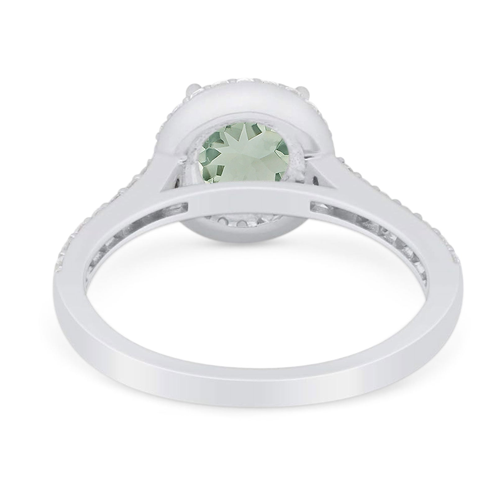 Round Natural Green Amethyst Prasiolite Classic Halo Ring 925 Sterling Silver