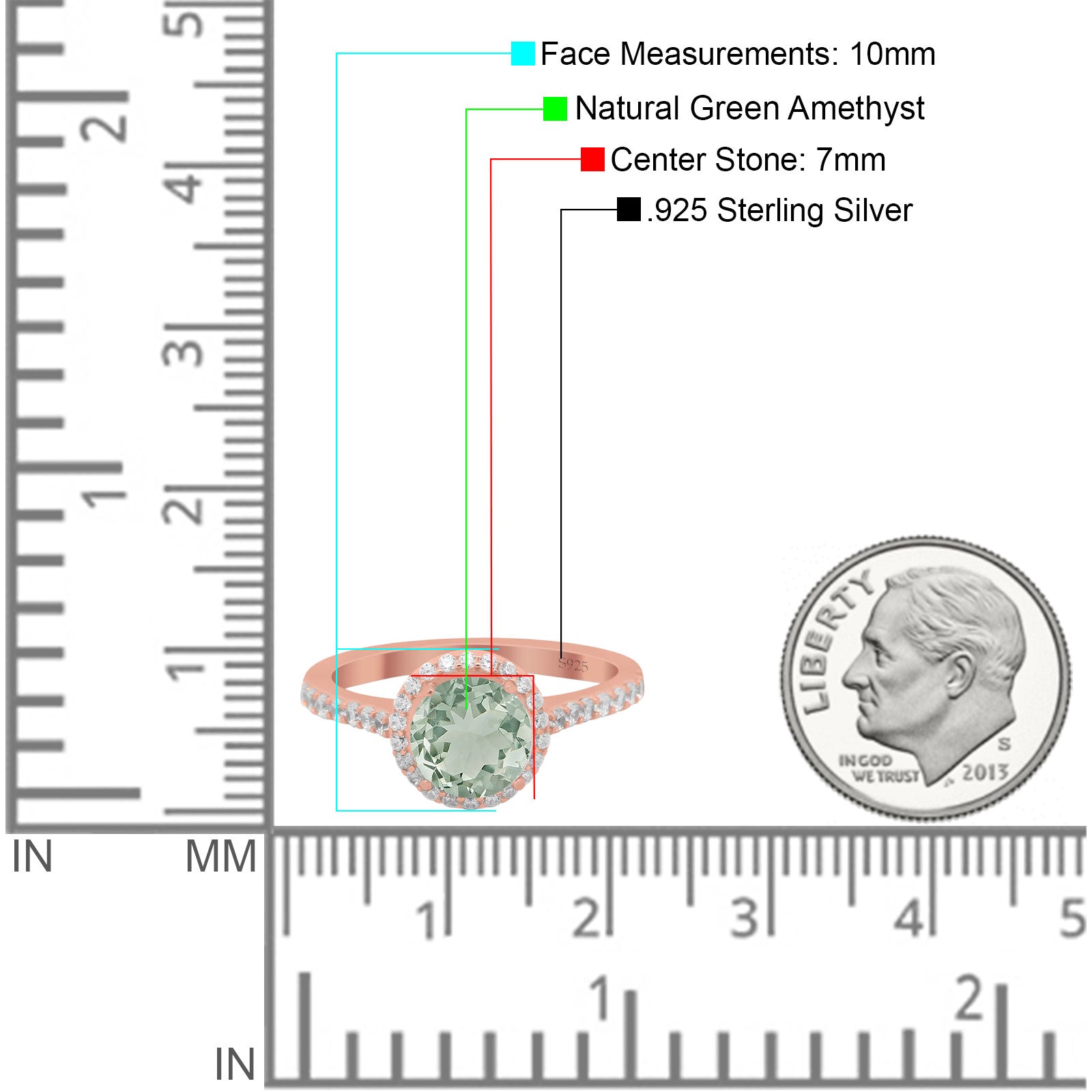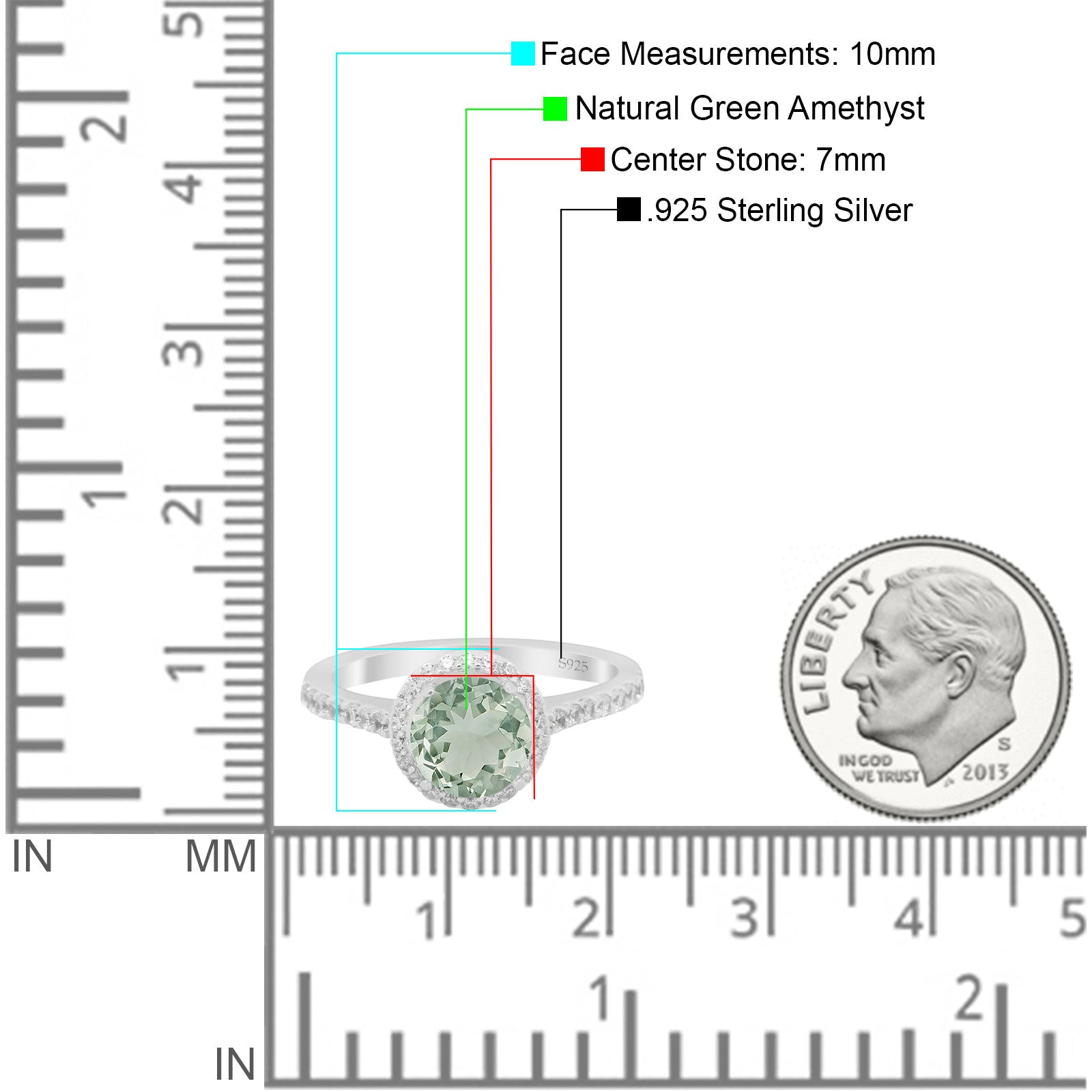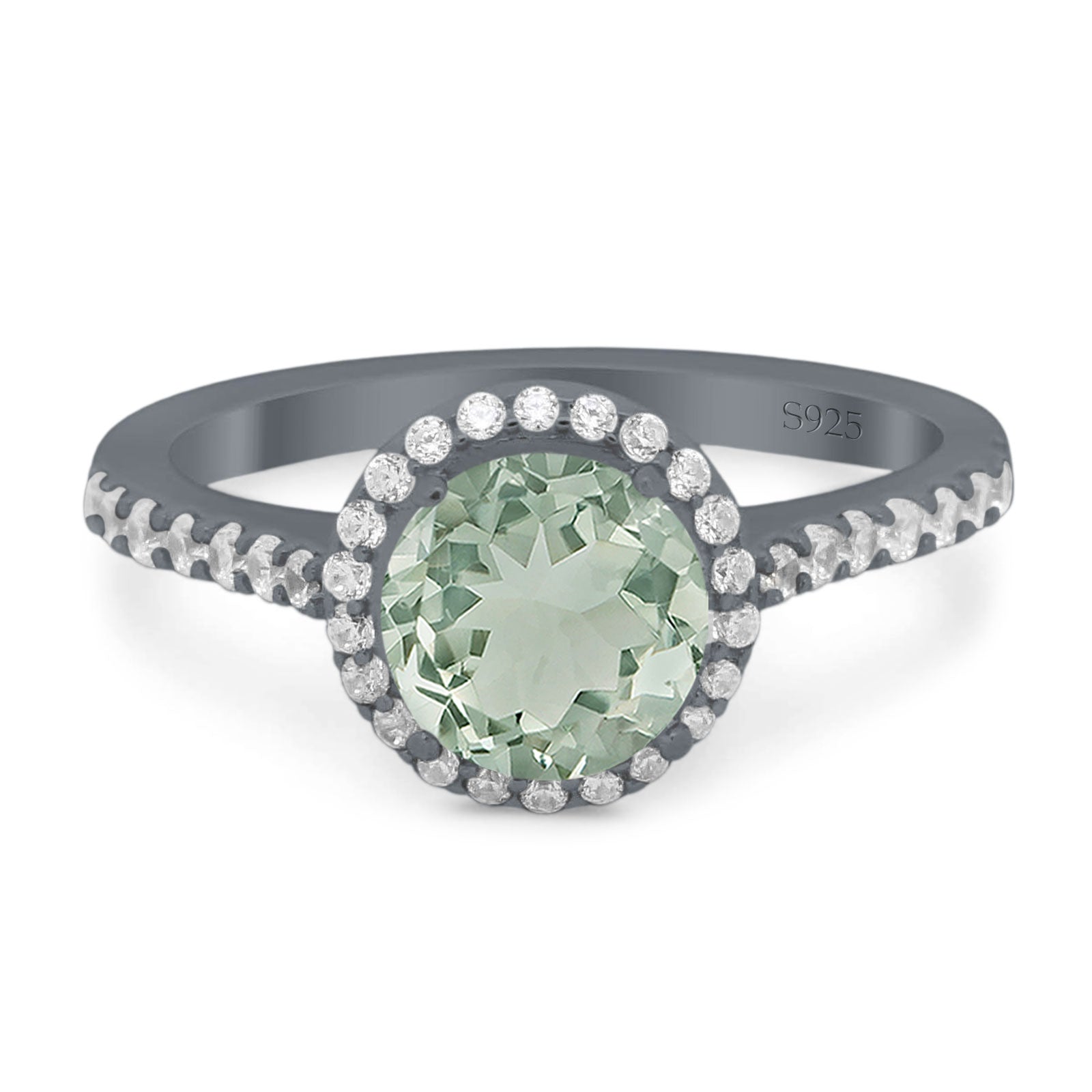 Round Natural Green Amethyst Prasiolite Classic Halo Ring 925 Sterling Silver