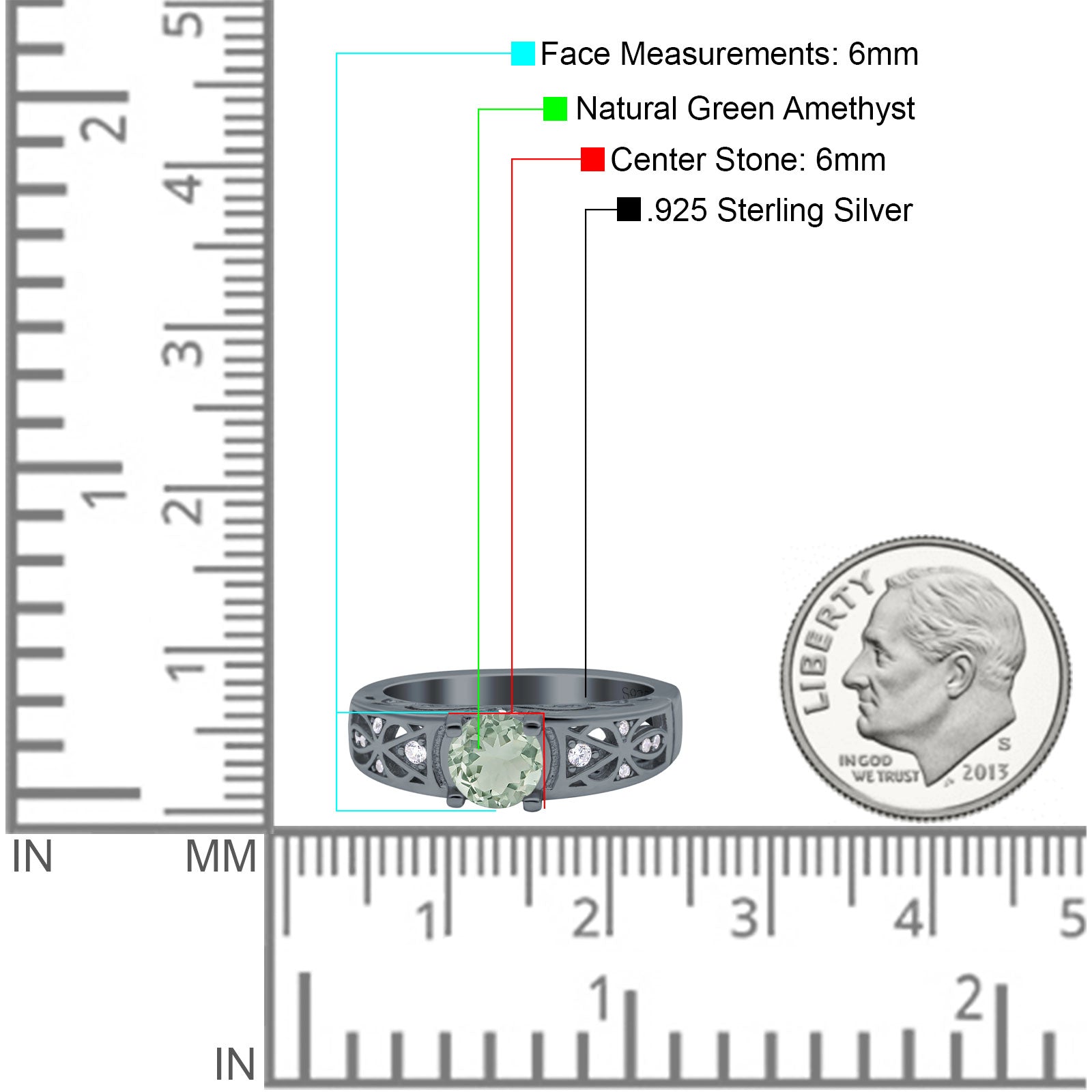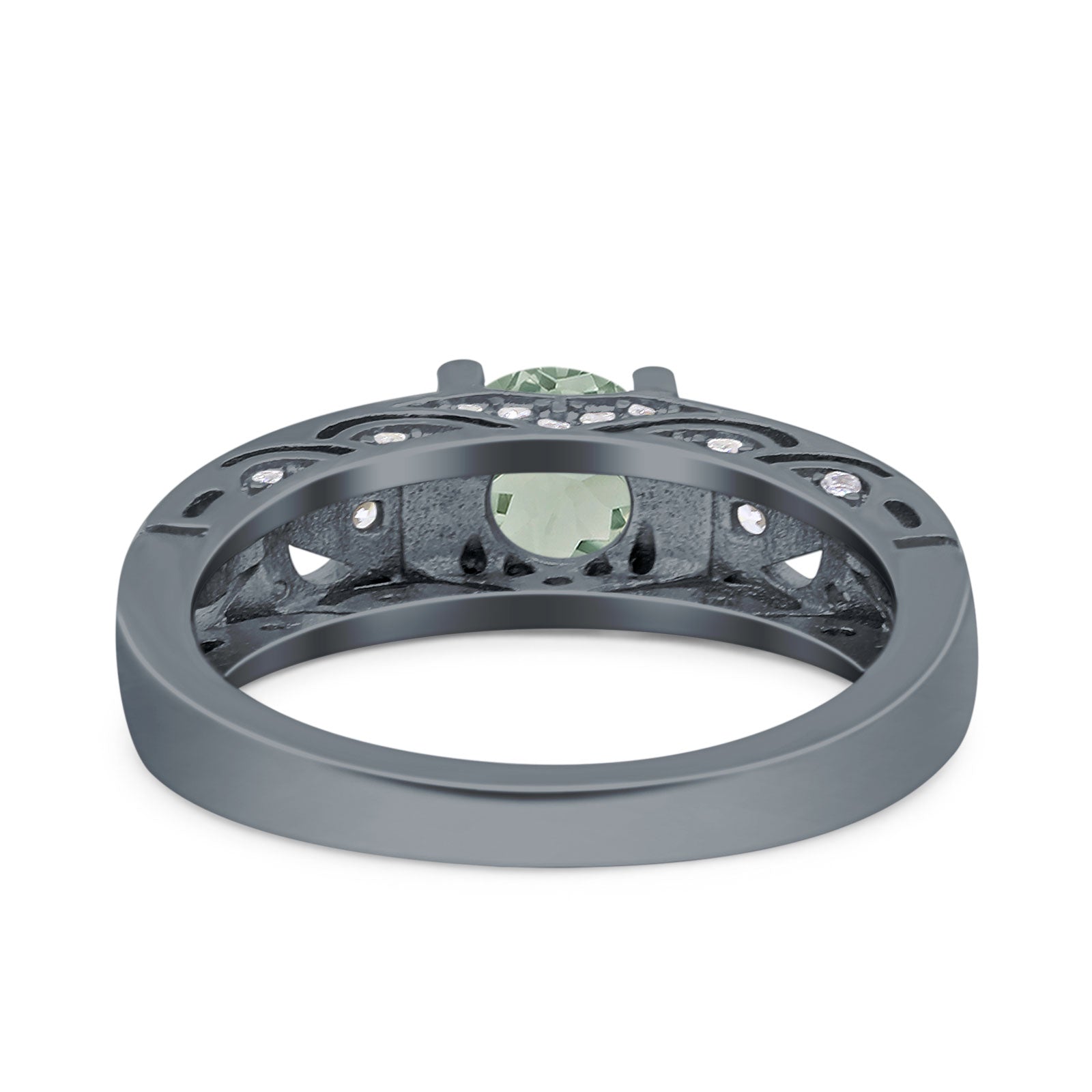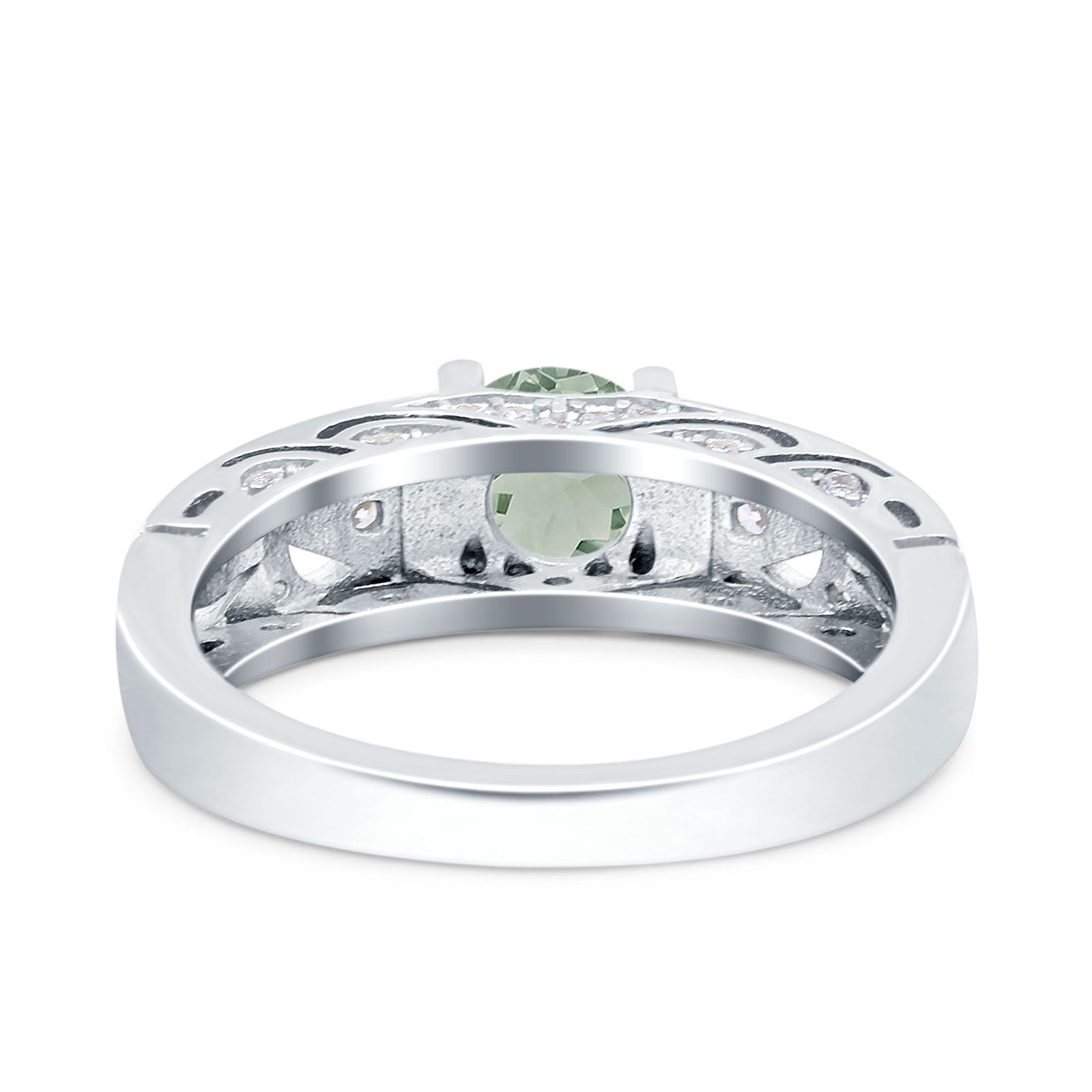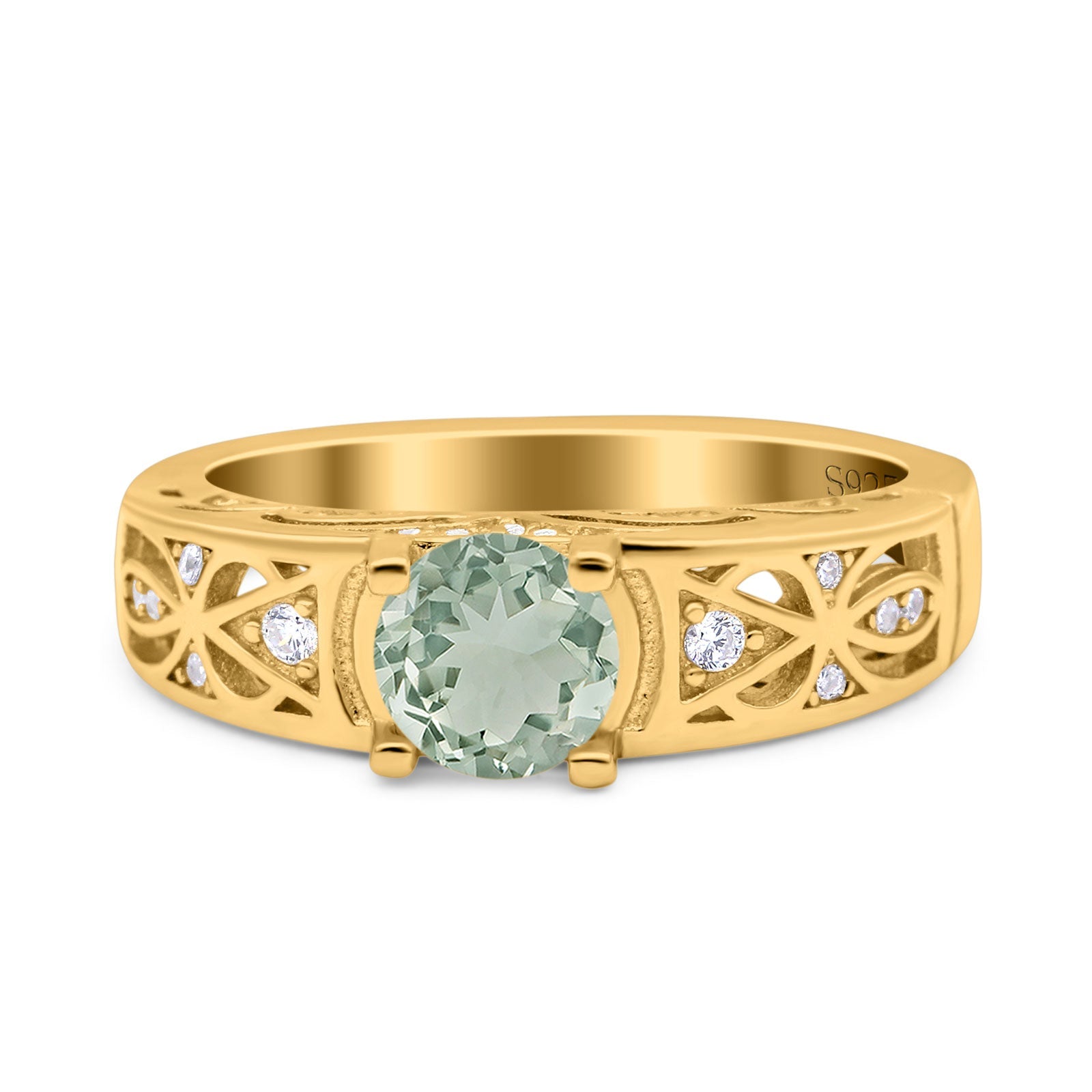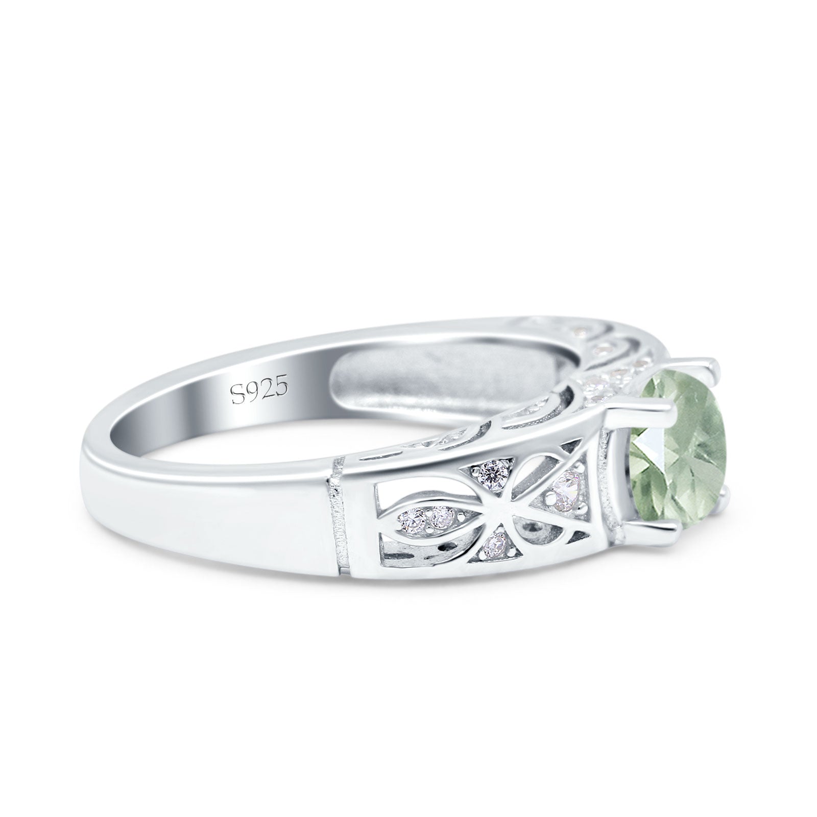 Round Natural Green Amethyst Prasiolite Filigree Design Ring 925 Sterling Silver