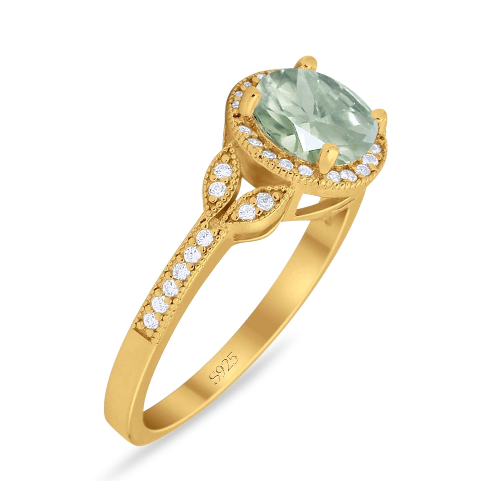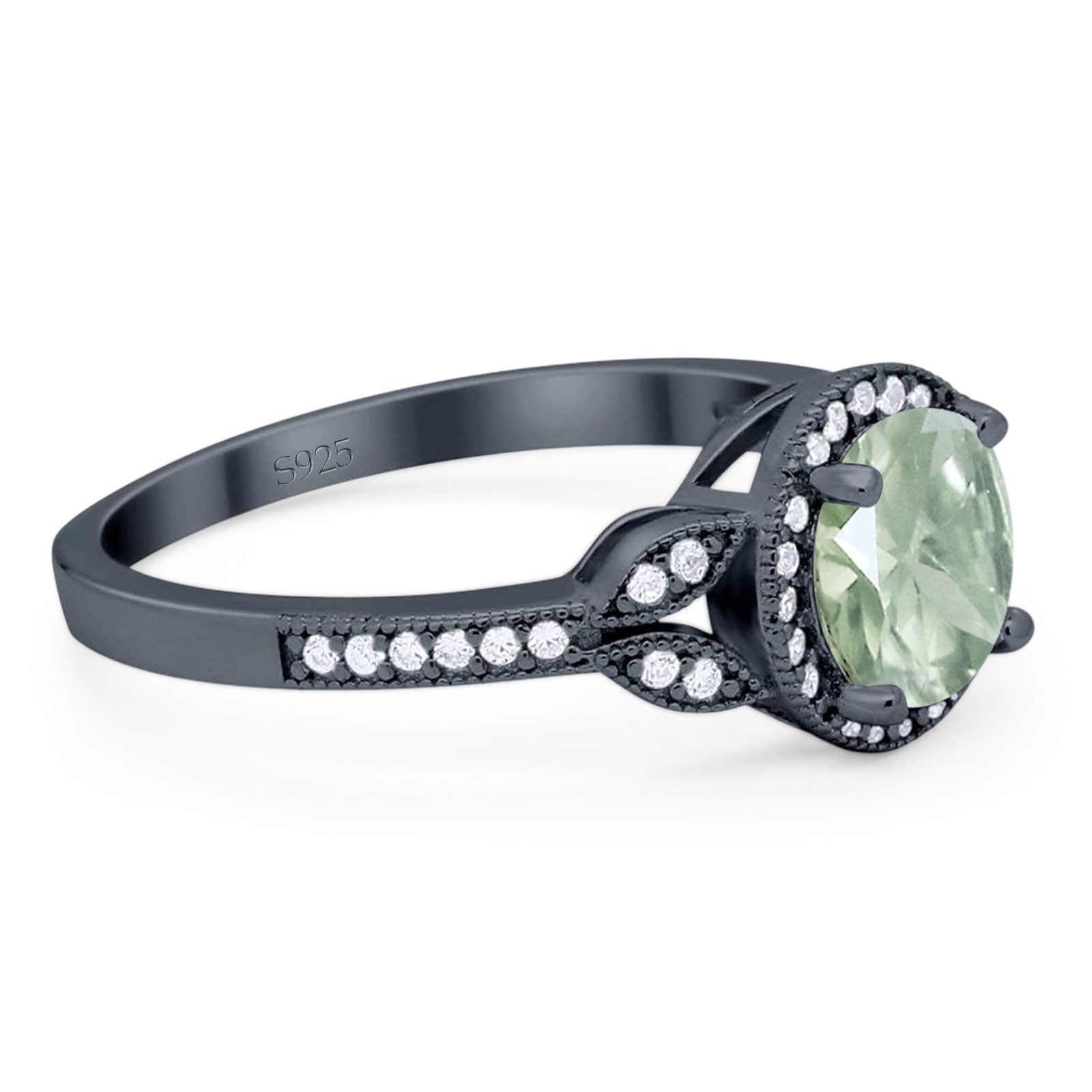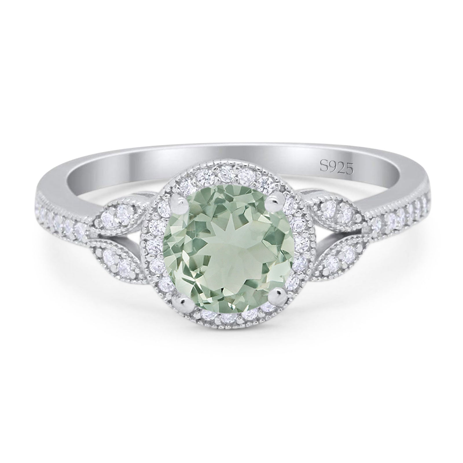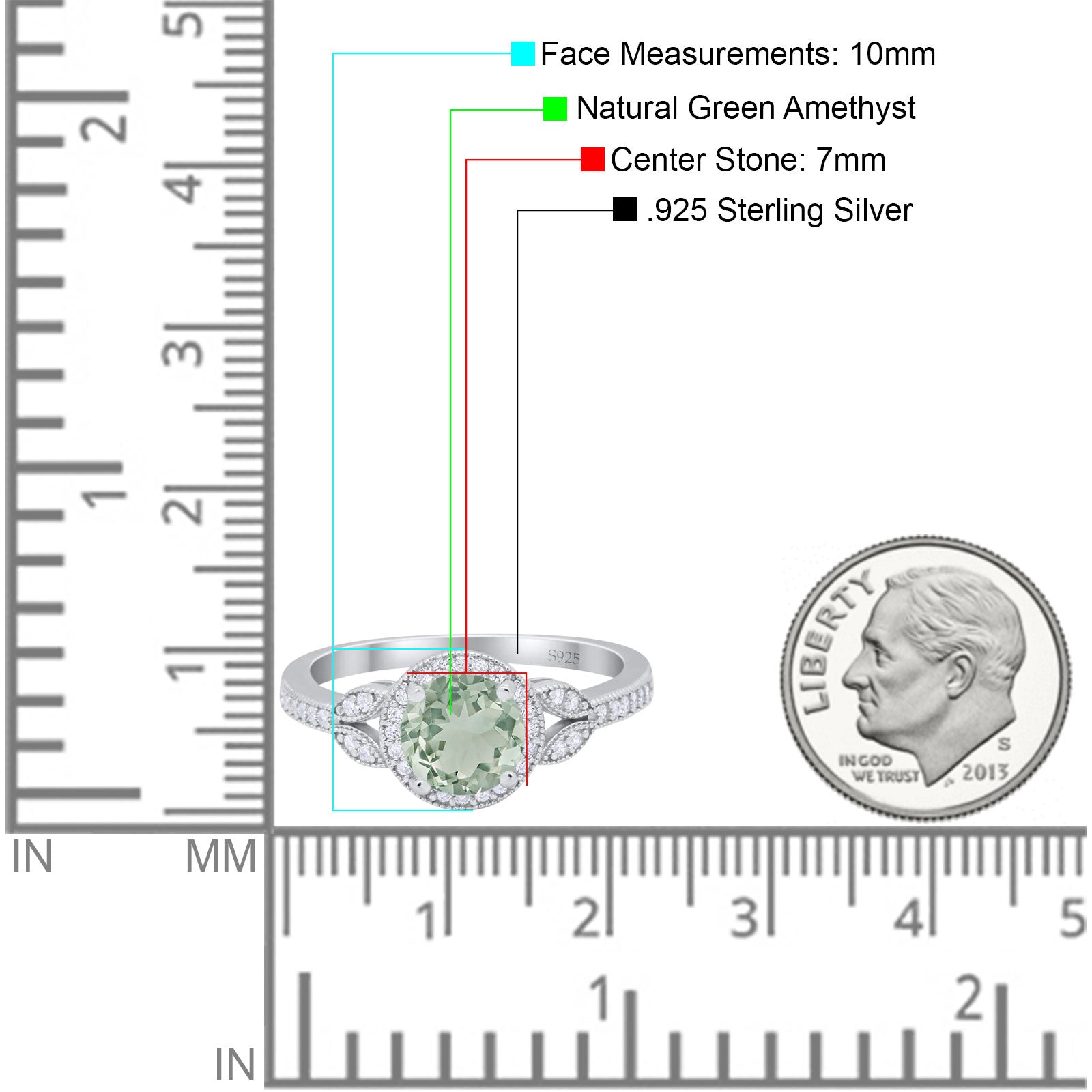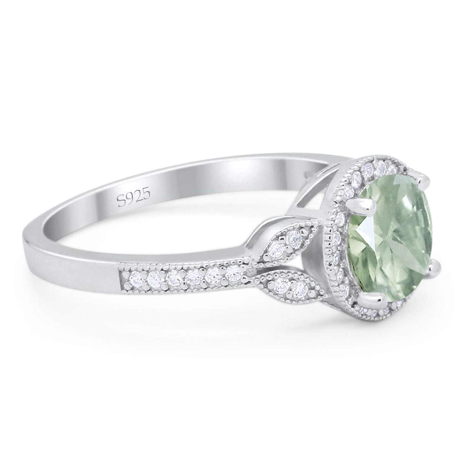 Round Natural Green Amethyst Prasiolite Leaf Accent Beaded Ring 925 Sterling Silver