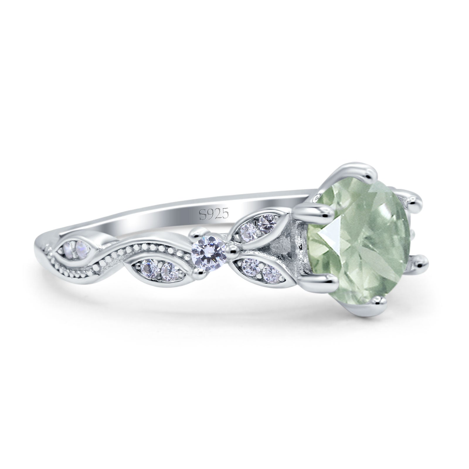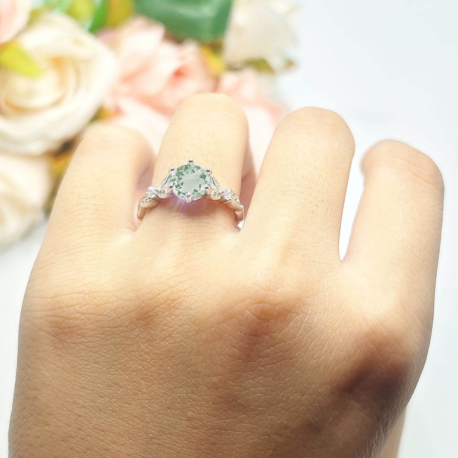 Natural Green Amethyst Prasiolite Engagement Ring