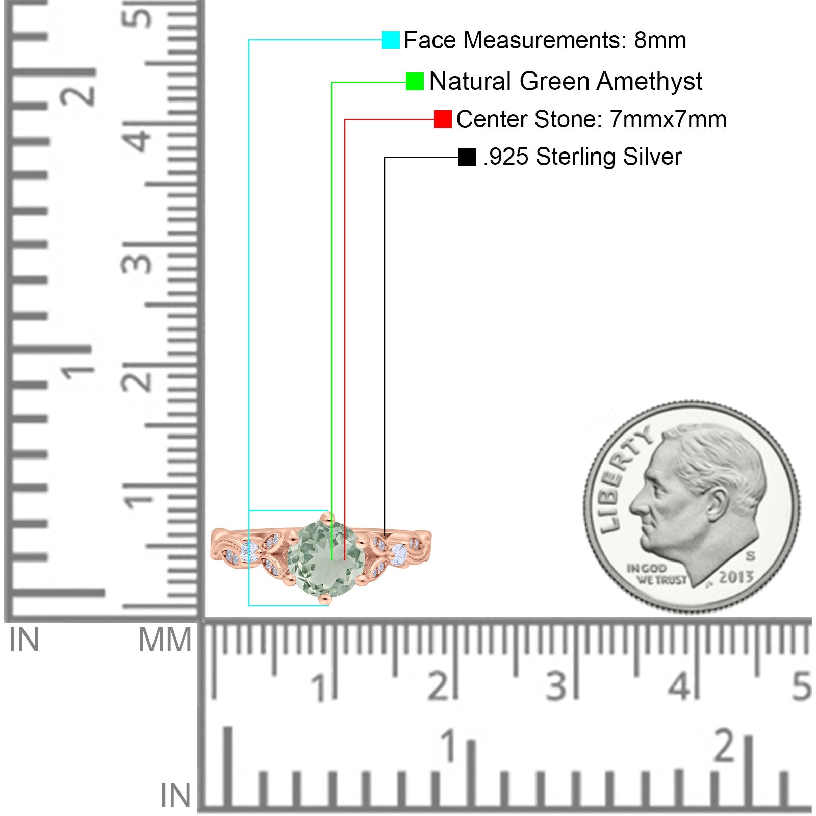 Side Stone: Cubic Zirconia (CZ).