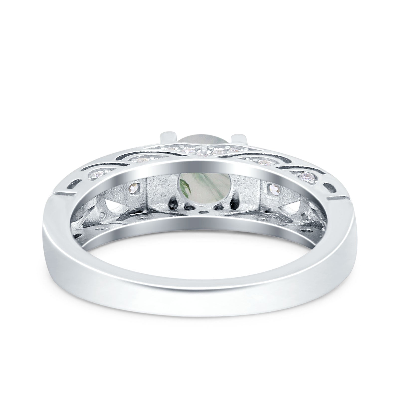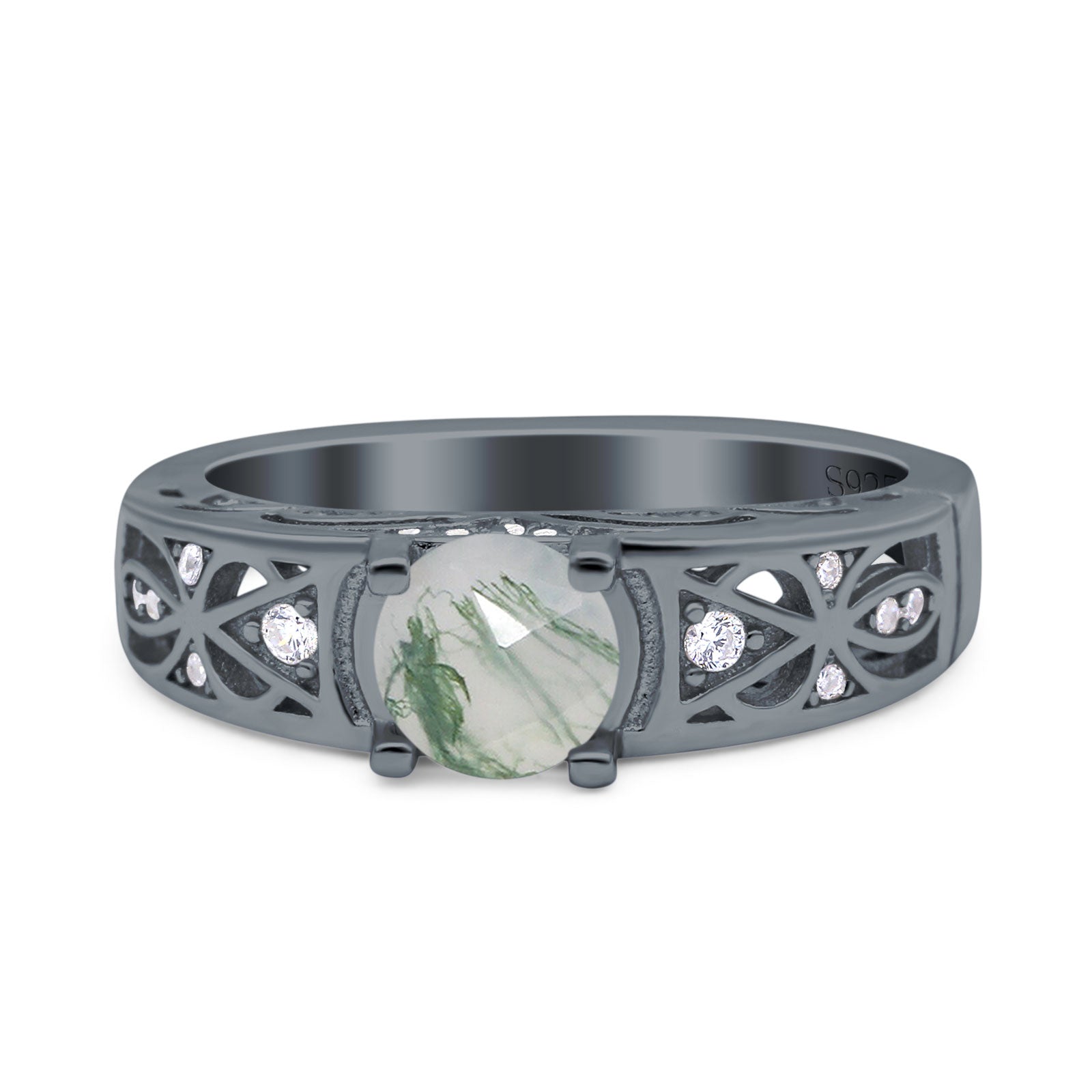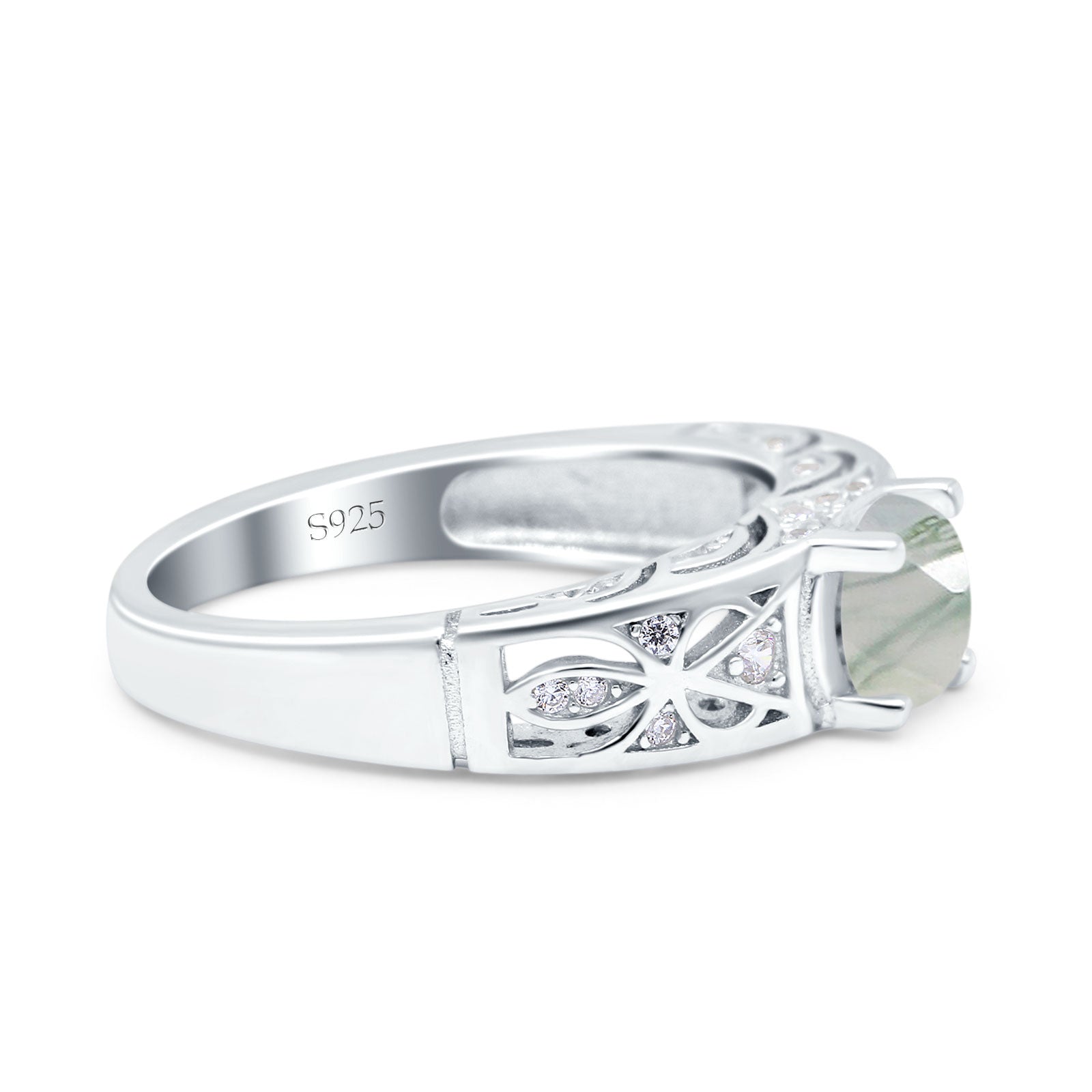Round Natural Green Moss Agate Filigree Design Ring 925 Sterling Silver