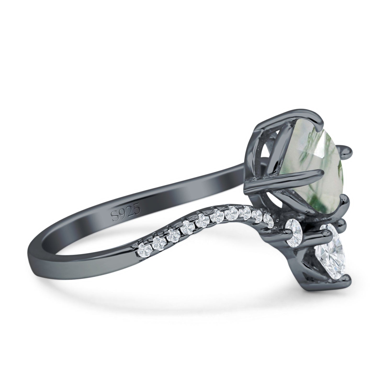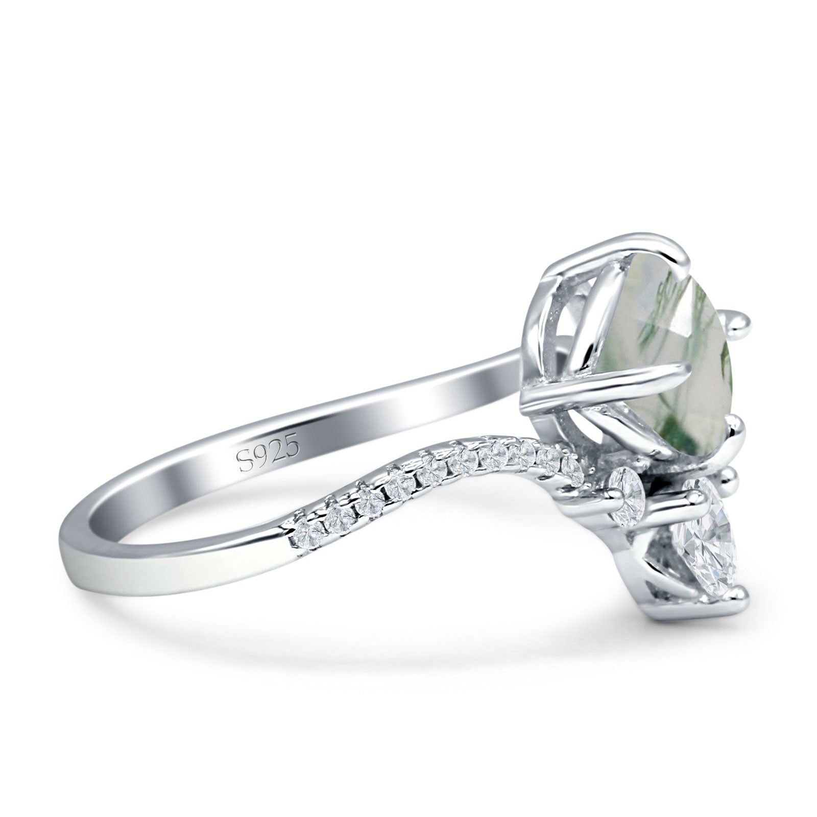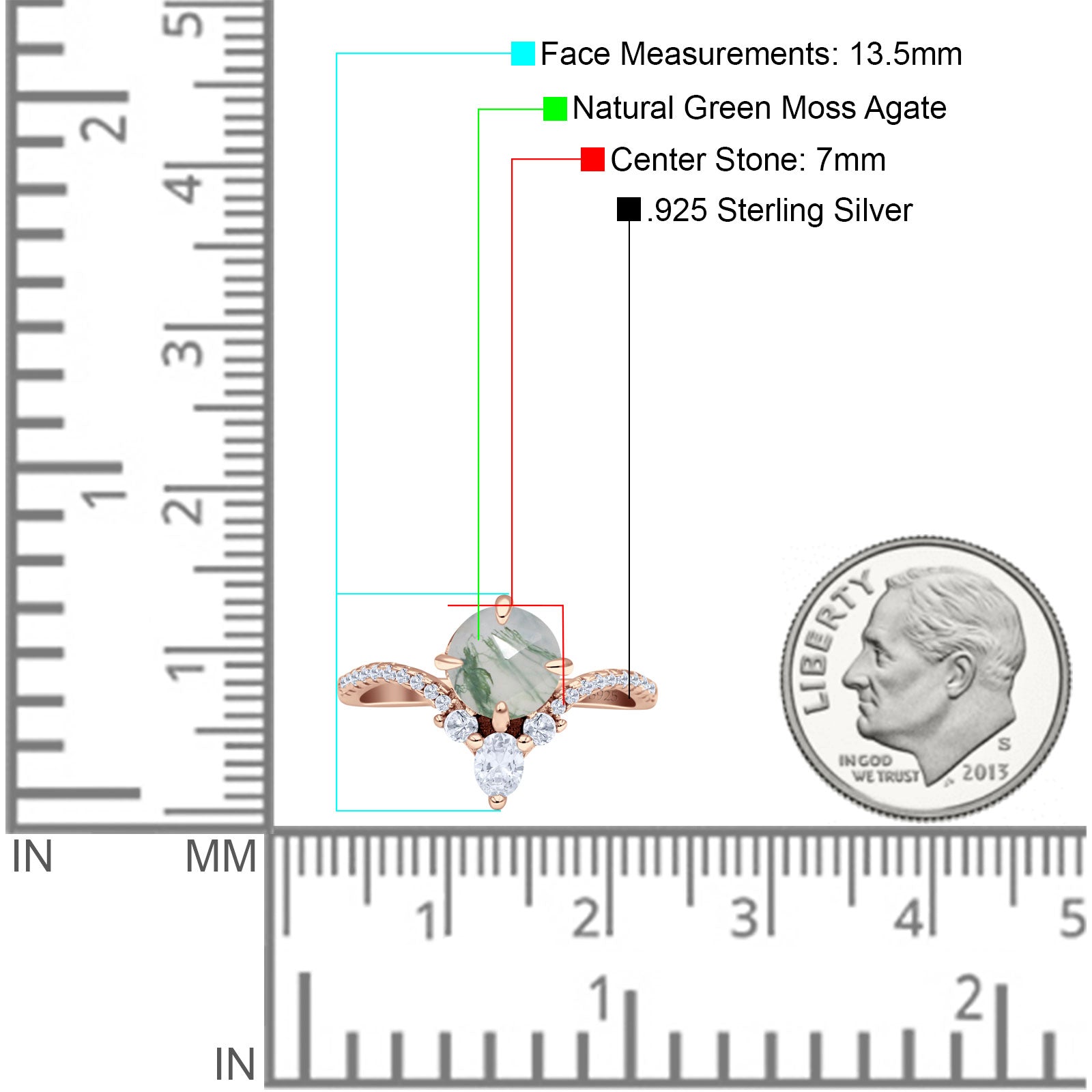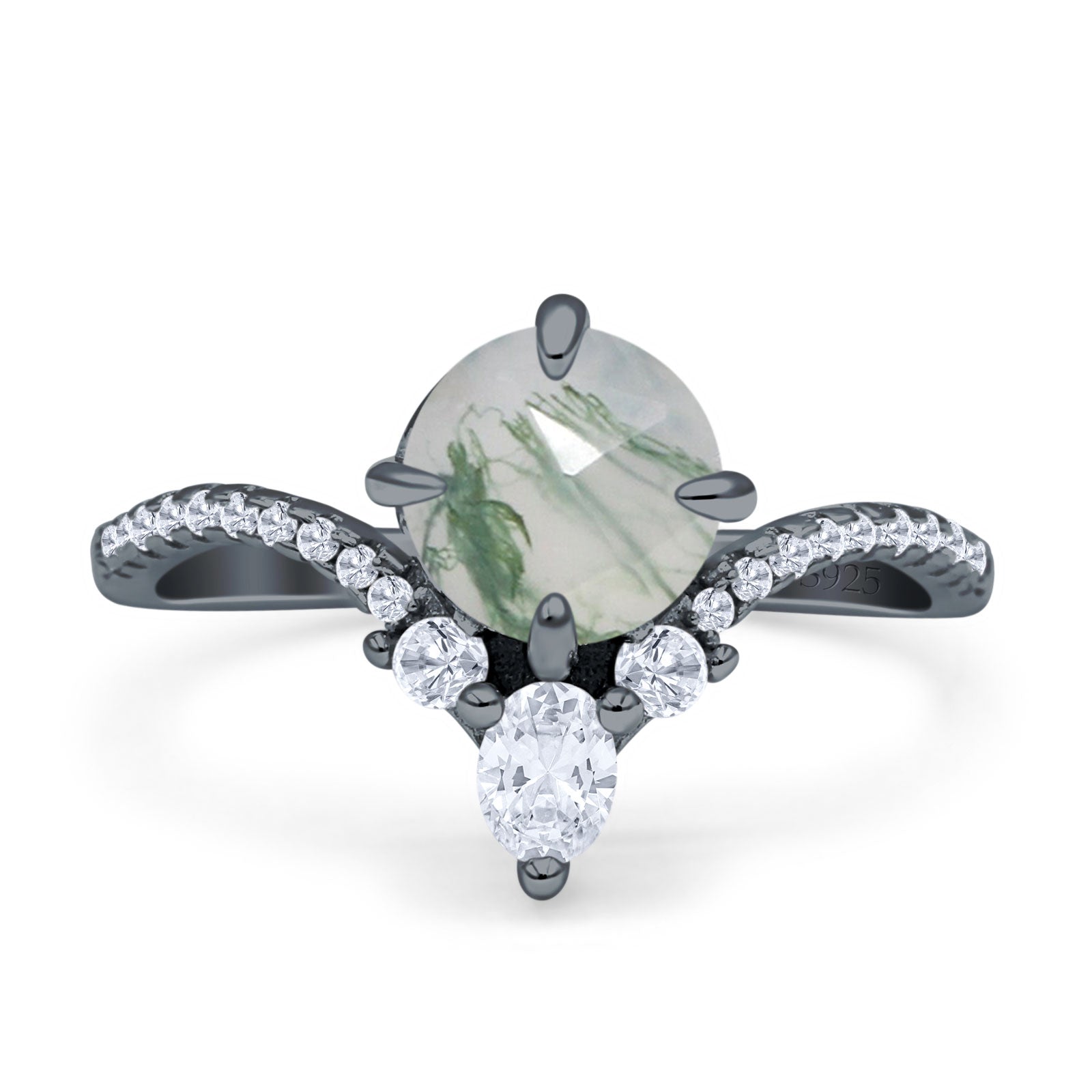 Round Natural Green Moss Agate V Midi Chevron Ring 925 Sterling Silver