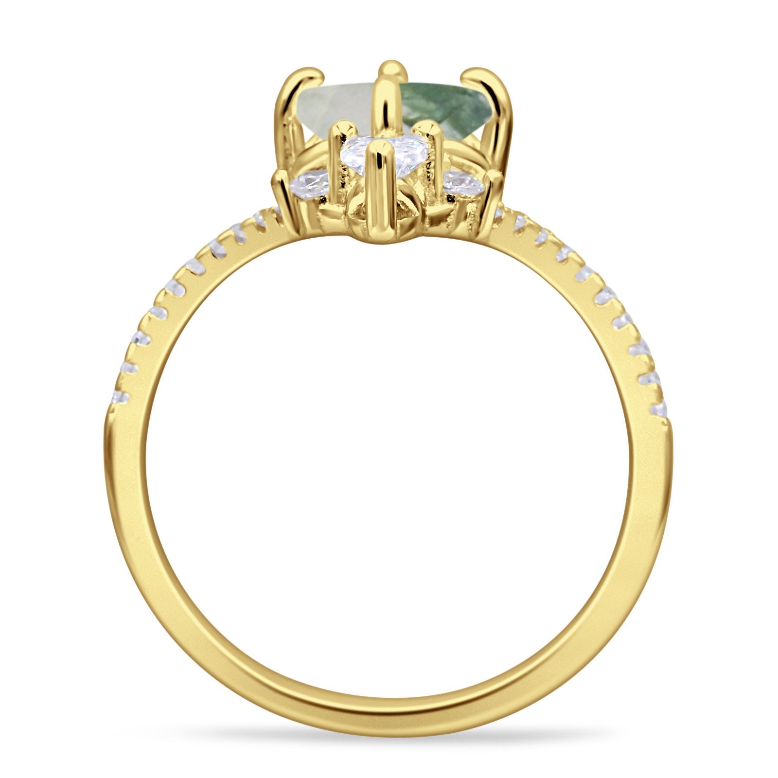Product Description:Capture elegance with our round natural Green Moss Agate v midi chevron ring. Crafted from 925 sterling silver, this minimalist piece features a charming v-shaped chevron motif adorned with natural Green Moss Agate gemstones. Perfect for stacking or wearing solo, it adds a touch of sophistication to any ensemble.