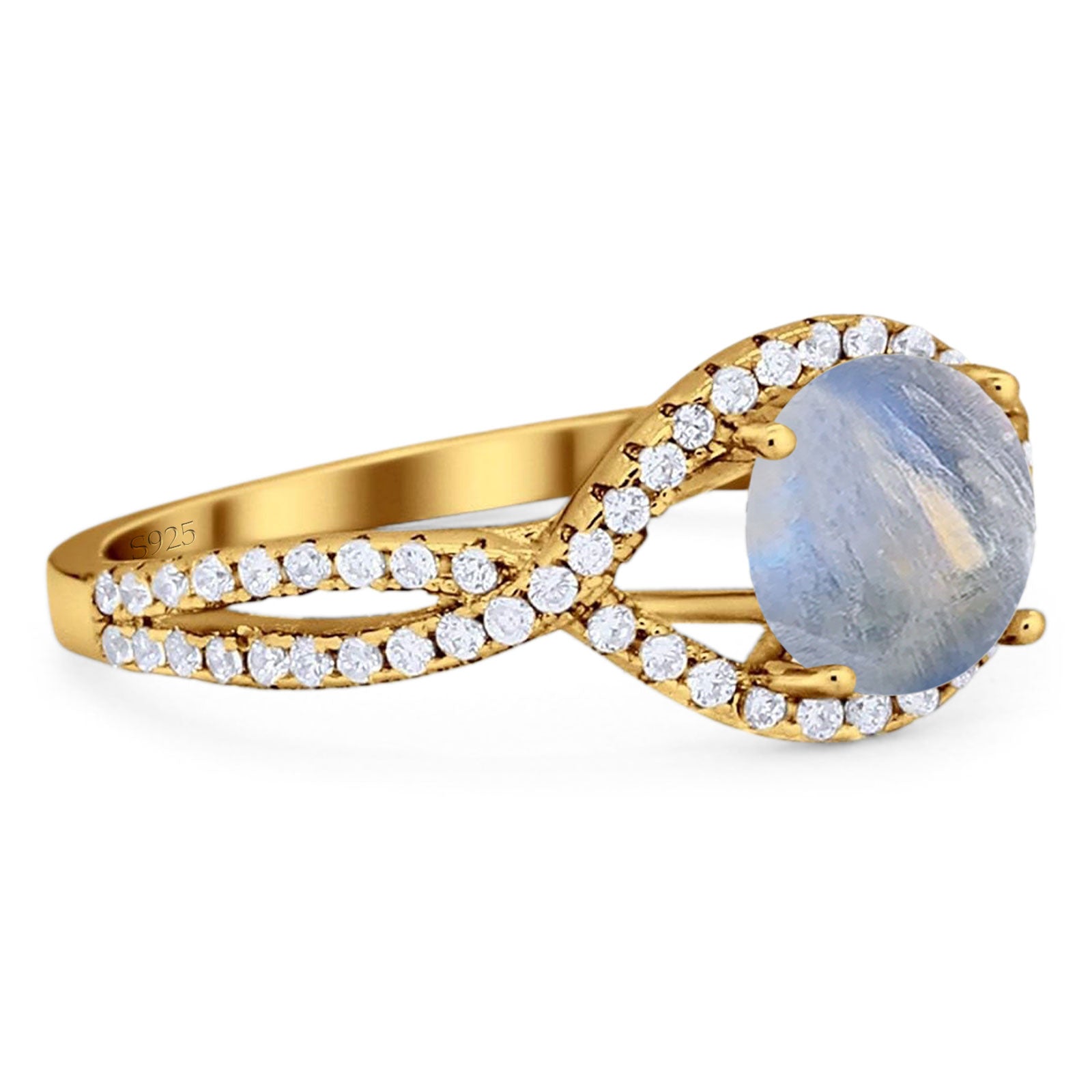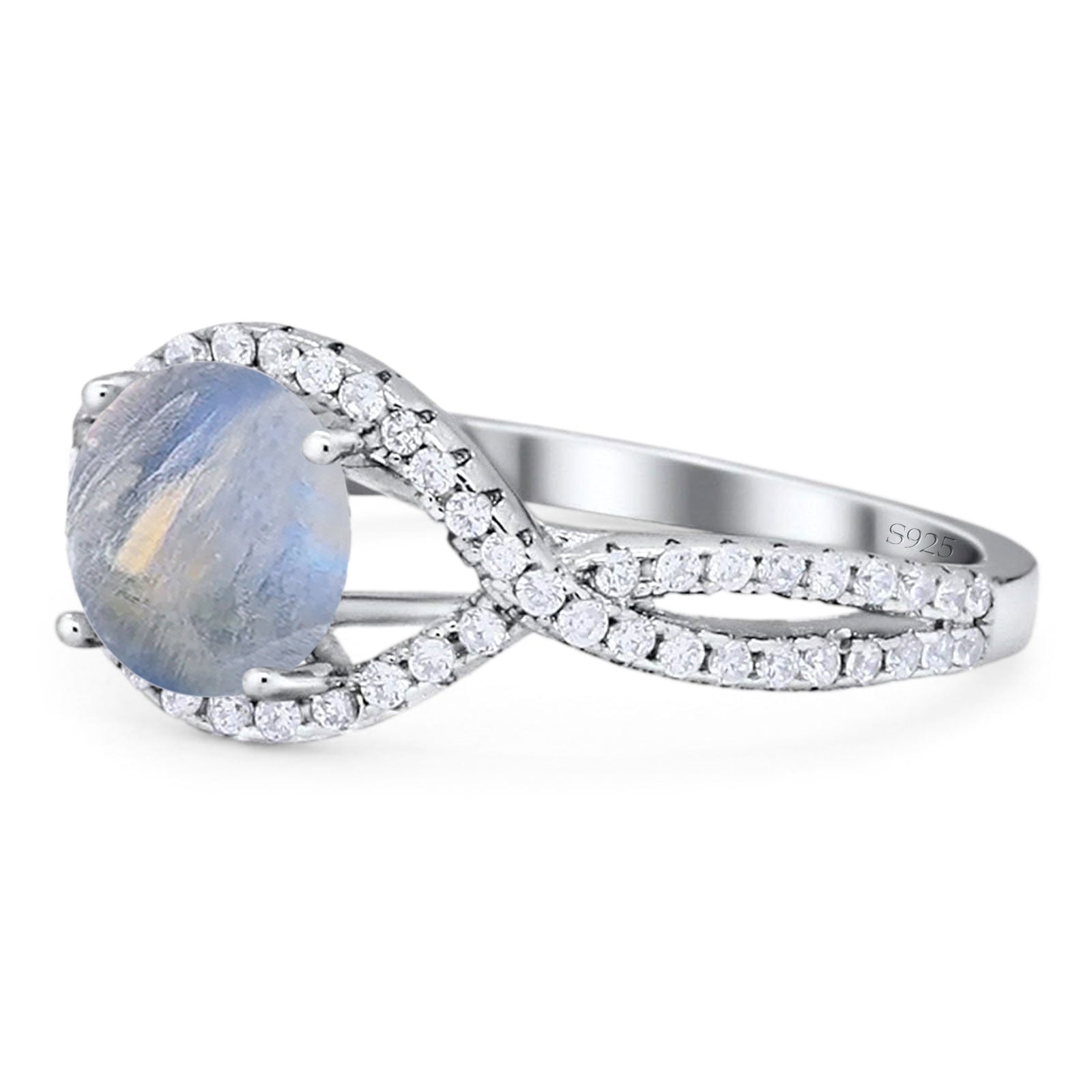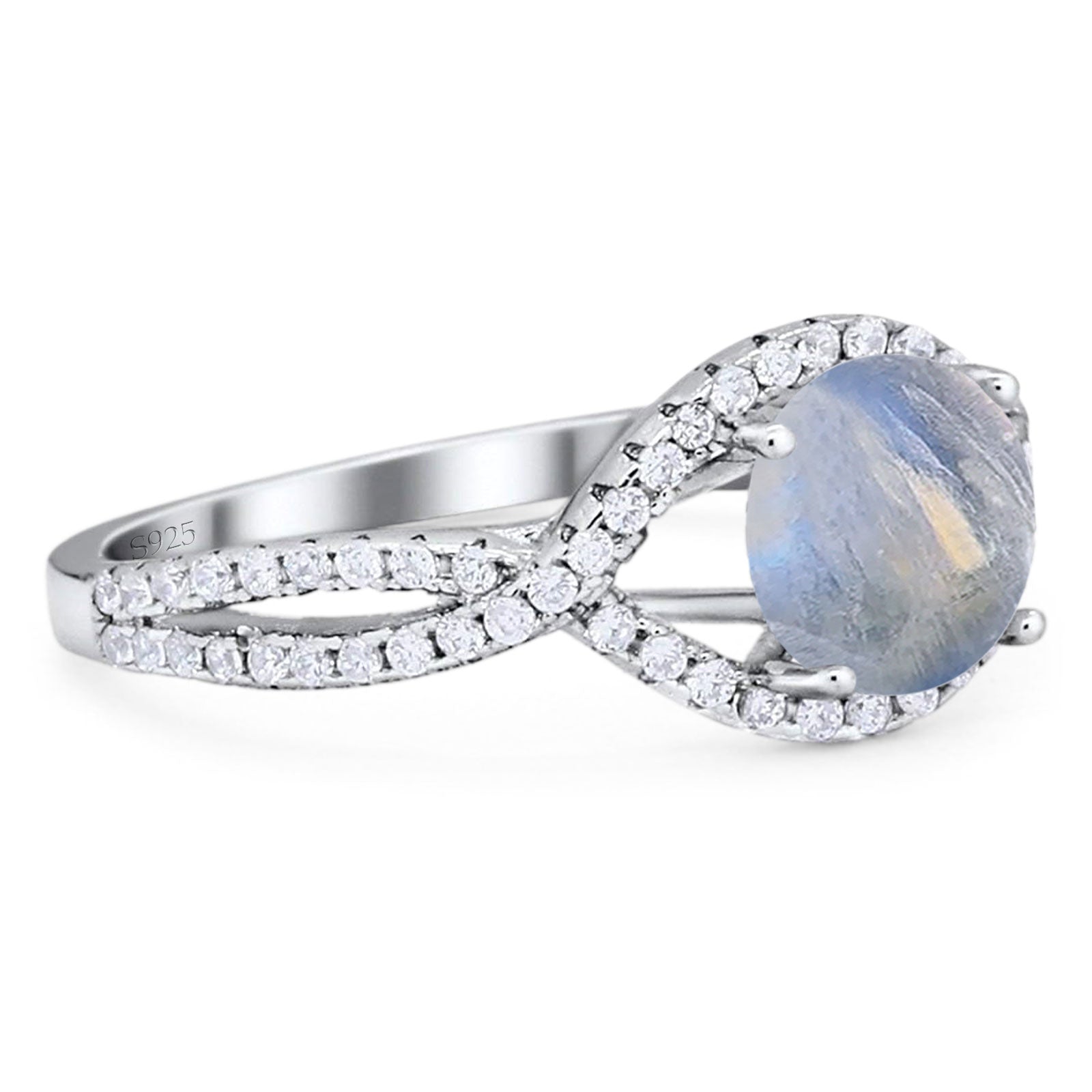 Round Natural Moonstone Infinity Shank Twisted Ring 925 Sterling Silver
