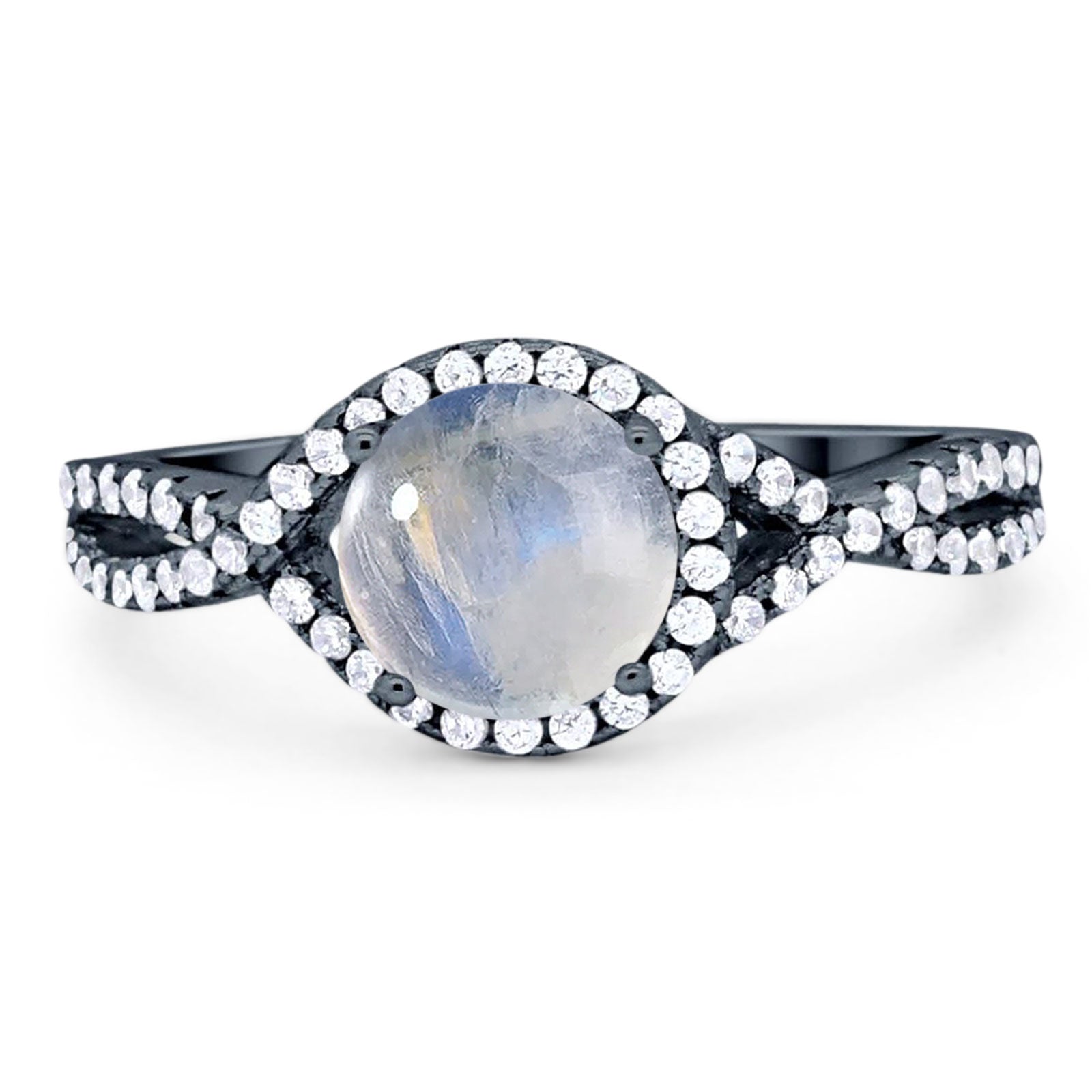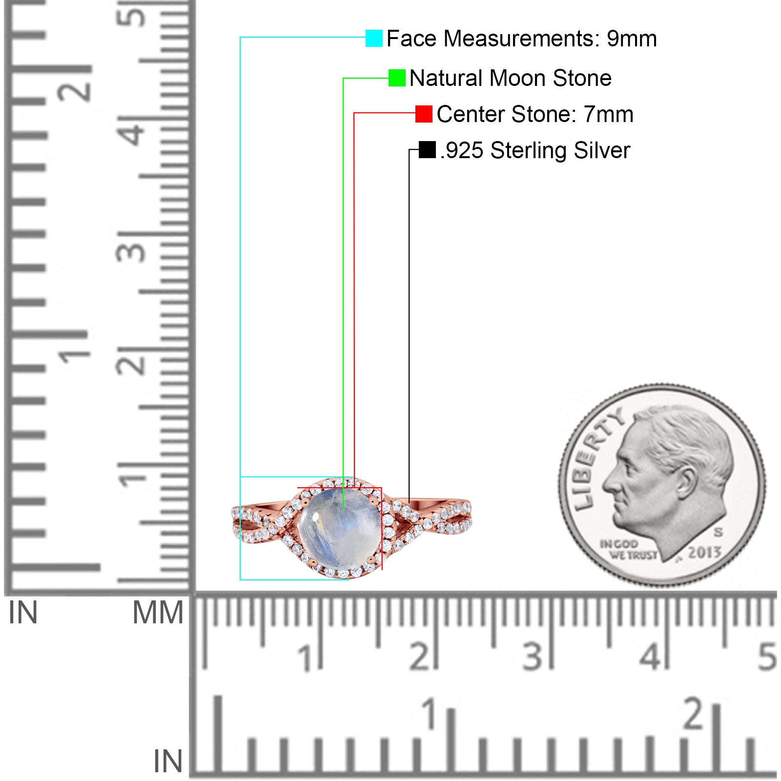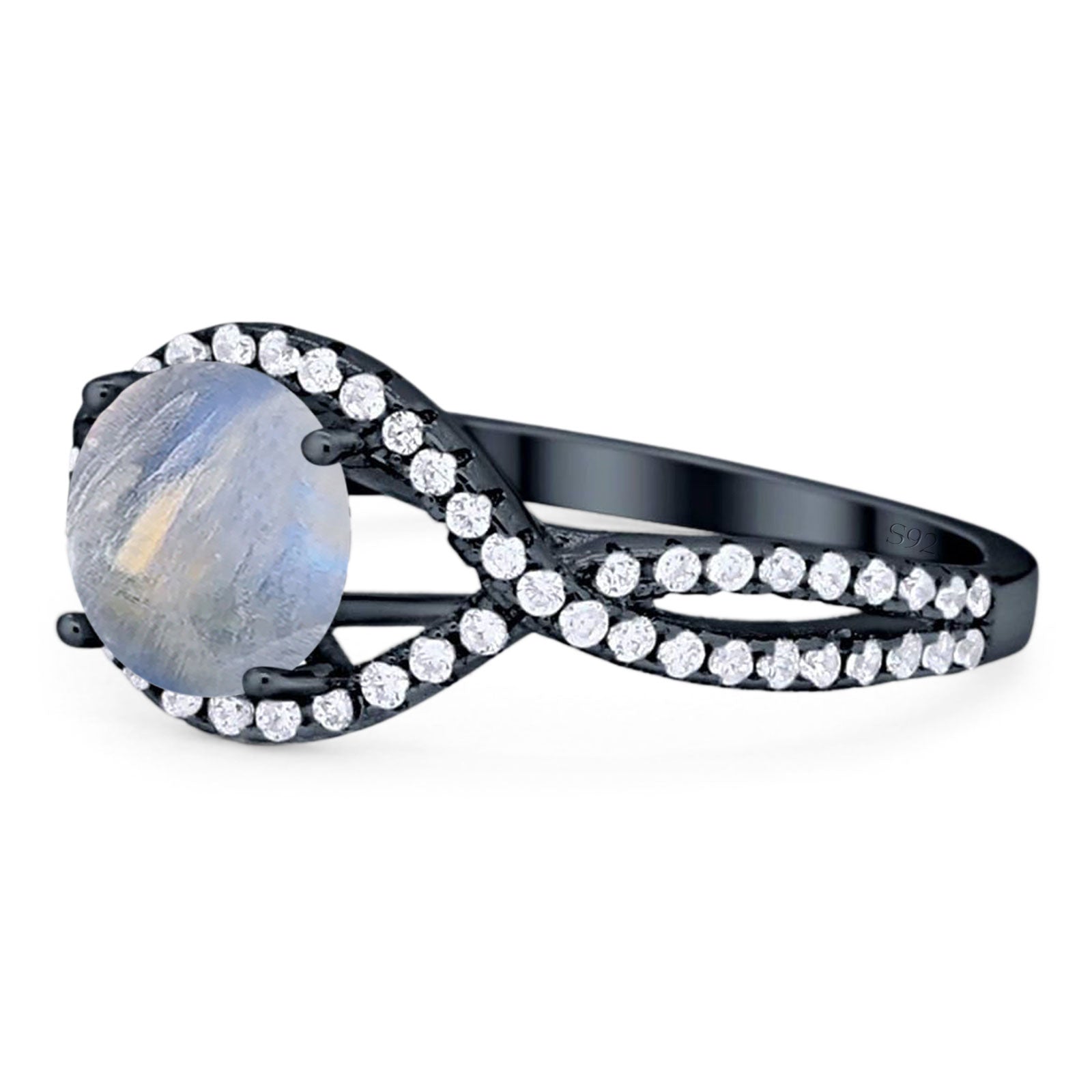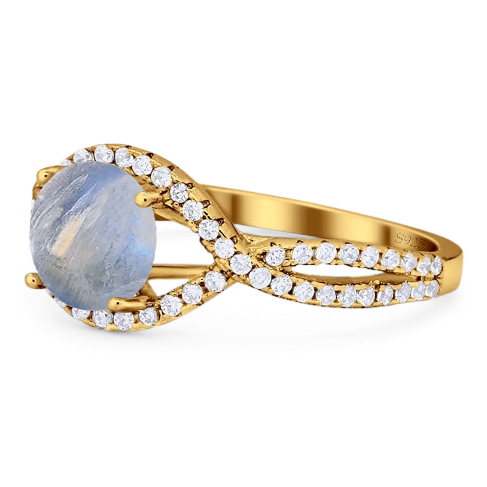 Round Natural Moonstone Infinity Shank Twisted Ring 925 Sterling Silver