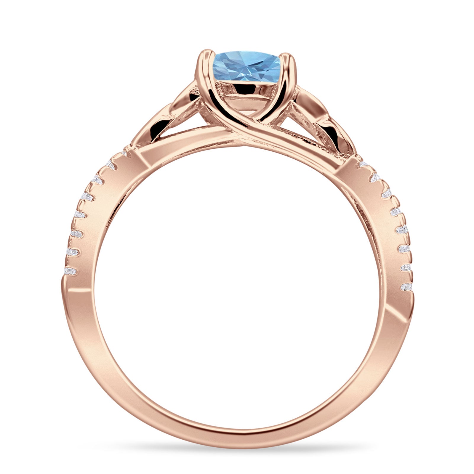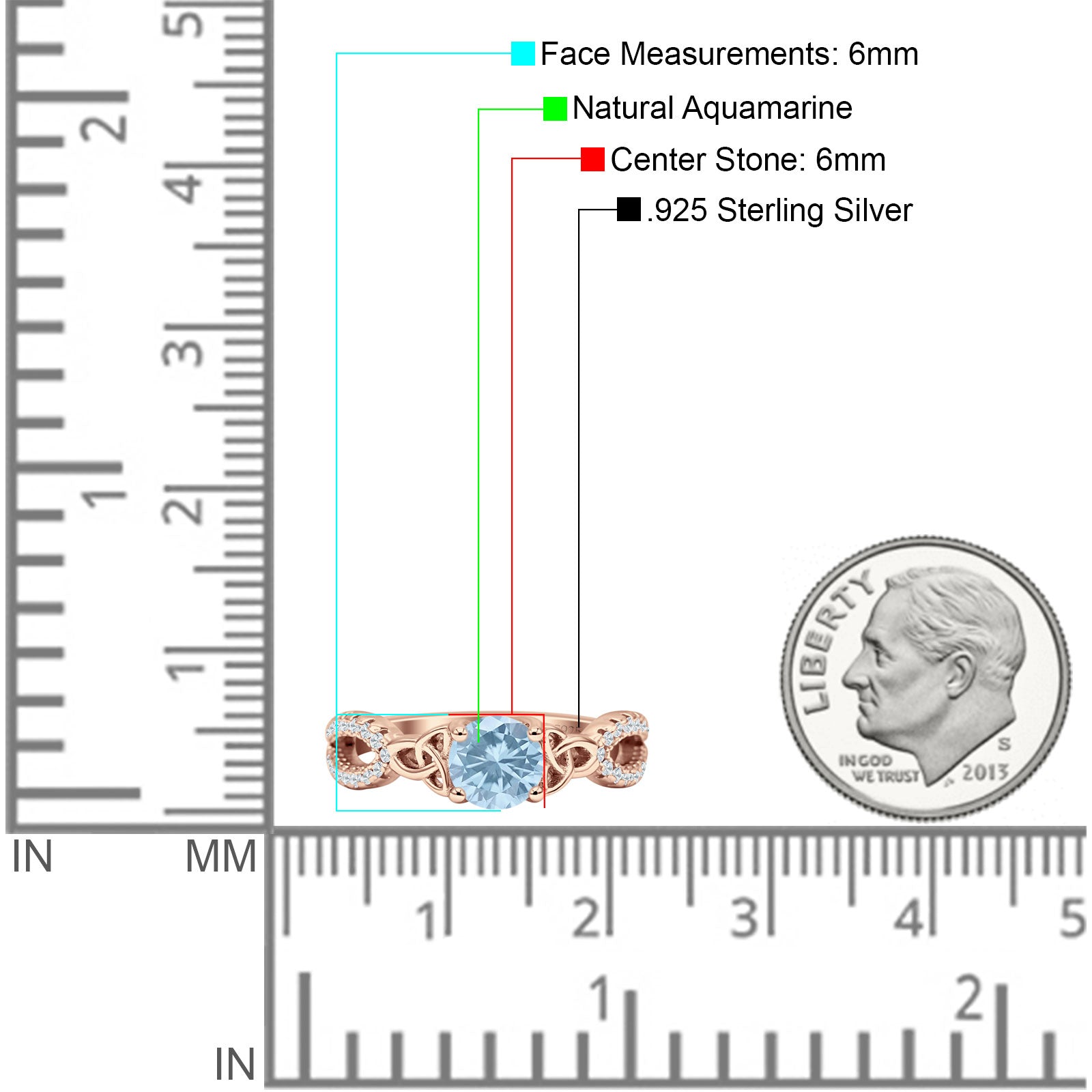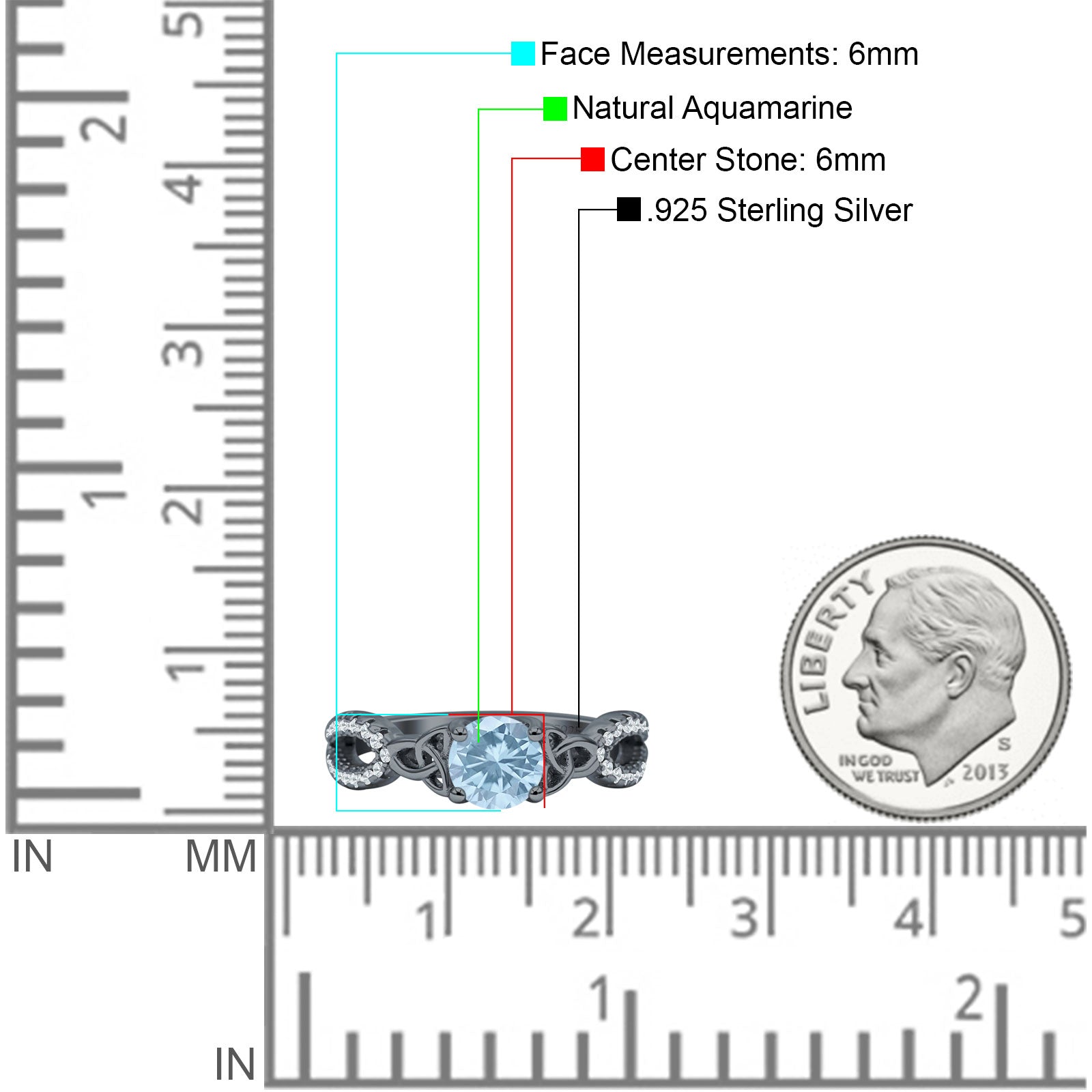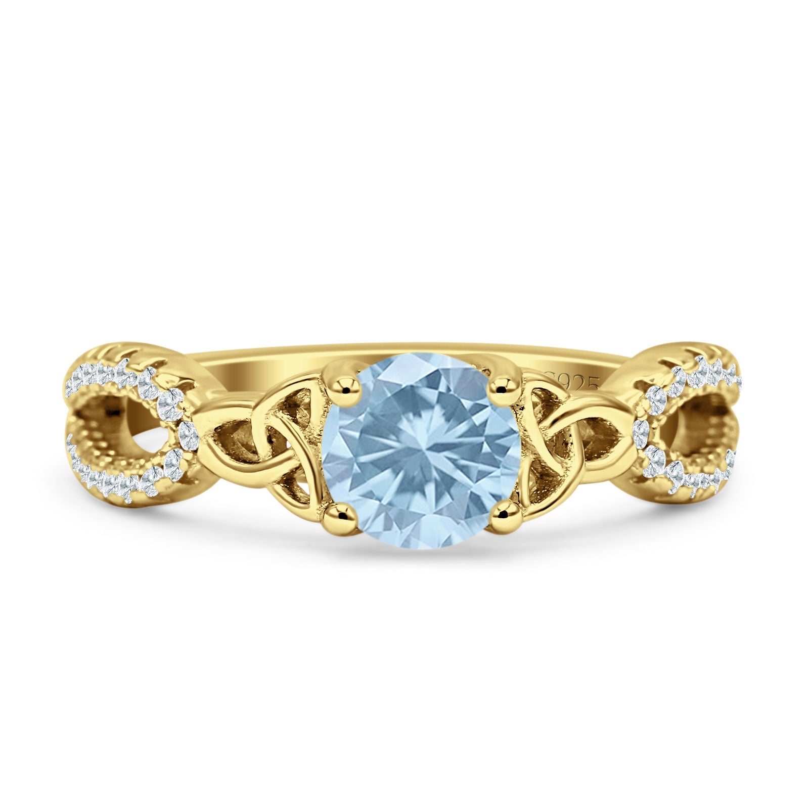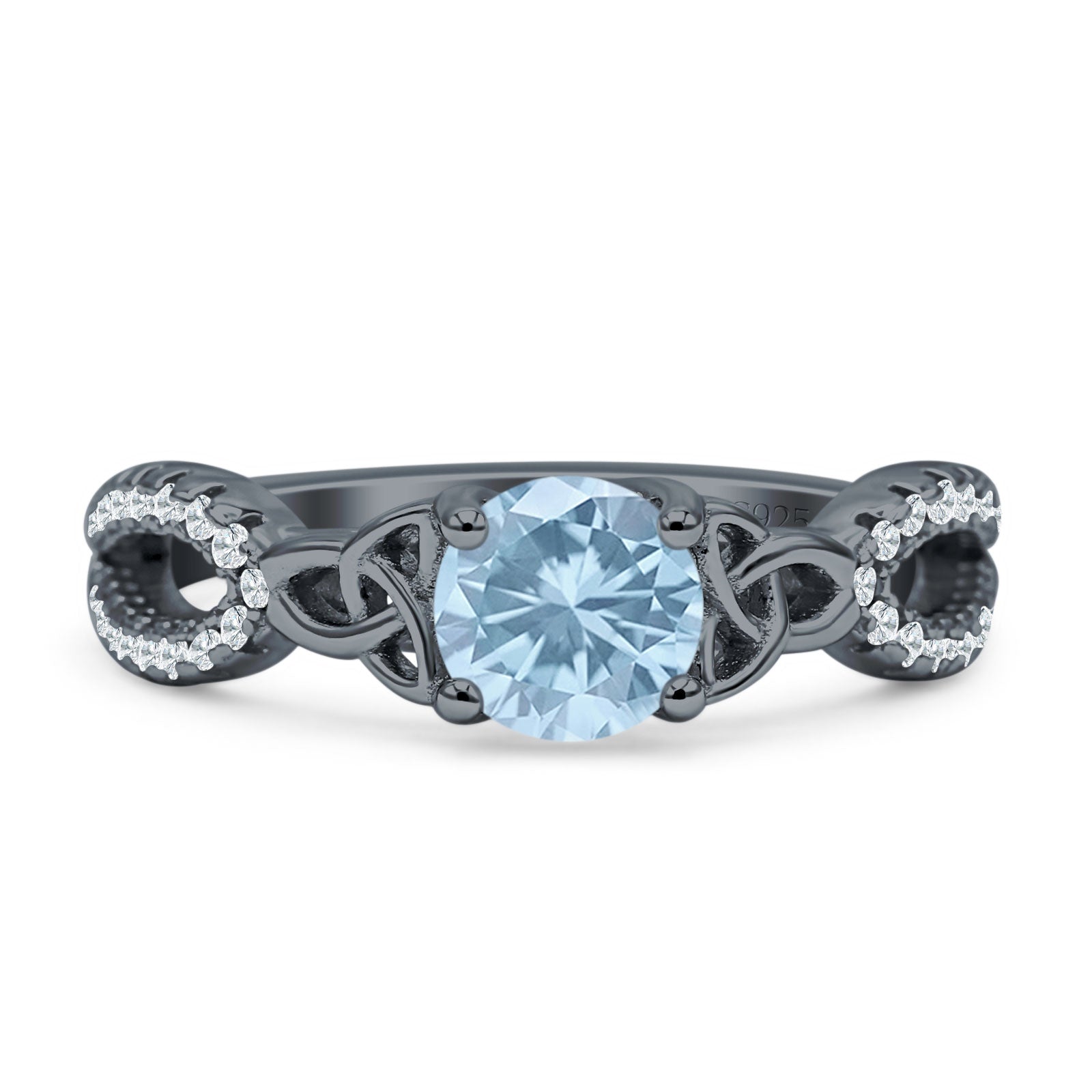 Round Cetlic Trinity Vintage Style Natural Aquamarine Ring 925 Sterling Silver
