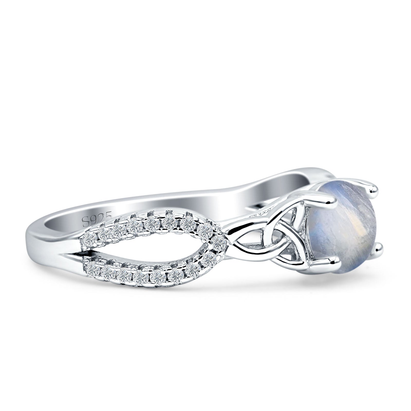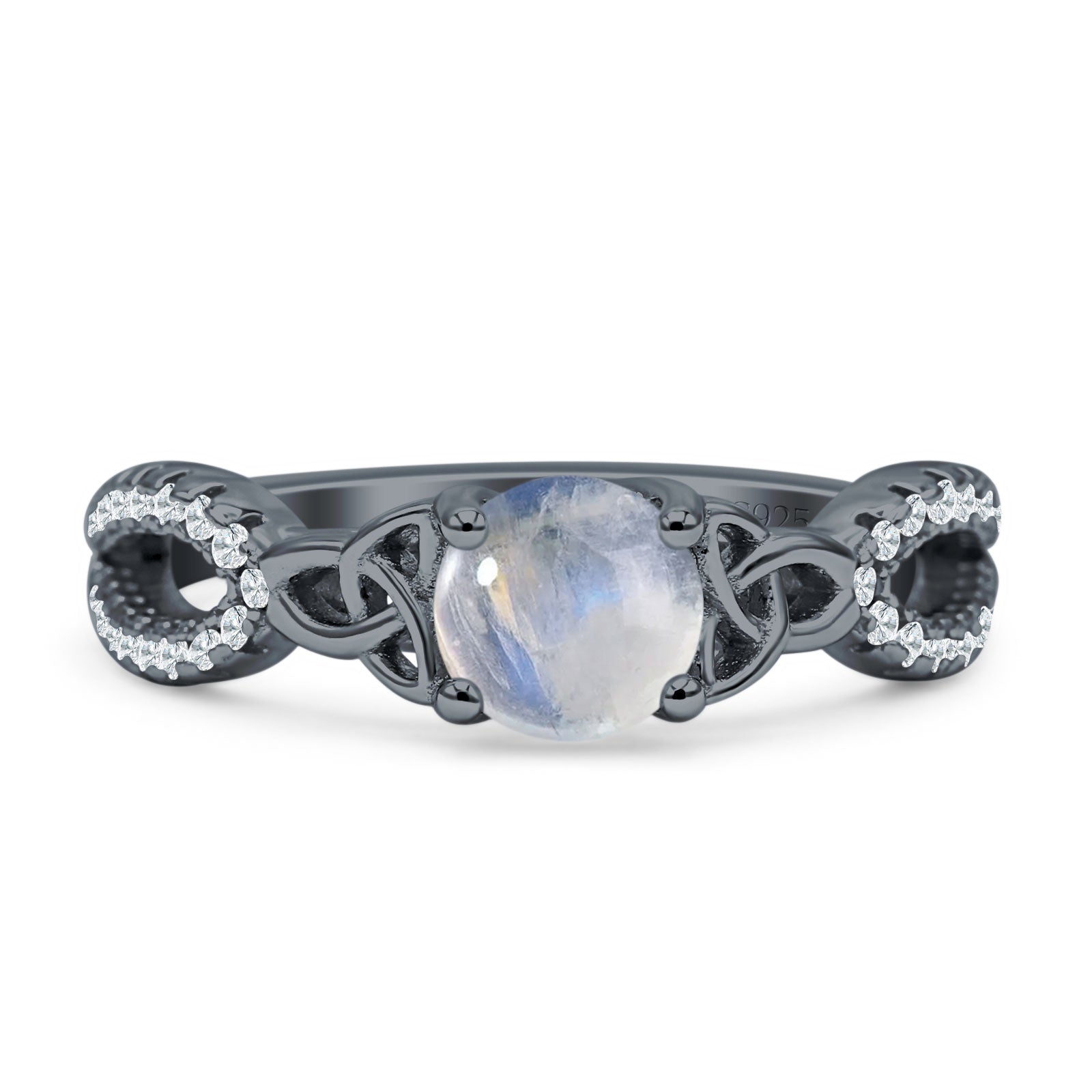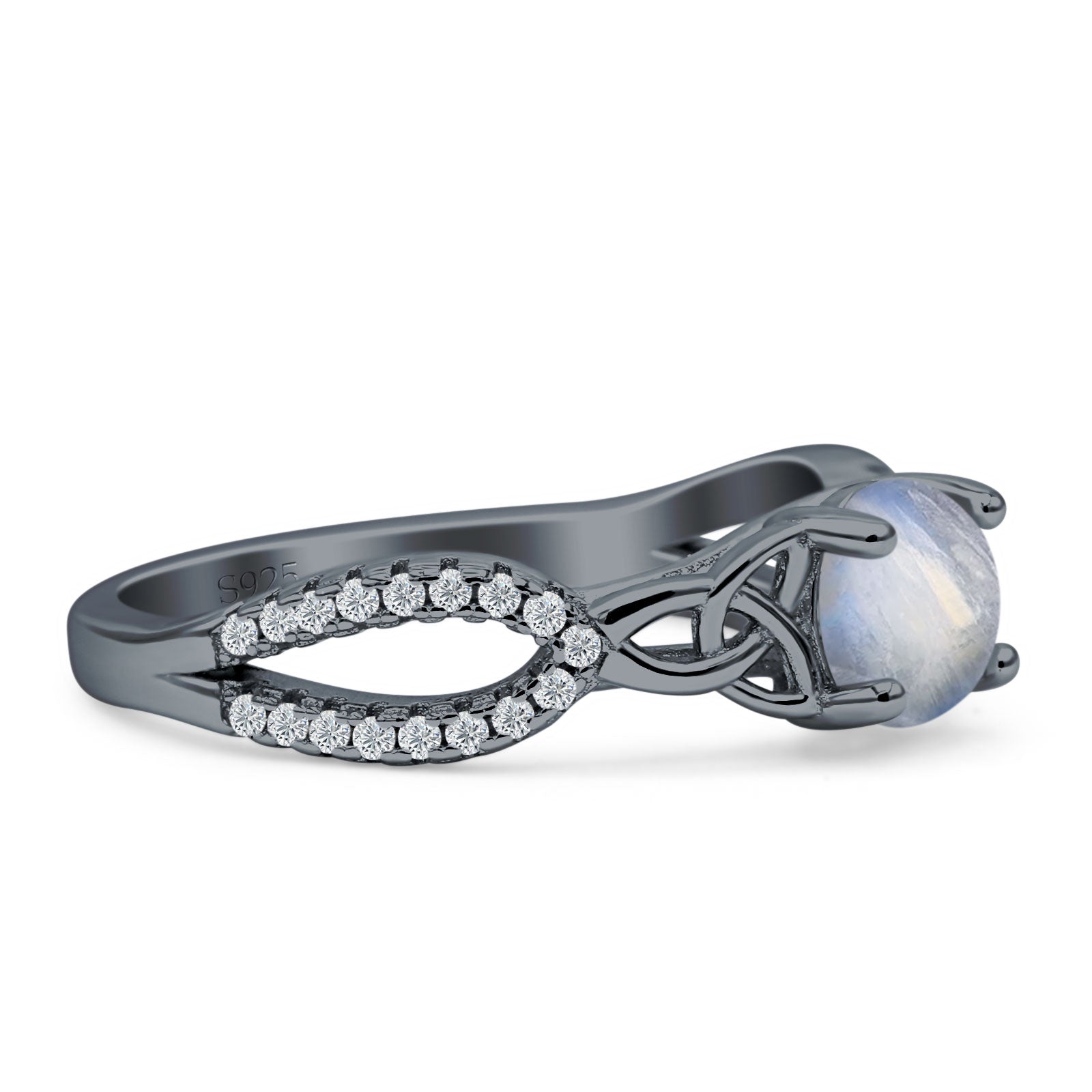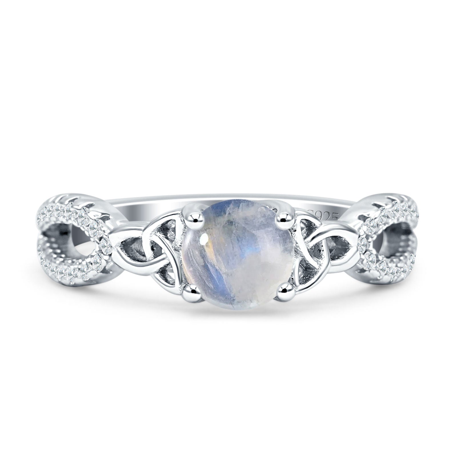 Round Cetlic Trinity Vintage Style Natural Moonstone Ring 925 Sterling Silver