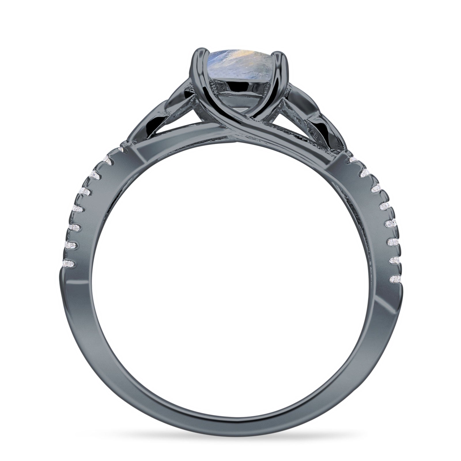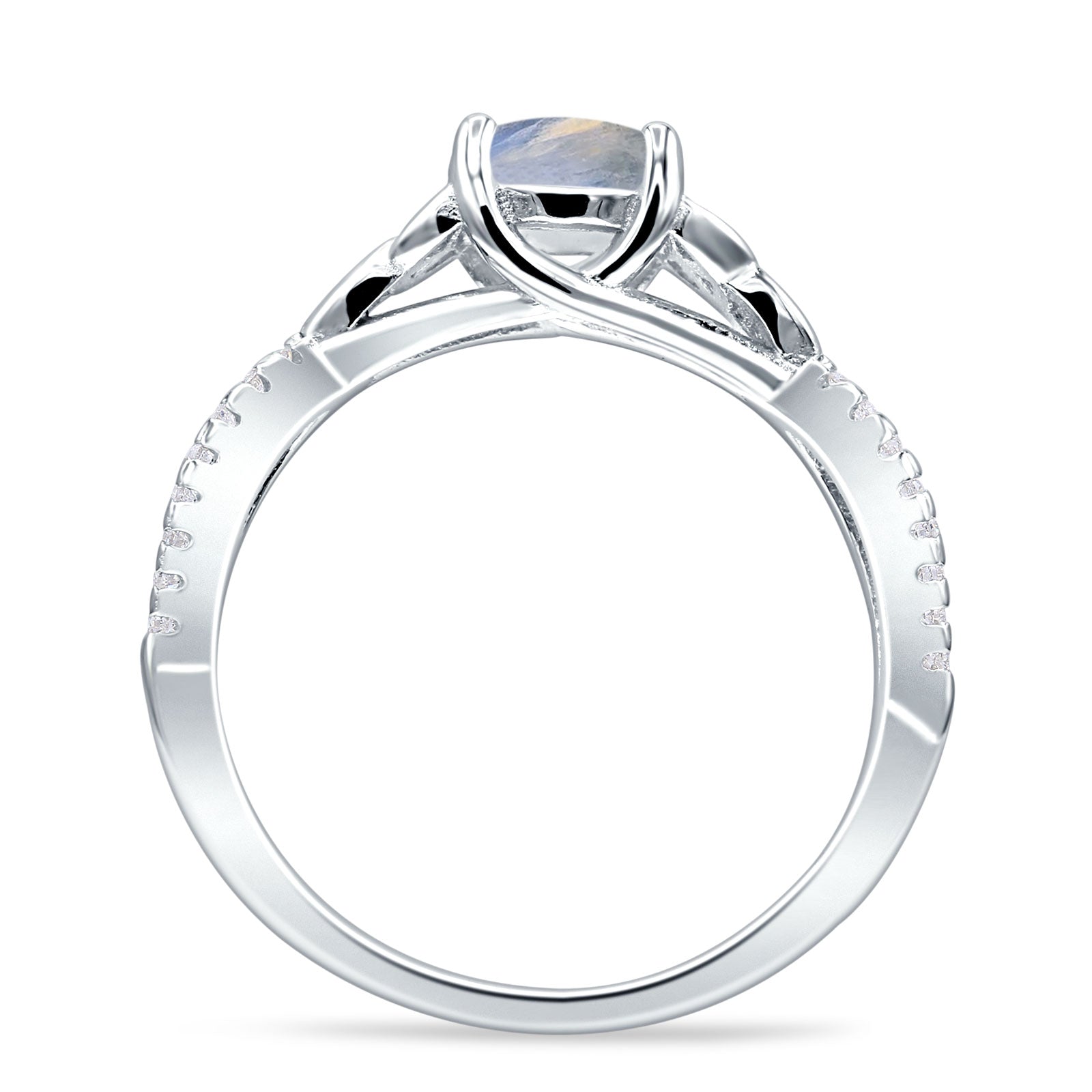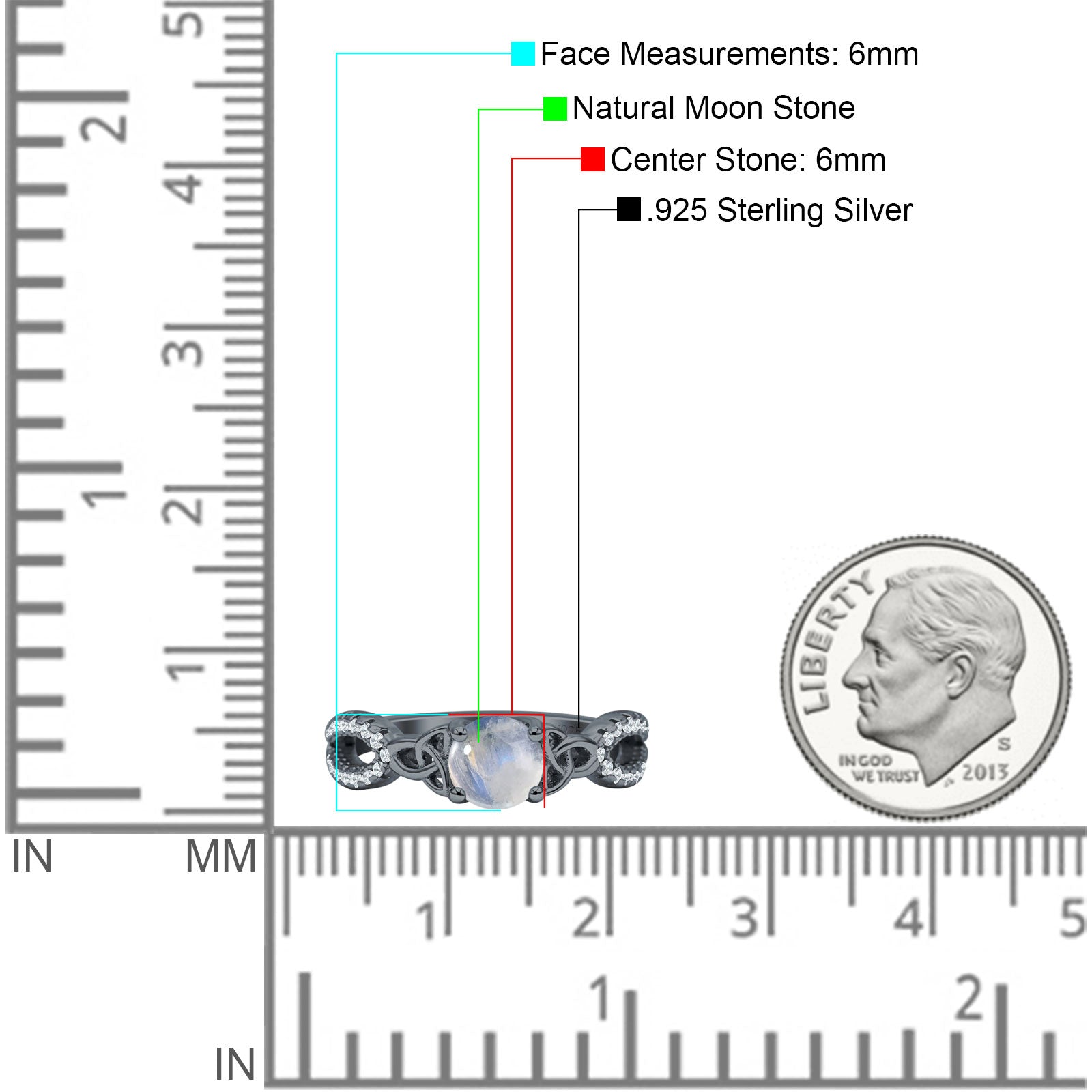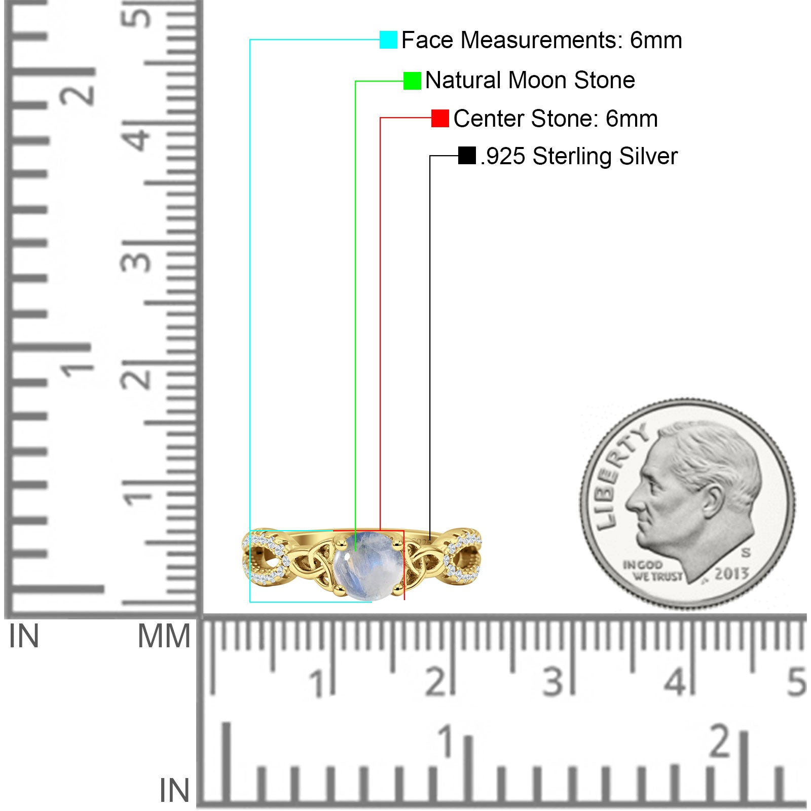 Round Cetlic Trinity Vintage Style Natural Moonstone Ring 925 Sterling Silver