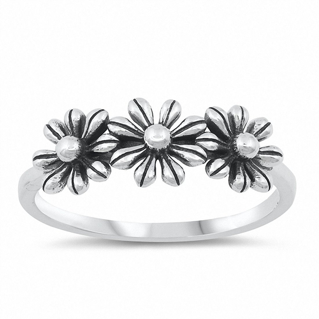 3 Flowers Band Ring Solid 925 Sterling Silver Choose Color