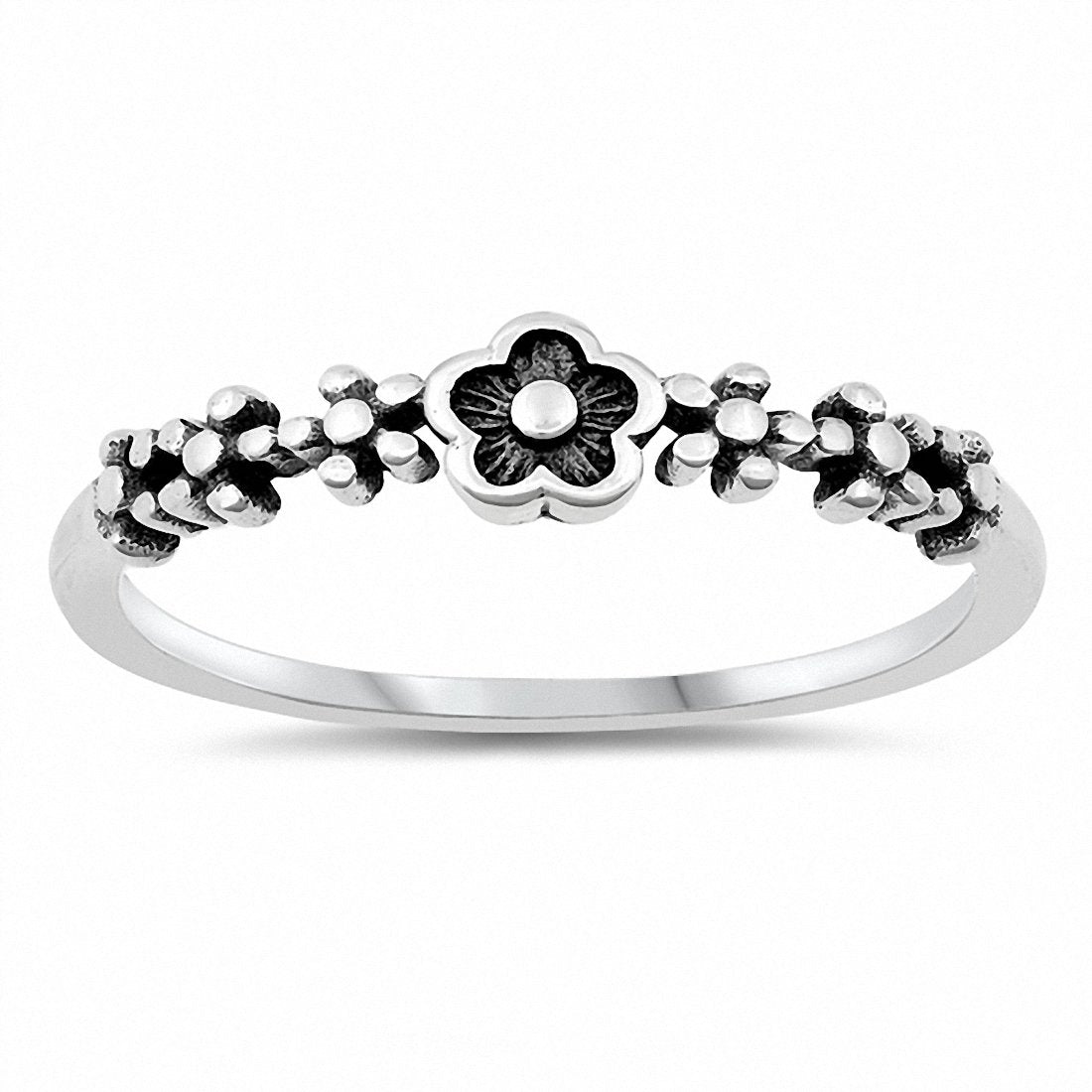 Flower Band Ring Oxidized Solid 925 Sterling Silver Choose Color