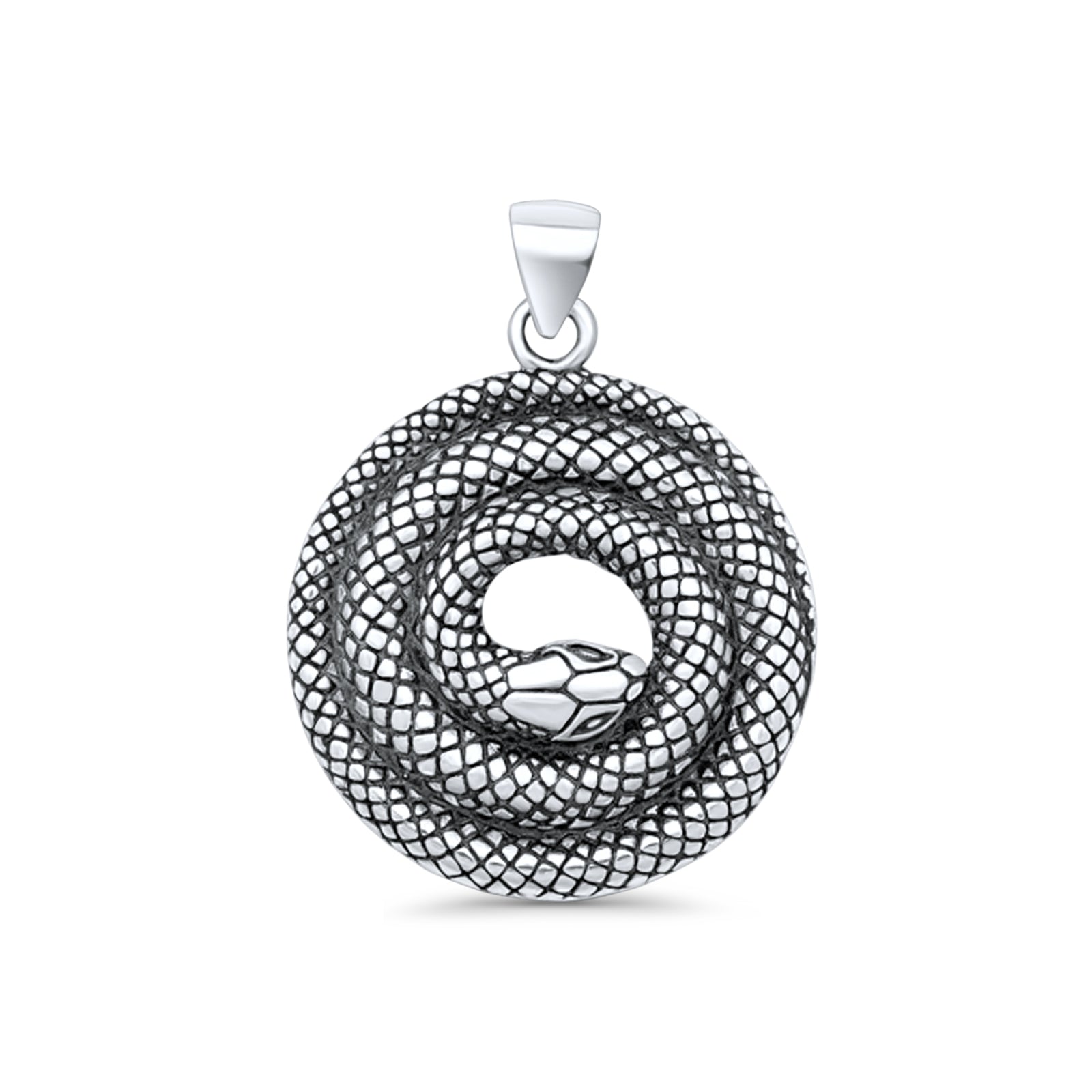 Snake Pendant Oxidized Box Chain Necklace 925 Sterling Silver
