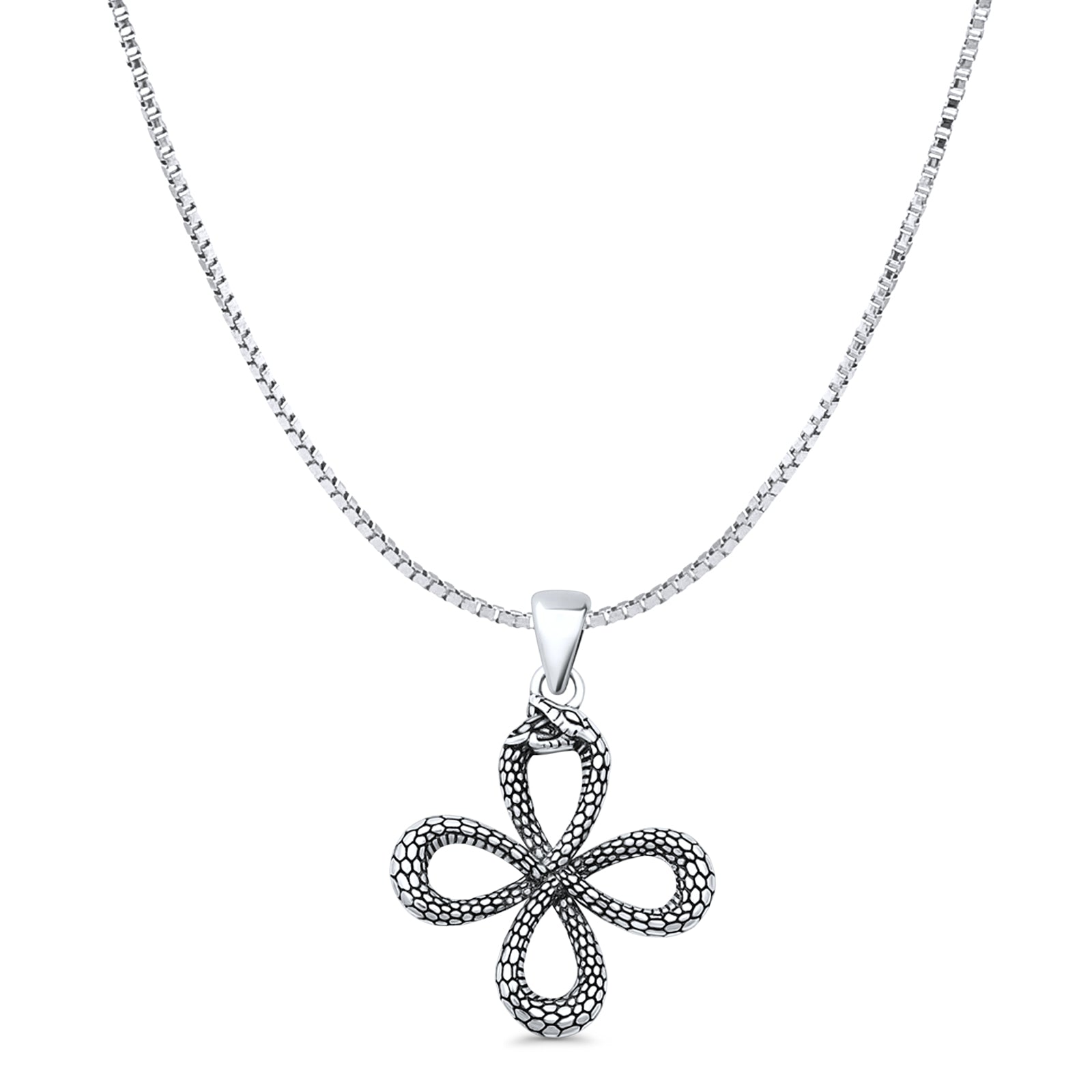 Snake Pendant Oxidized Box Chain Necklace 925 Sterling Silver
