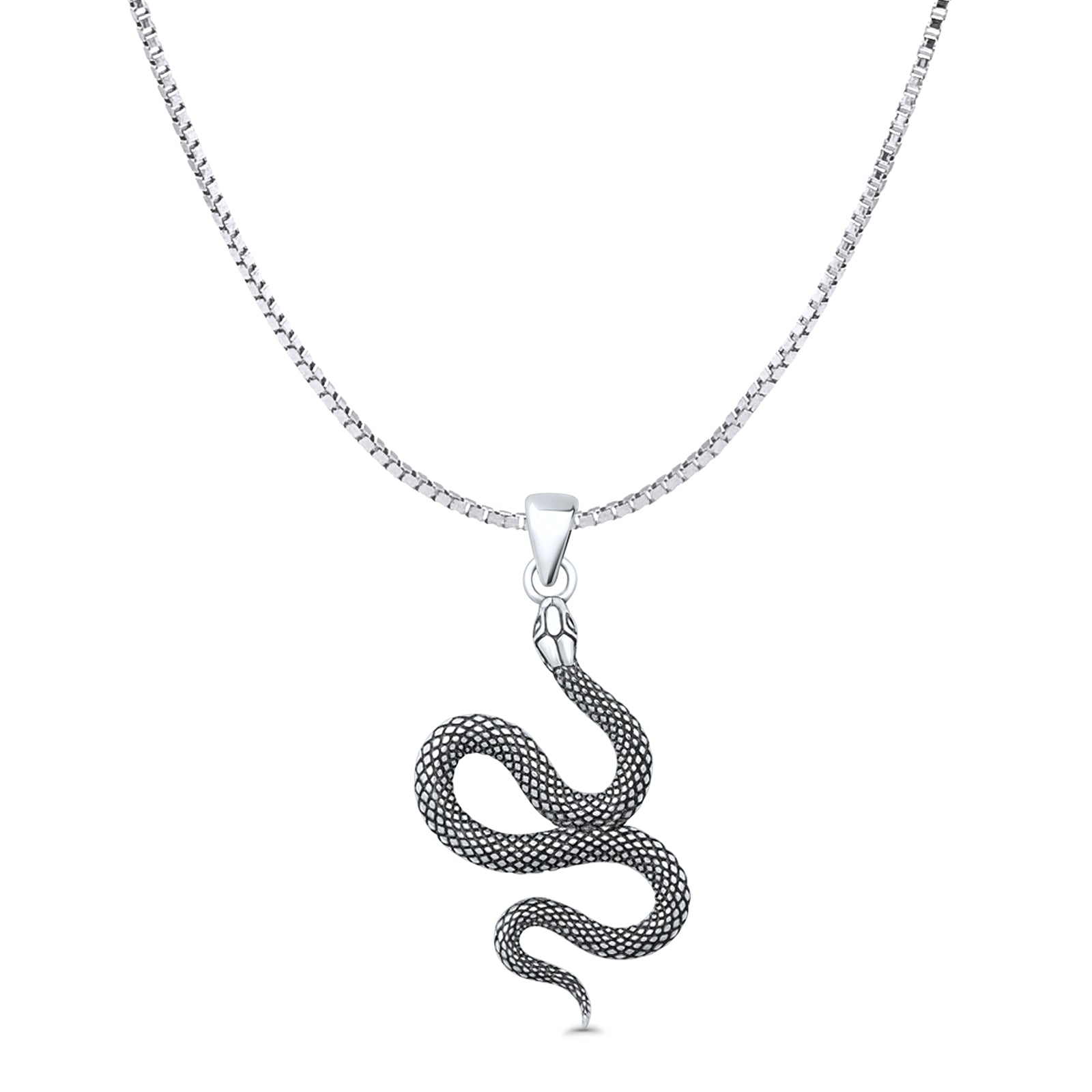 Snake Pendant Oxidized Box Chain Necklace 925 Sterling Silver