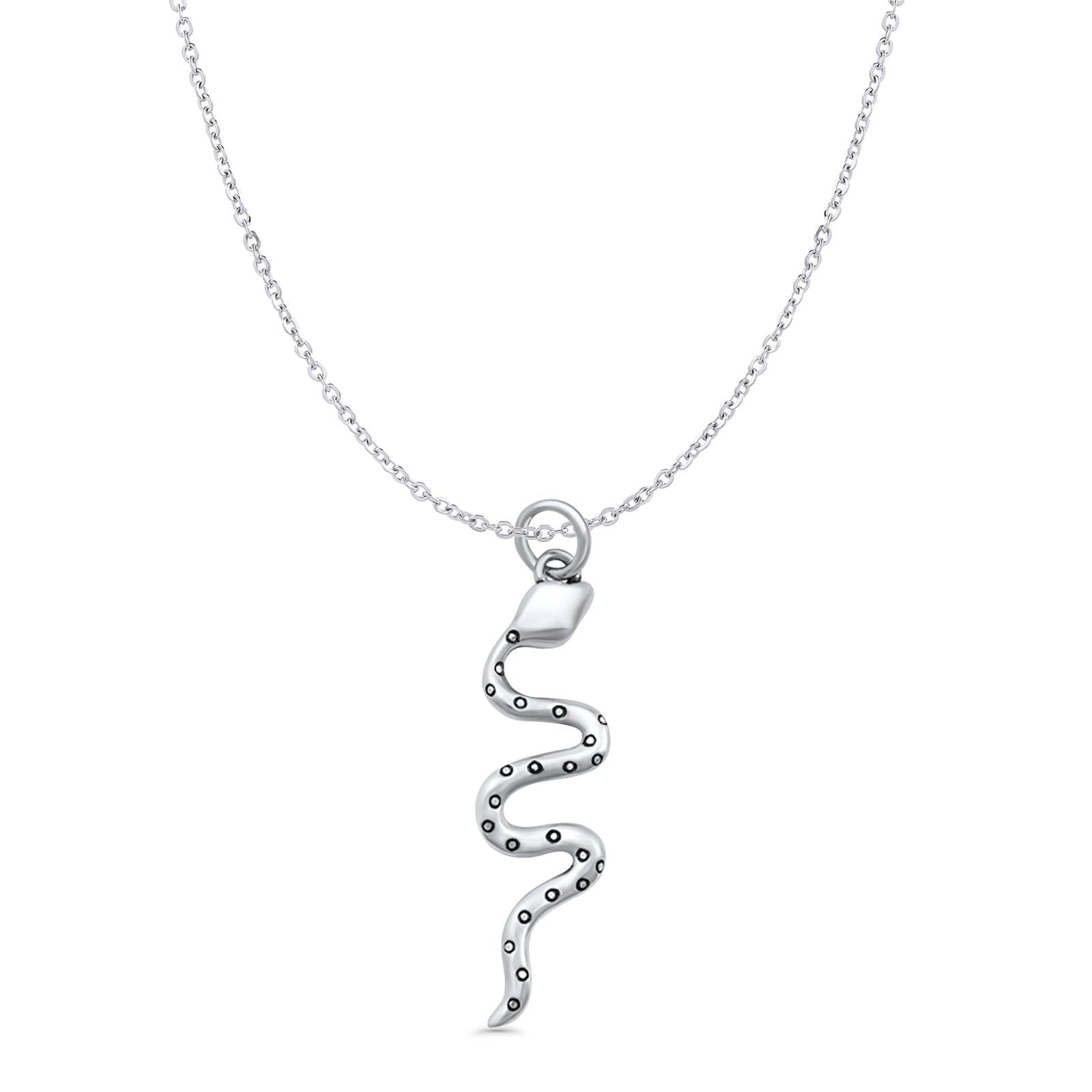 Snake Pendant Oxidized Cable Chain Necklace 925 Sterling Silver