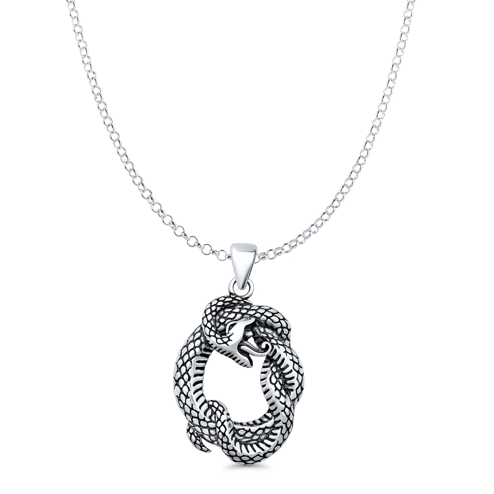 Snake Pendant Oxidized Rolo Chain Necklace 925 Sterling Silver