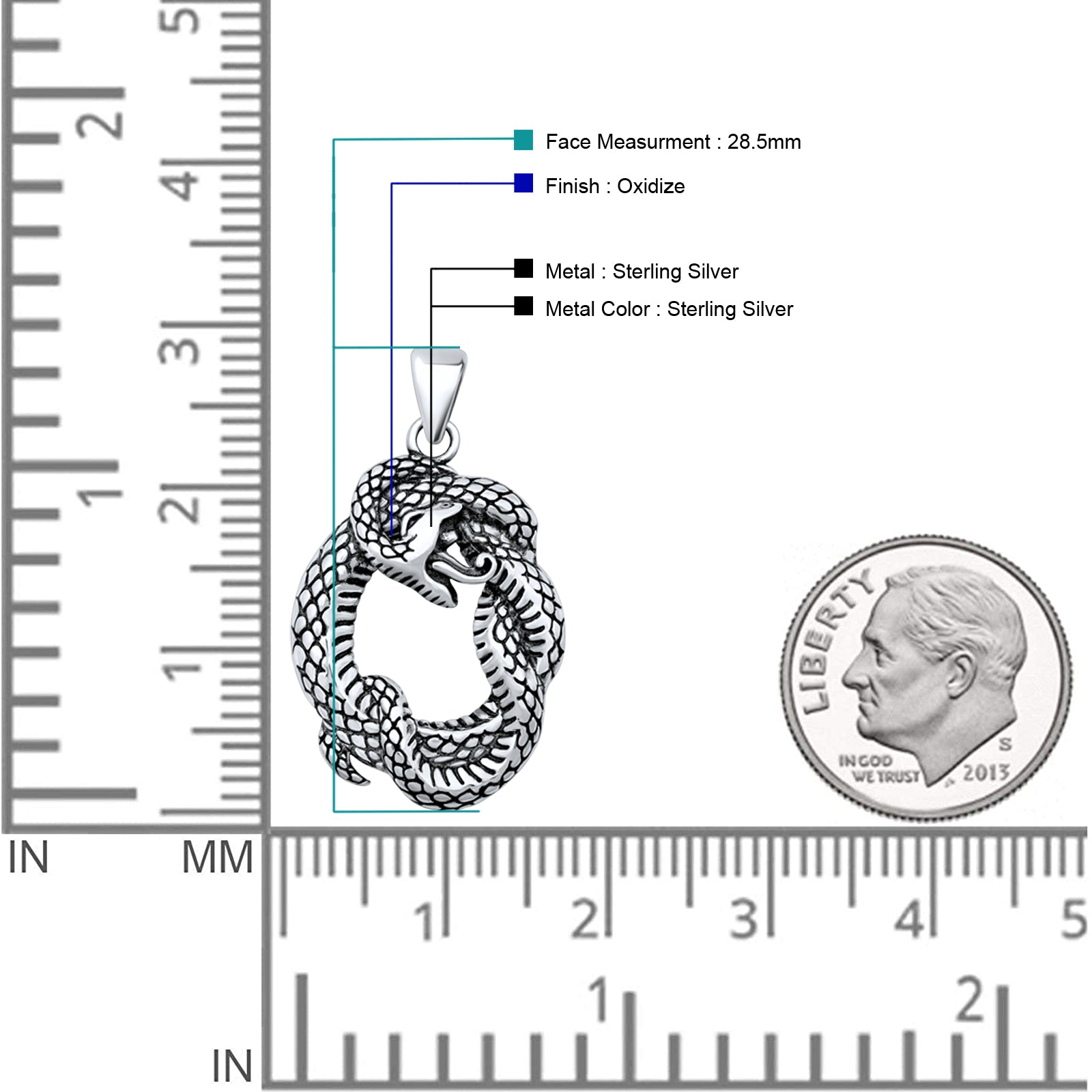 Pendant Length: 28.4mm(1.12 inch)