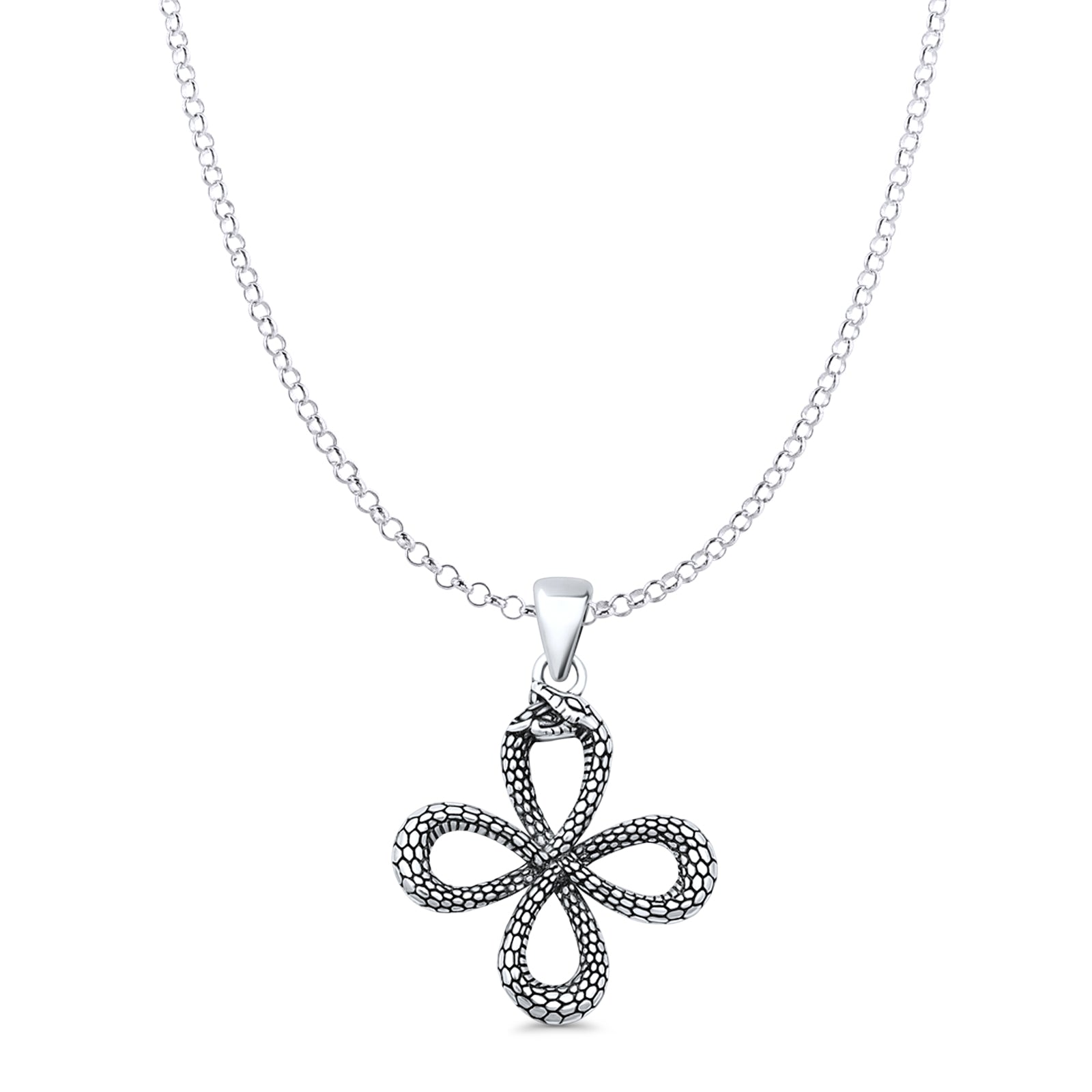 Snake Pendant Oxidized Rolo Chain Necklace 925 Sterling Silver