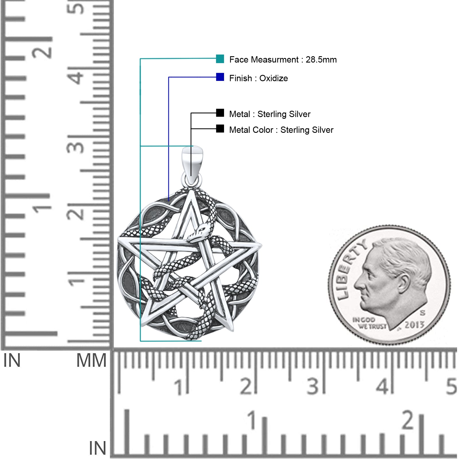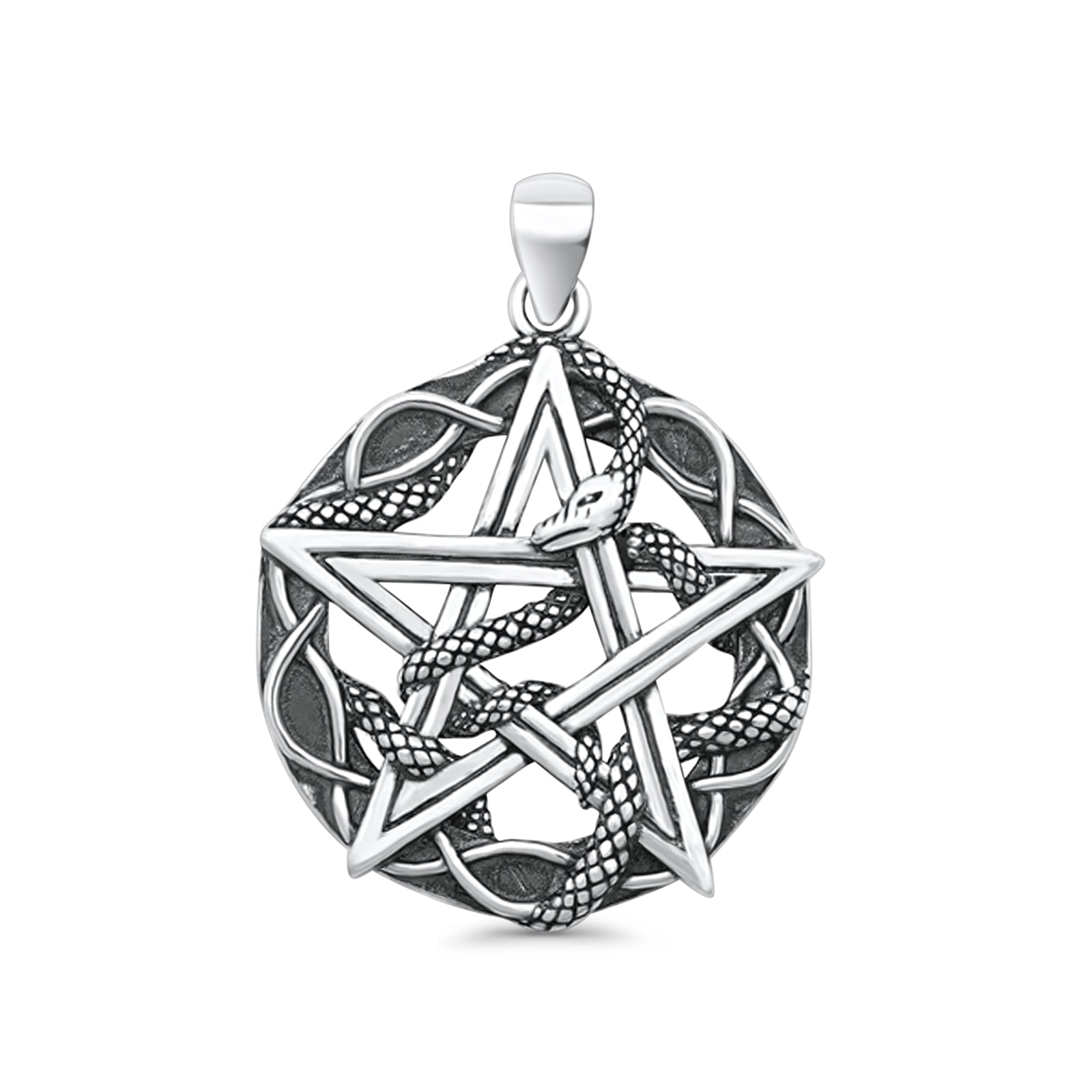 Snake & Pentagram Pendant Oxidized Rope Chain Necklace 925 Sterling Silver