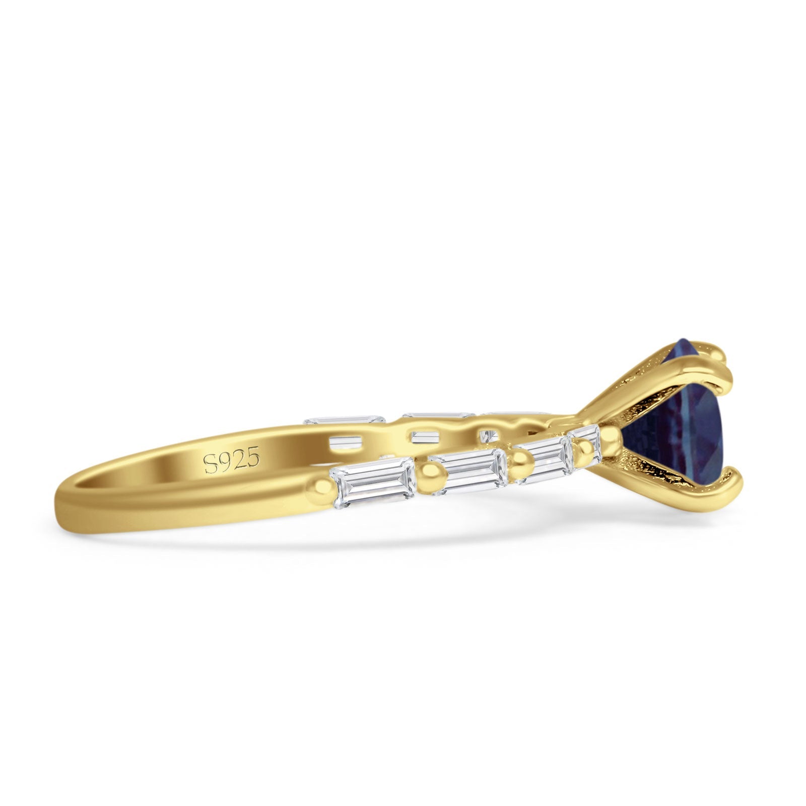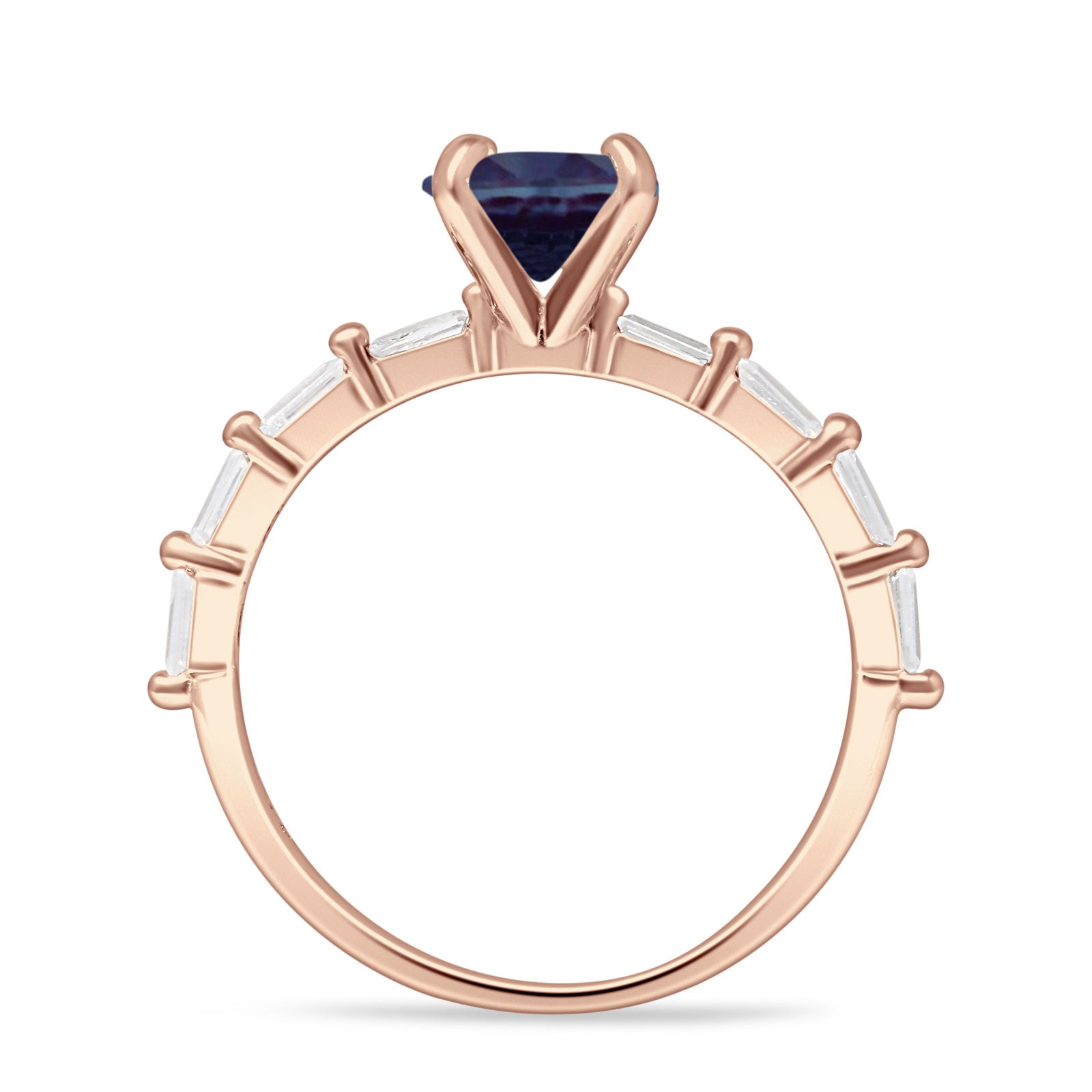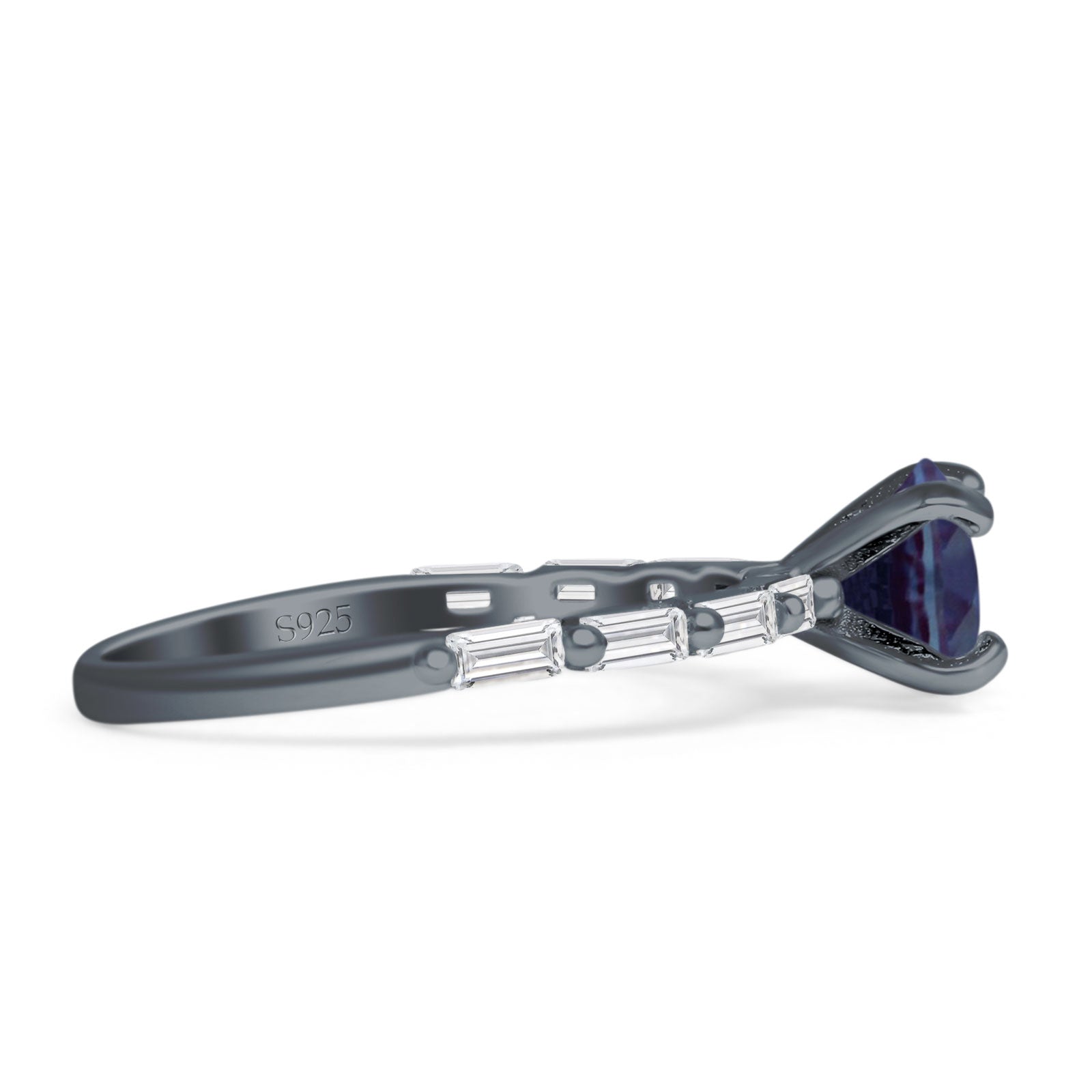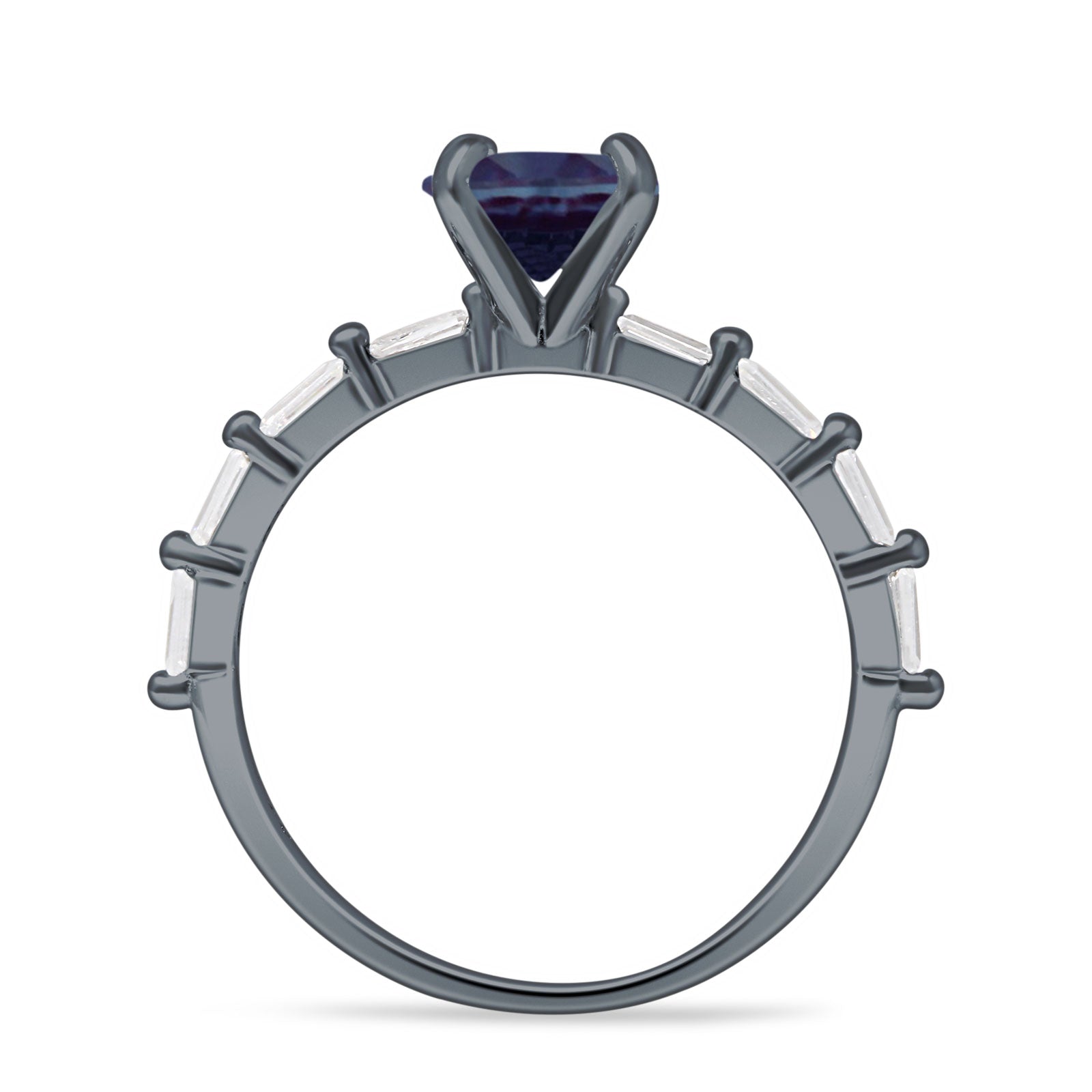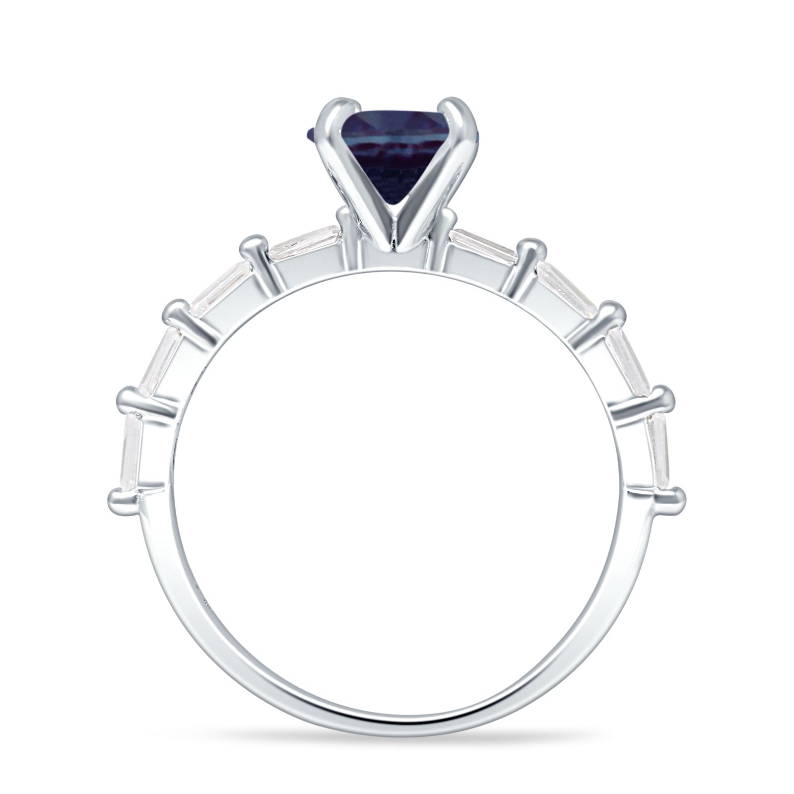Solitaire Baguette Round Lab Alexandrite Engagement Ring 925 Sterling Silver
