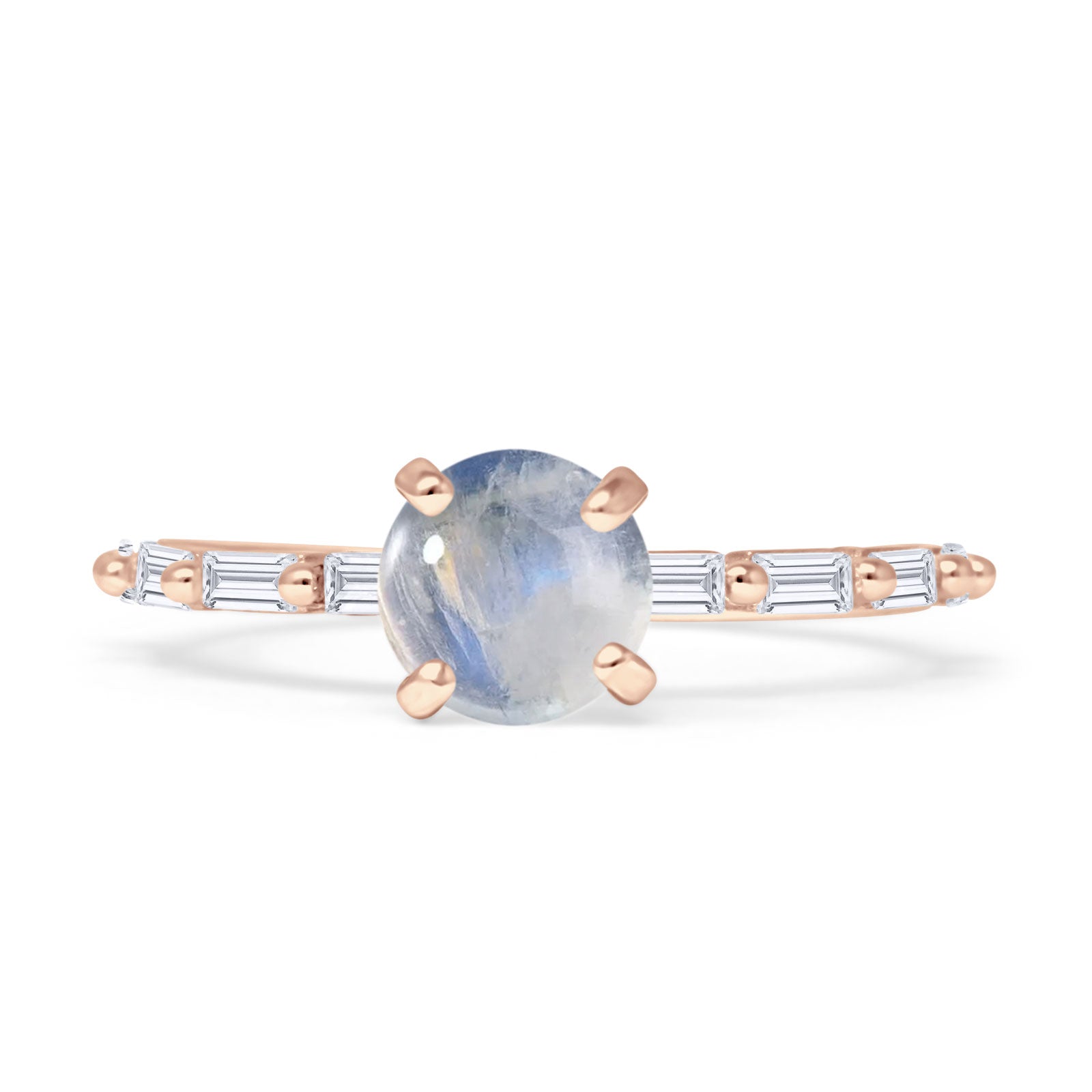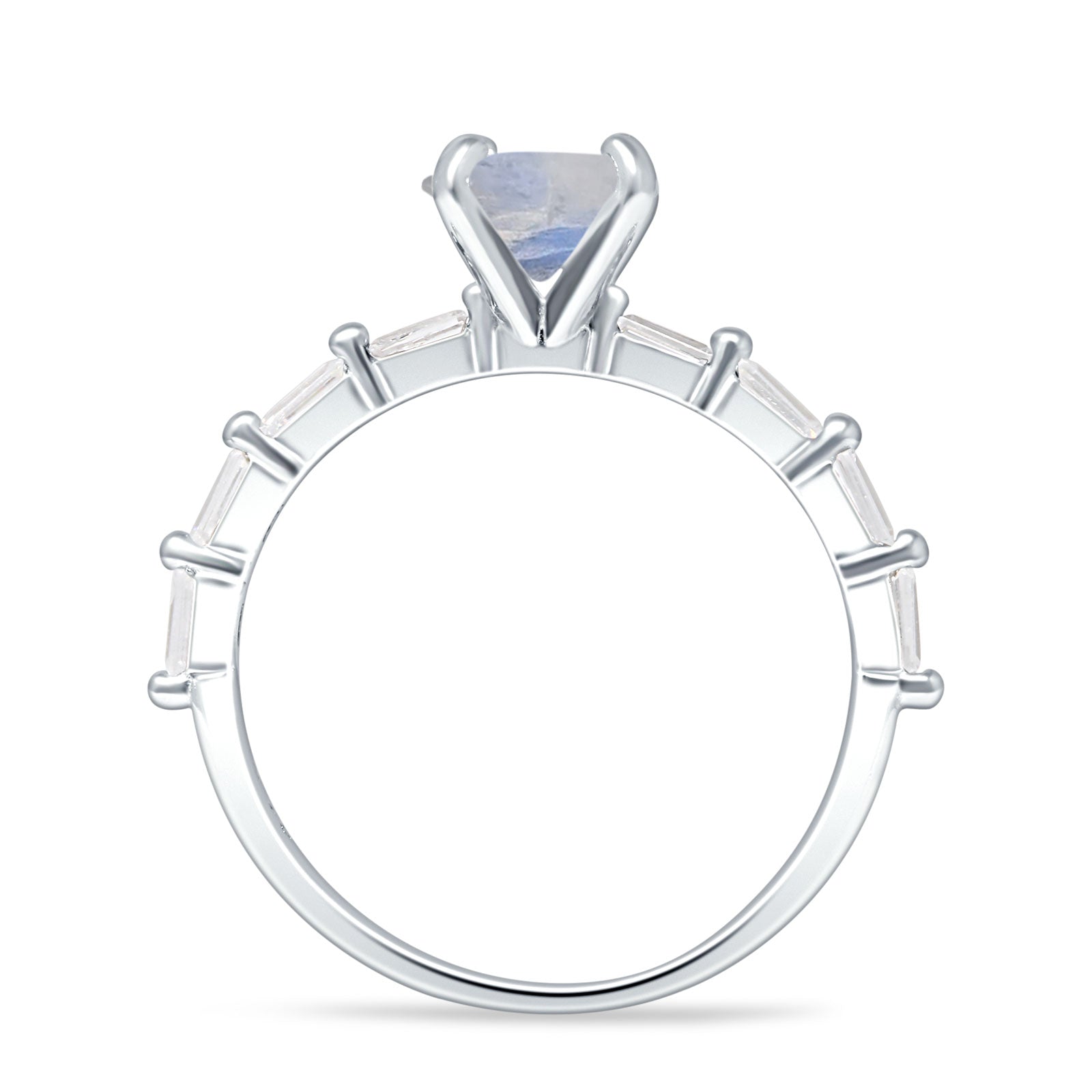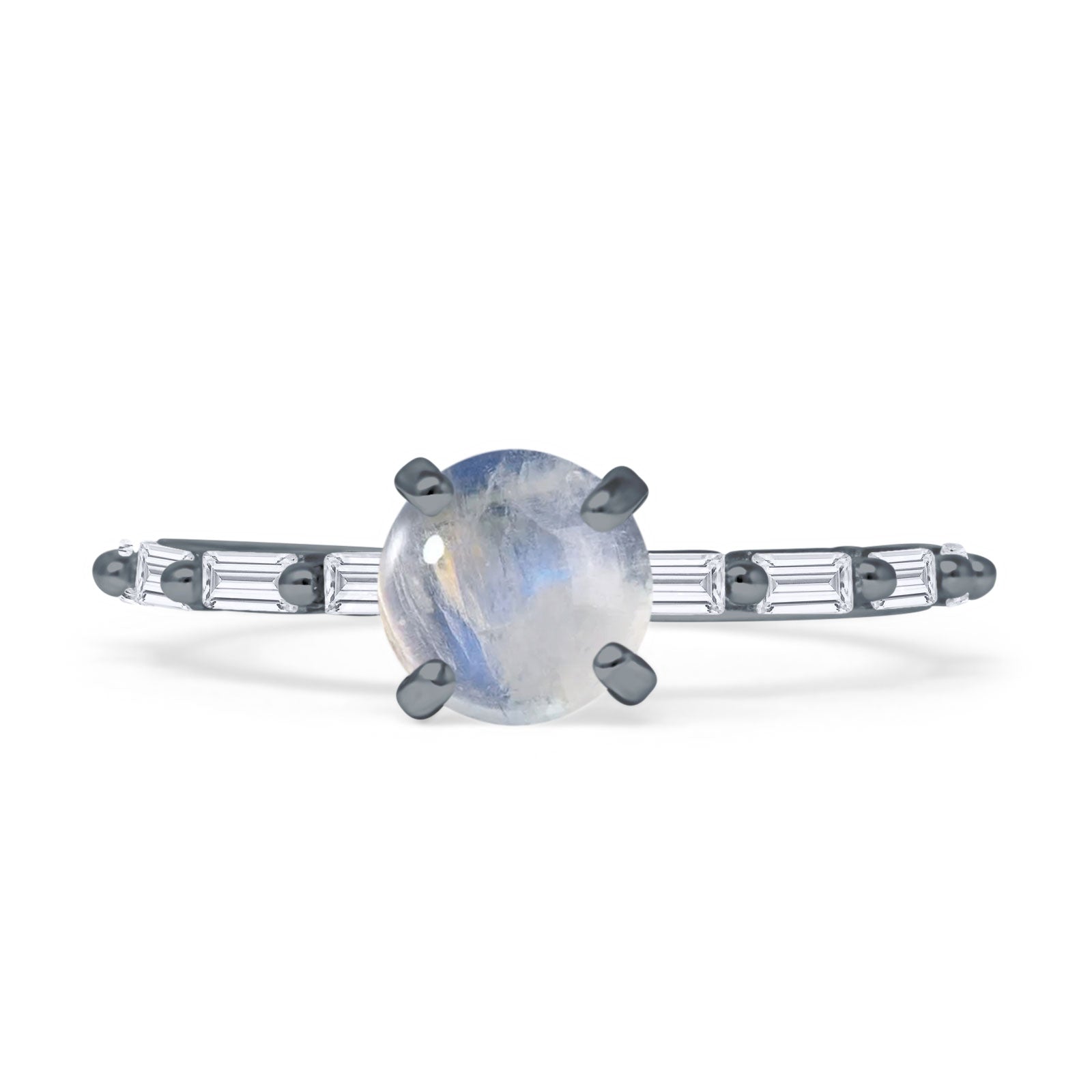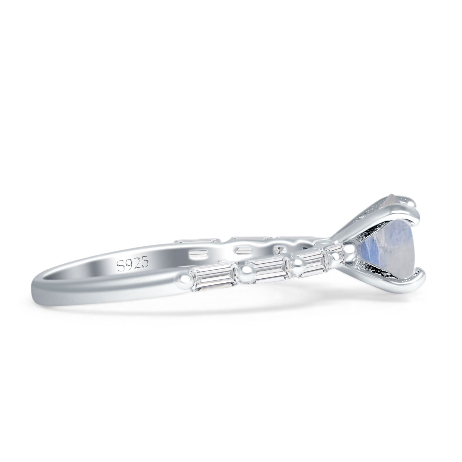 Solitaire Baguette Round Natural Moonstone Engagement Ring 925 Sterling Silver