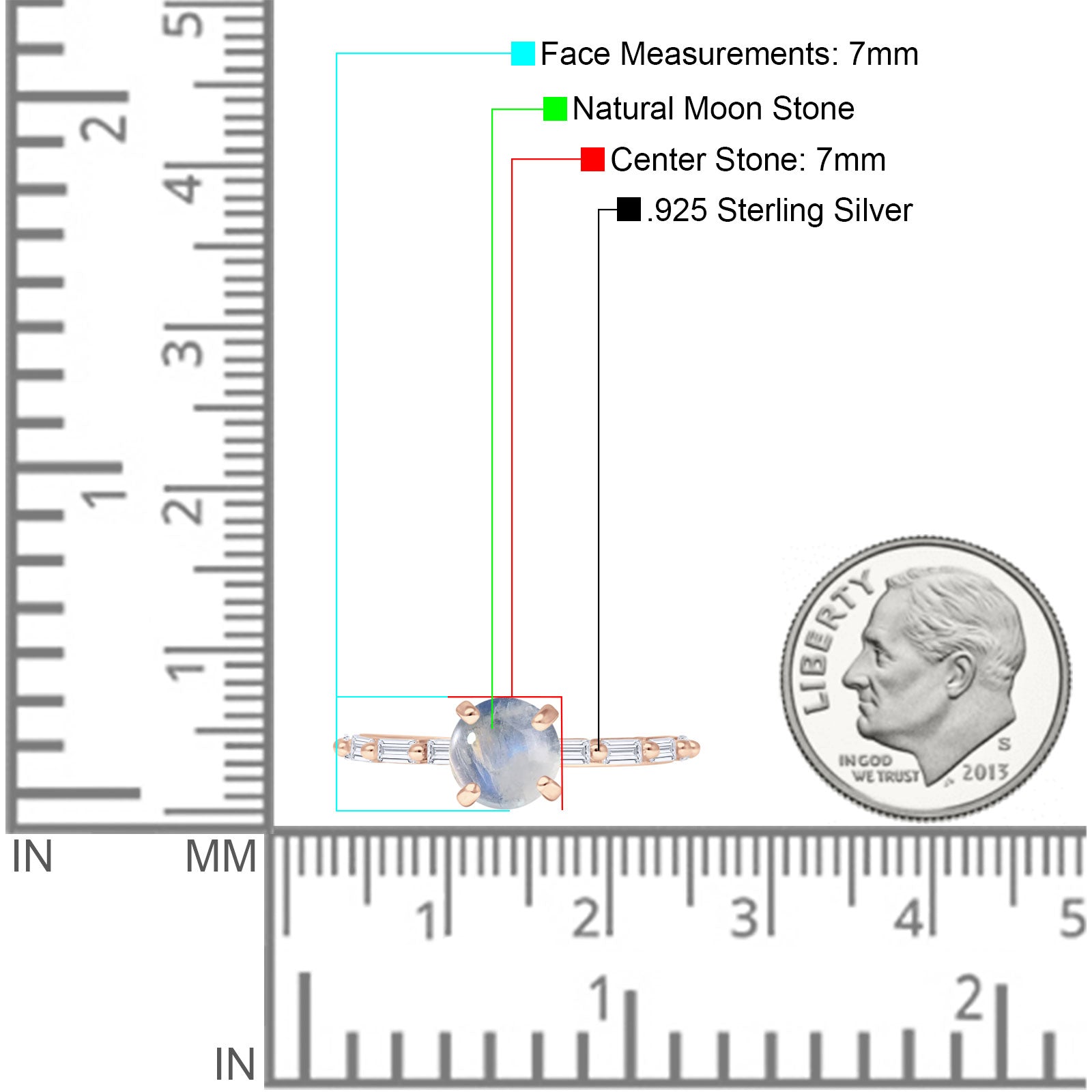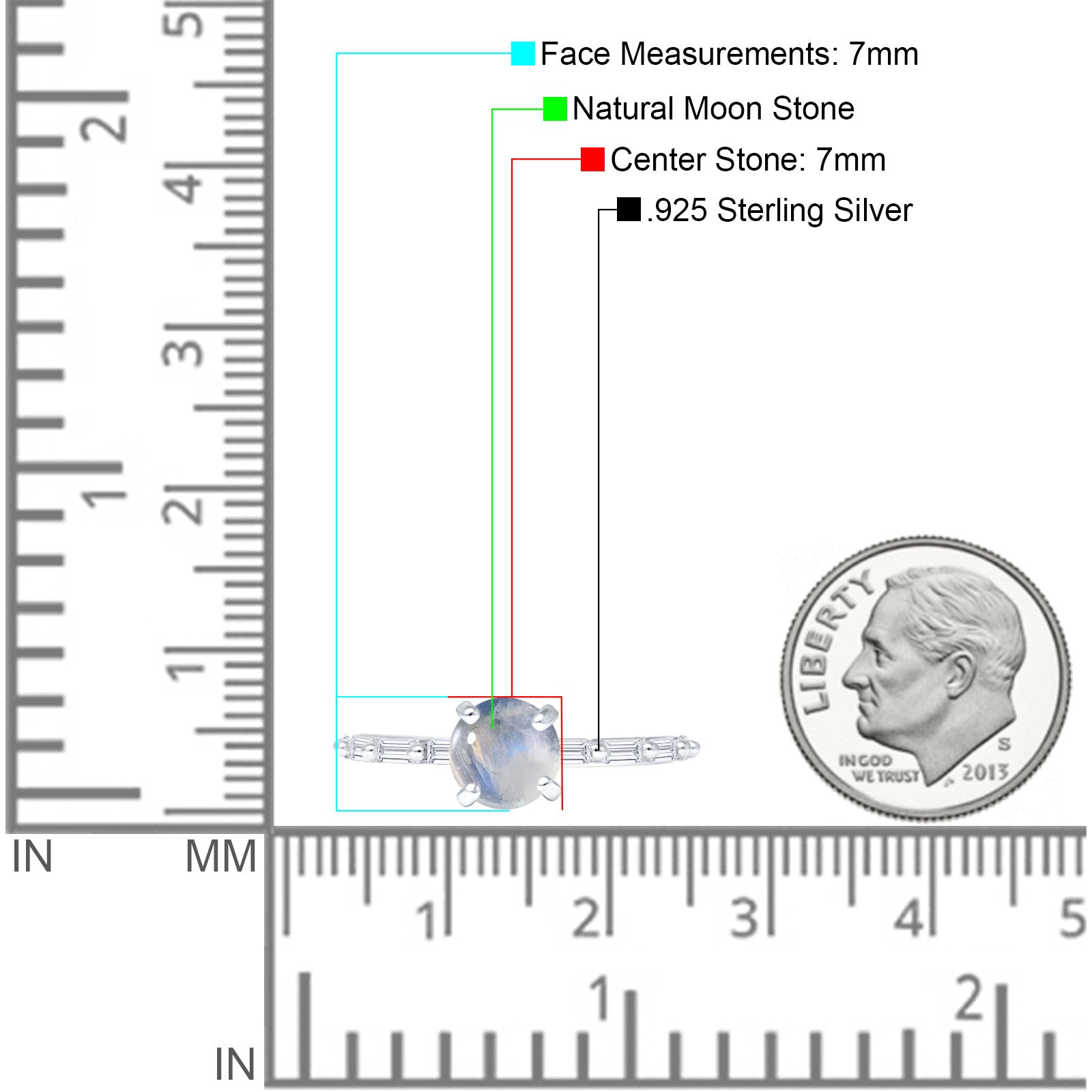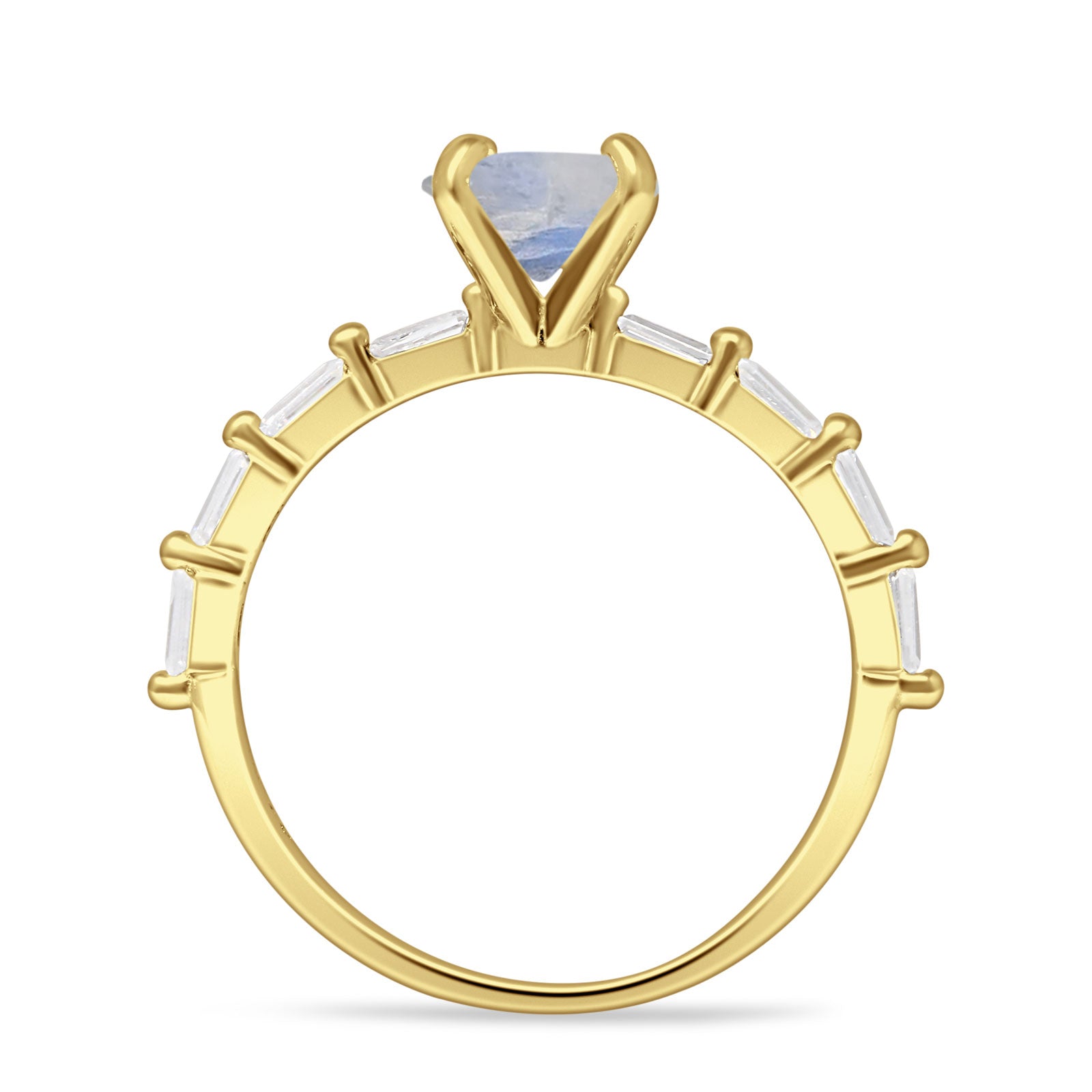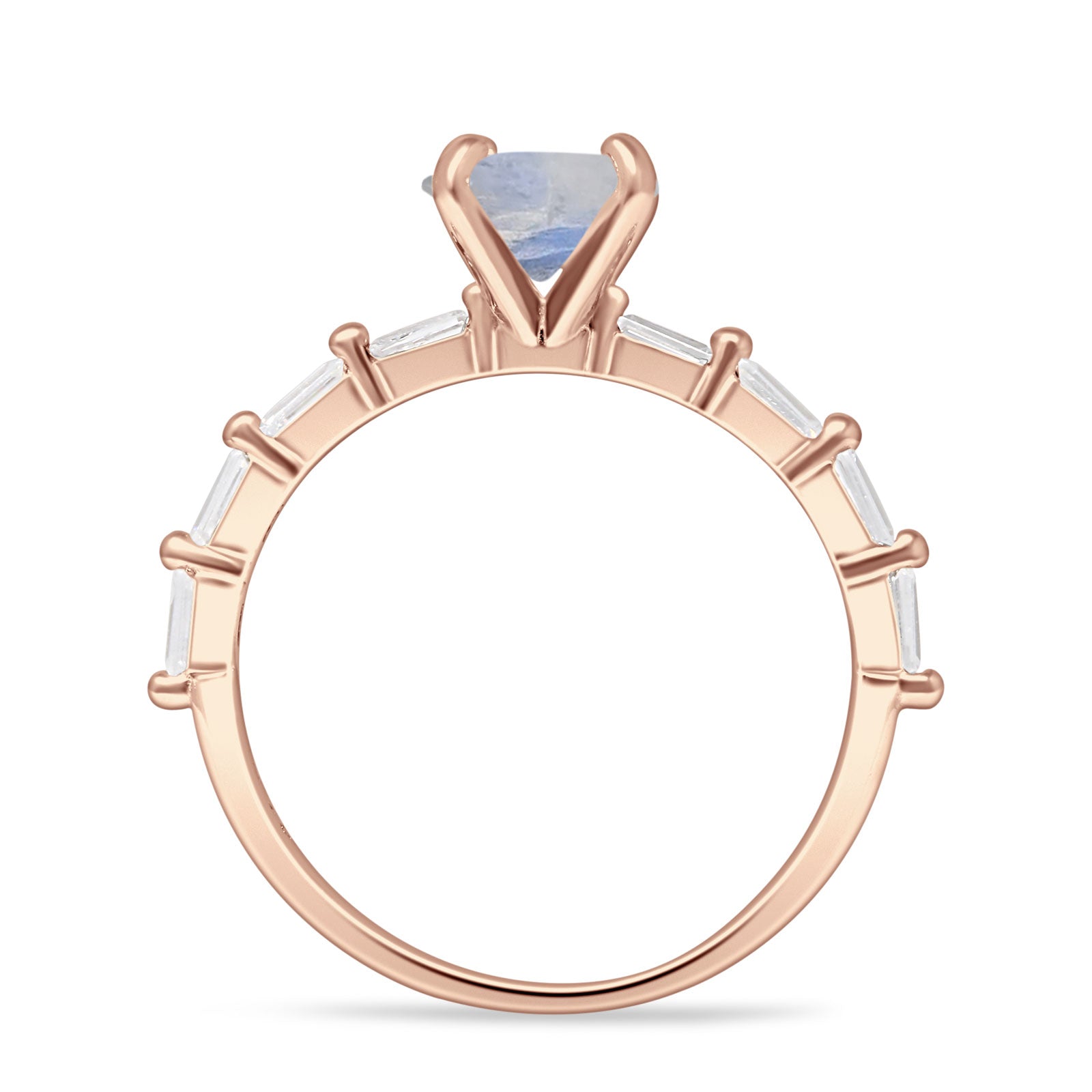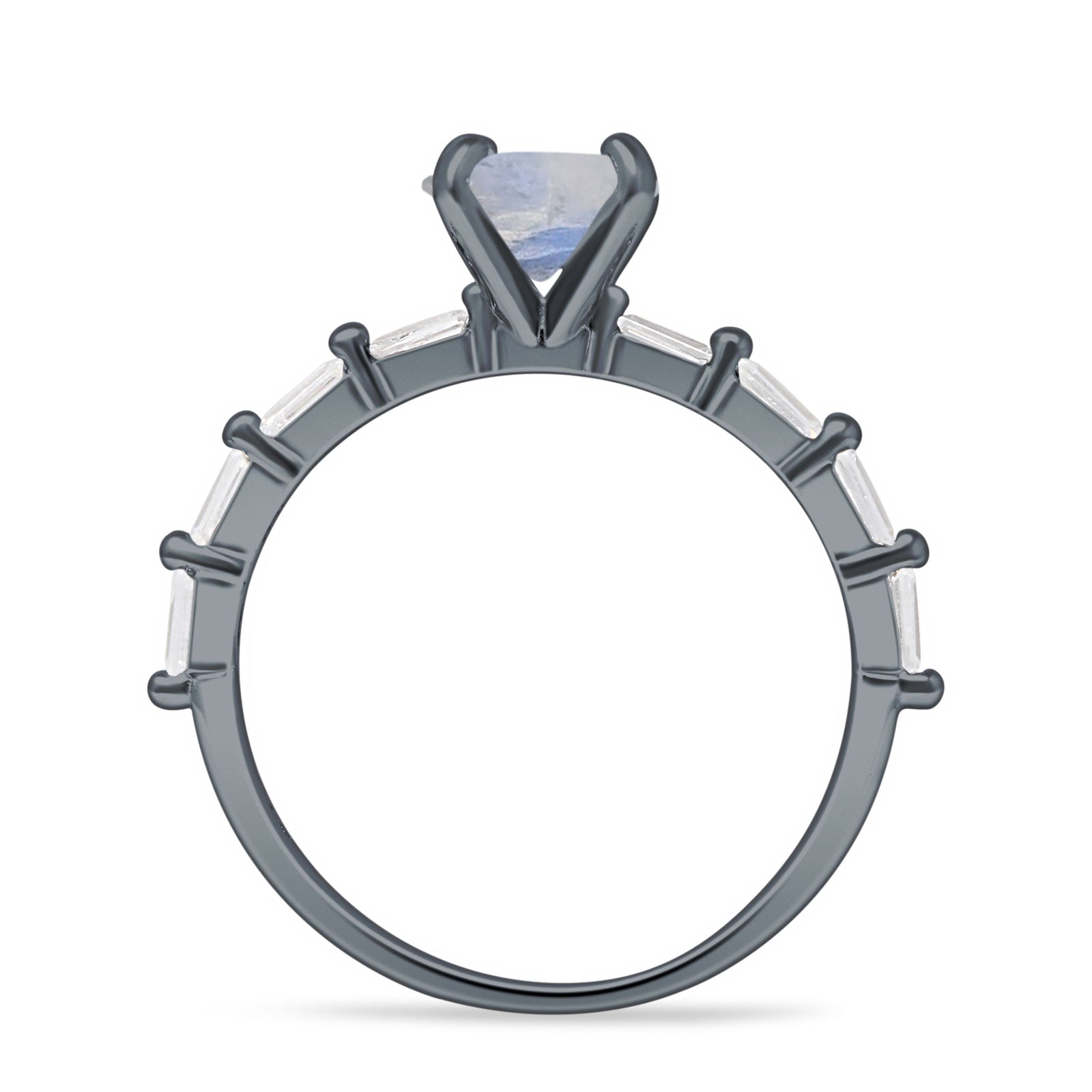 Solitaire Baguette Round Natural Moonstone Engagement Ring 925 Sterling Silver