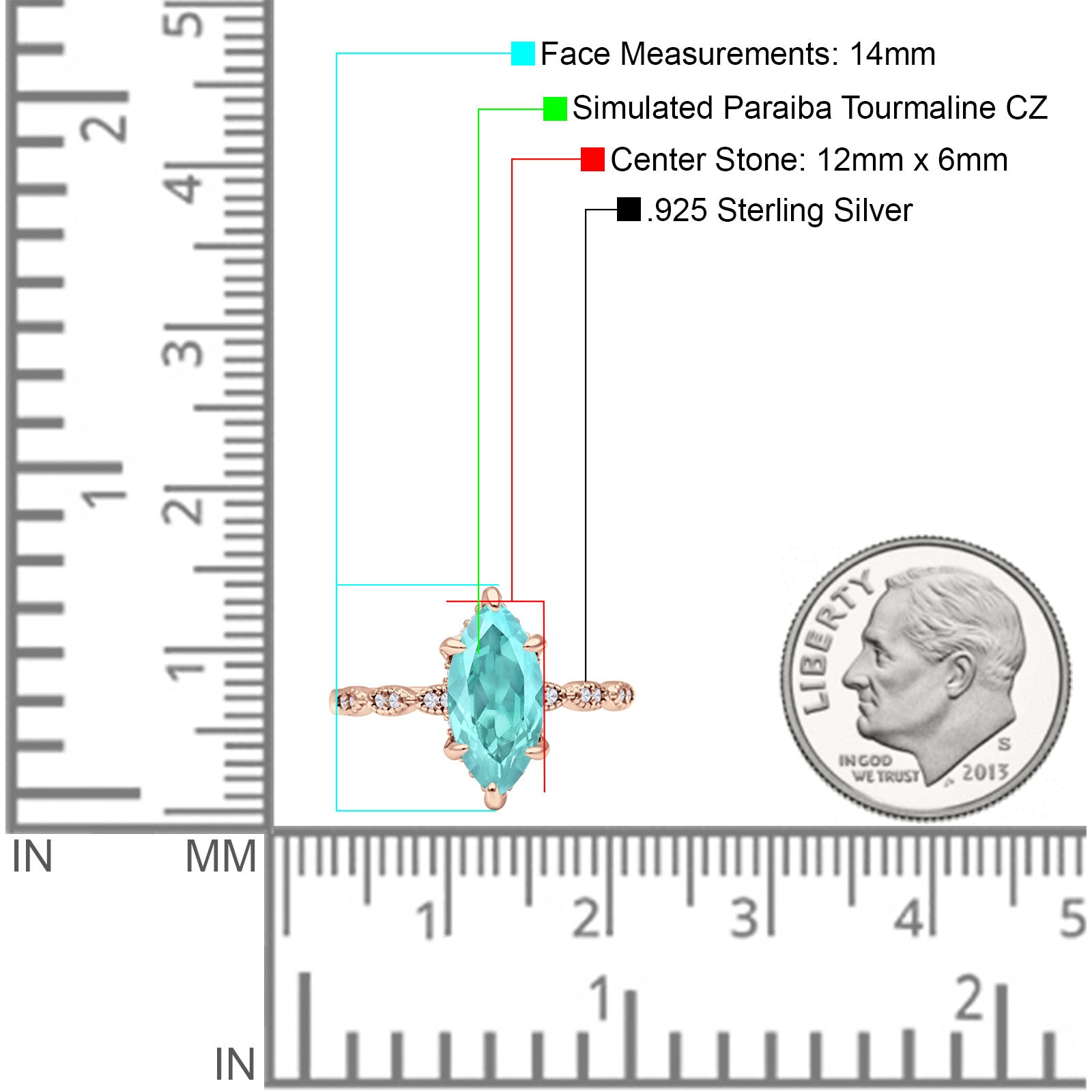 Simulated Paraiba Tourmaline Rose Tone Silver