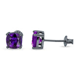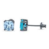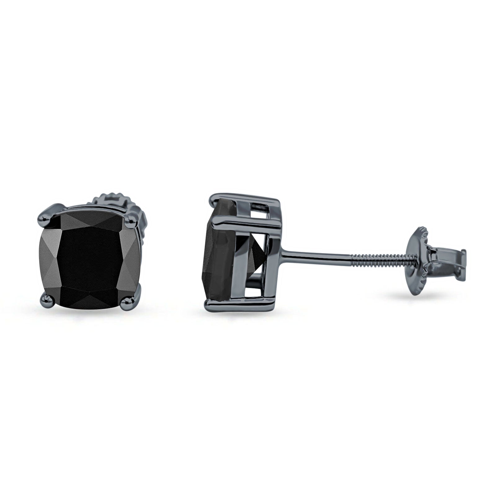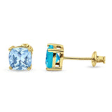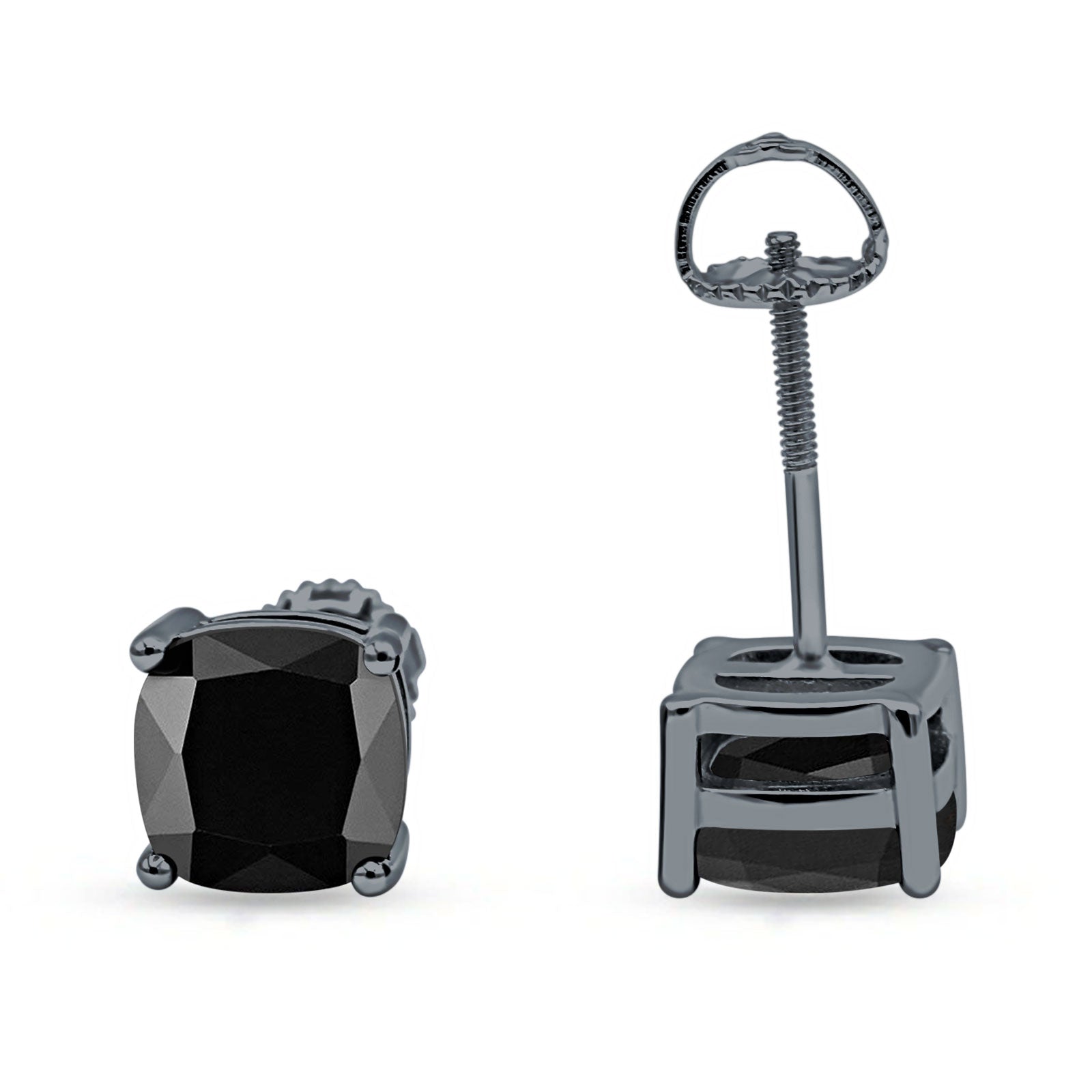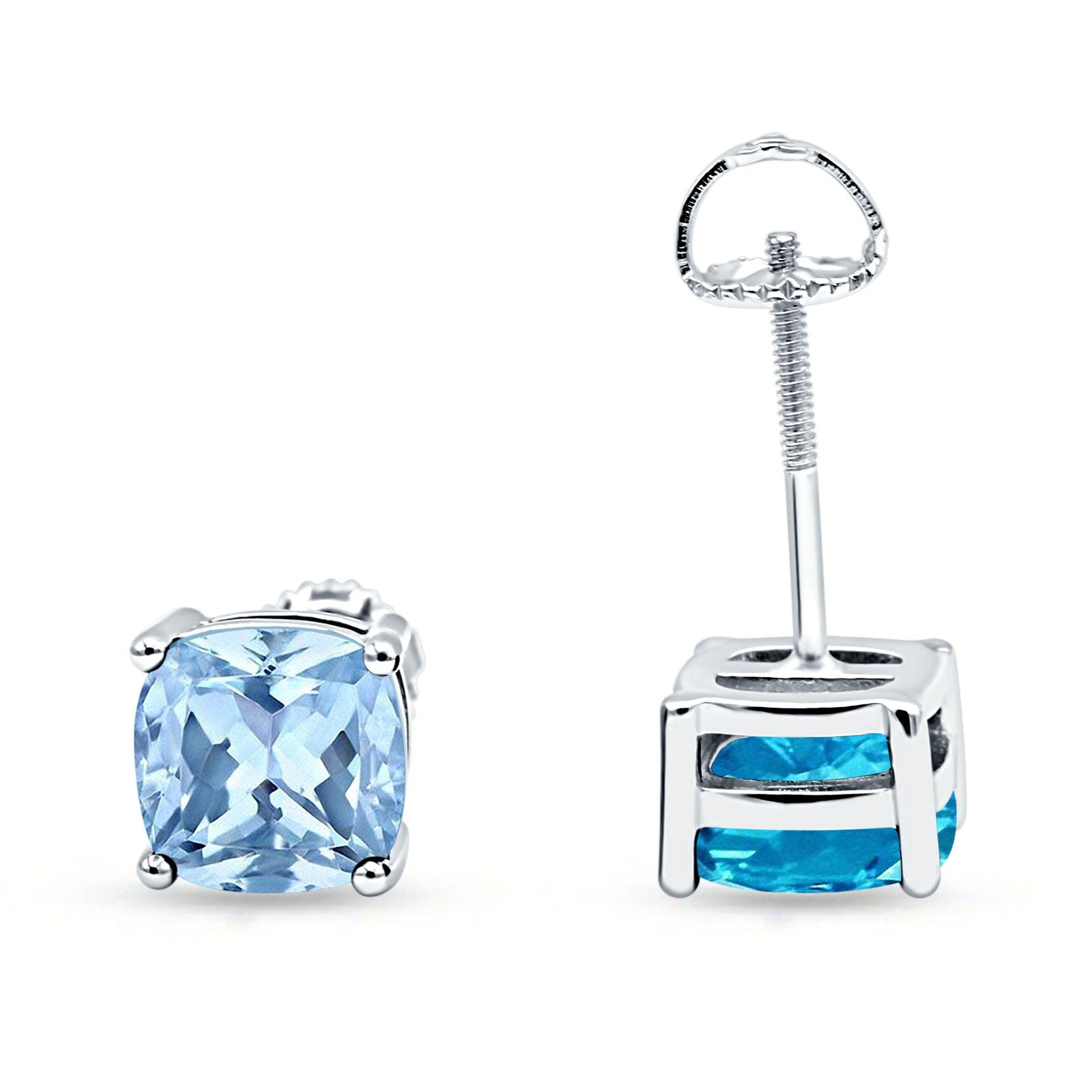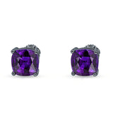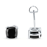 Solitaire Screw Back Stud Earring Excellent Cushion Cut Simulated Cubic Zirconia Solid 925 Sterling Silver