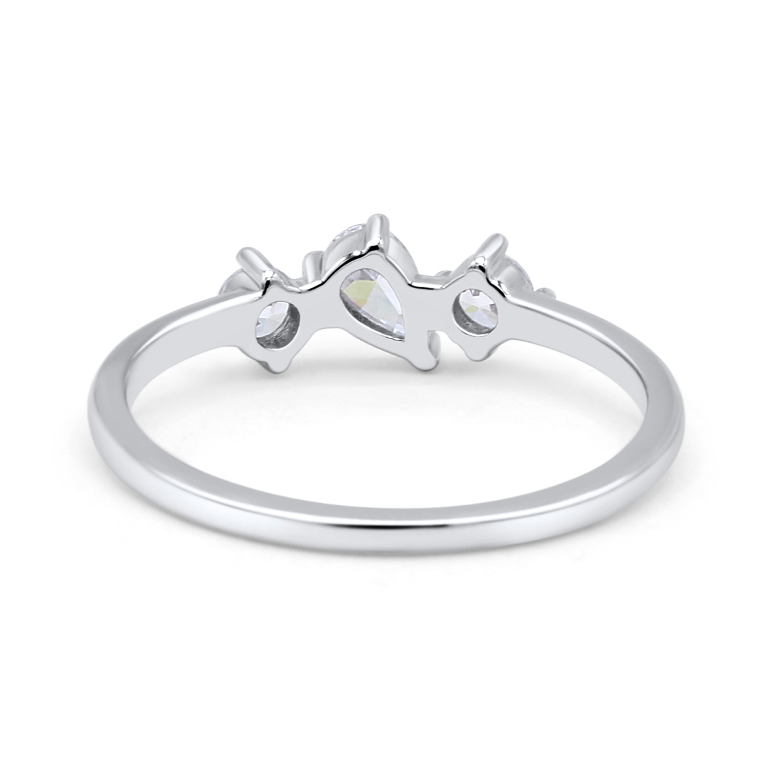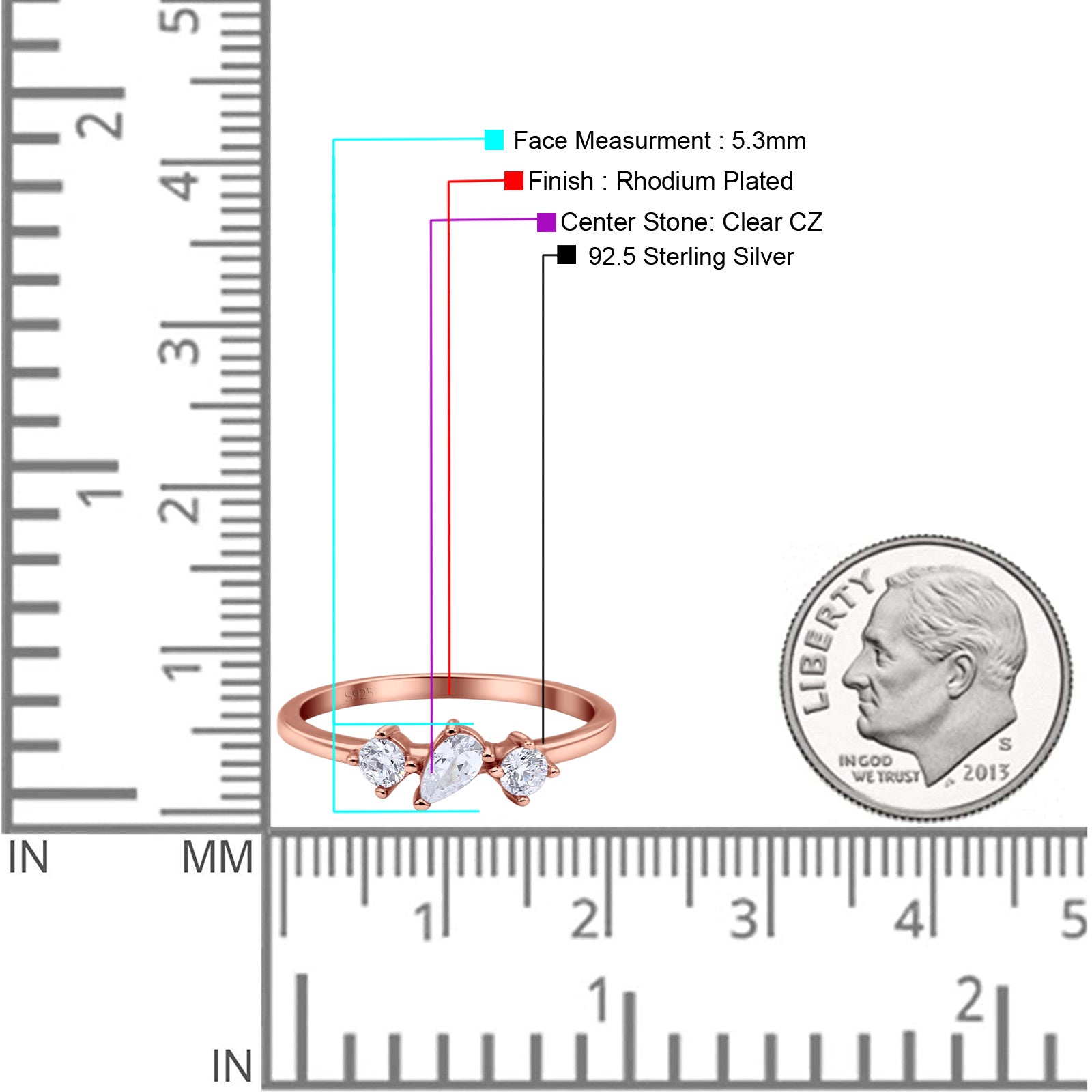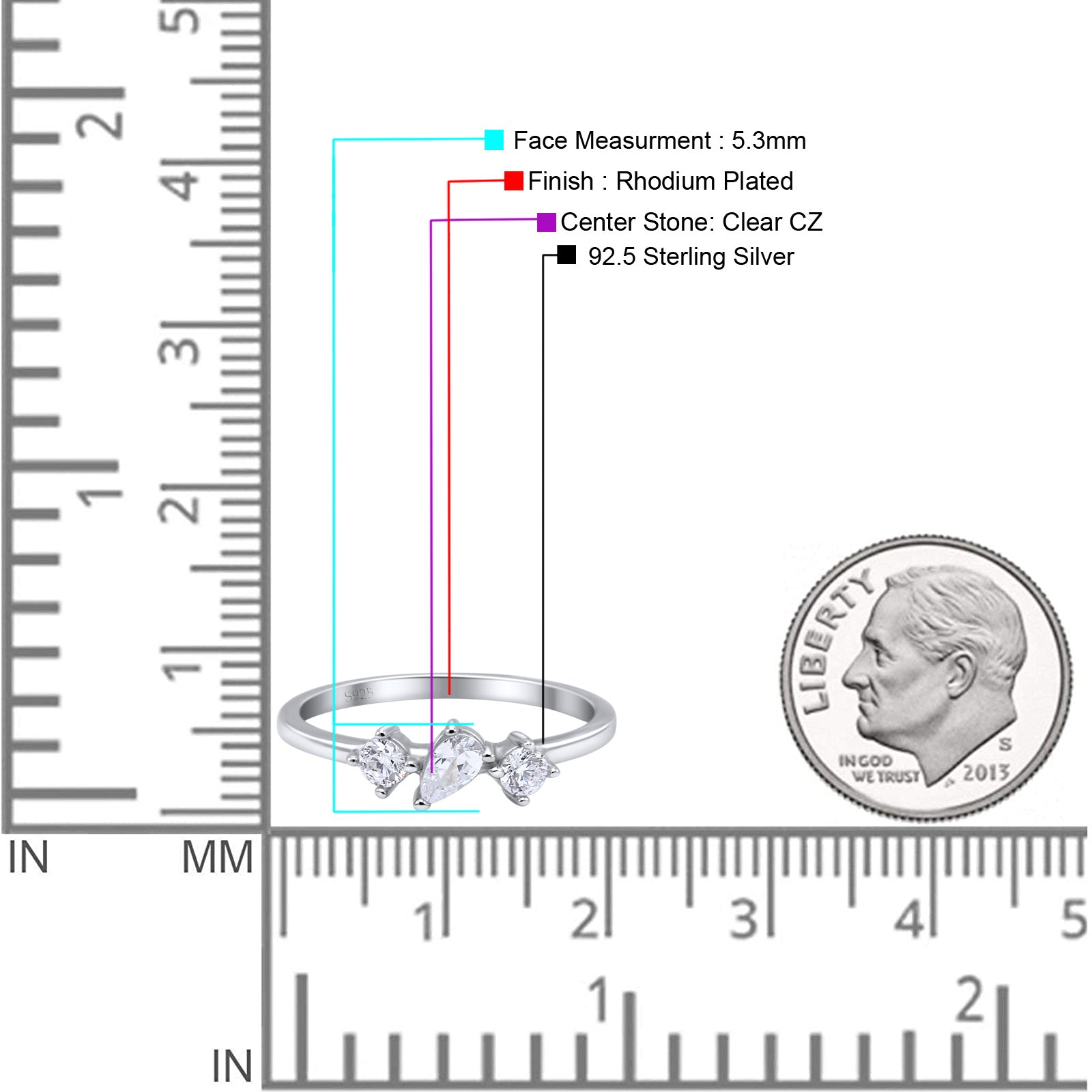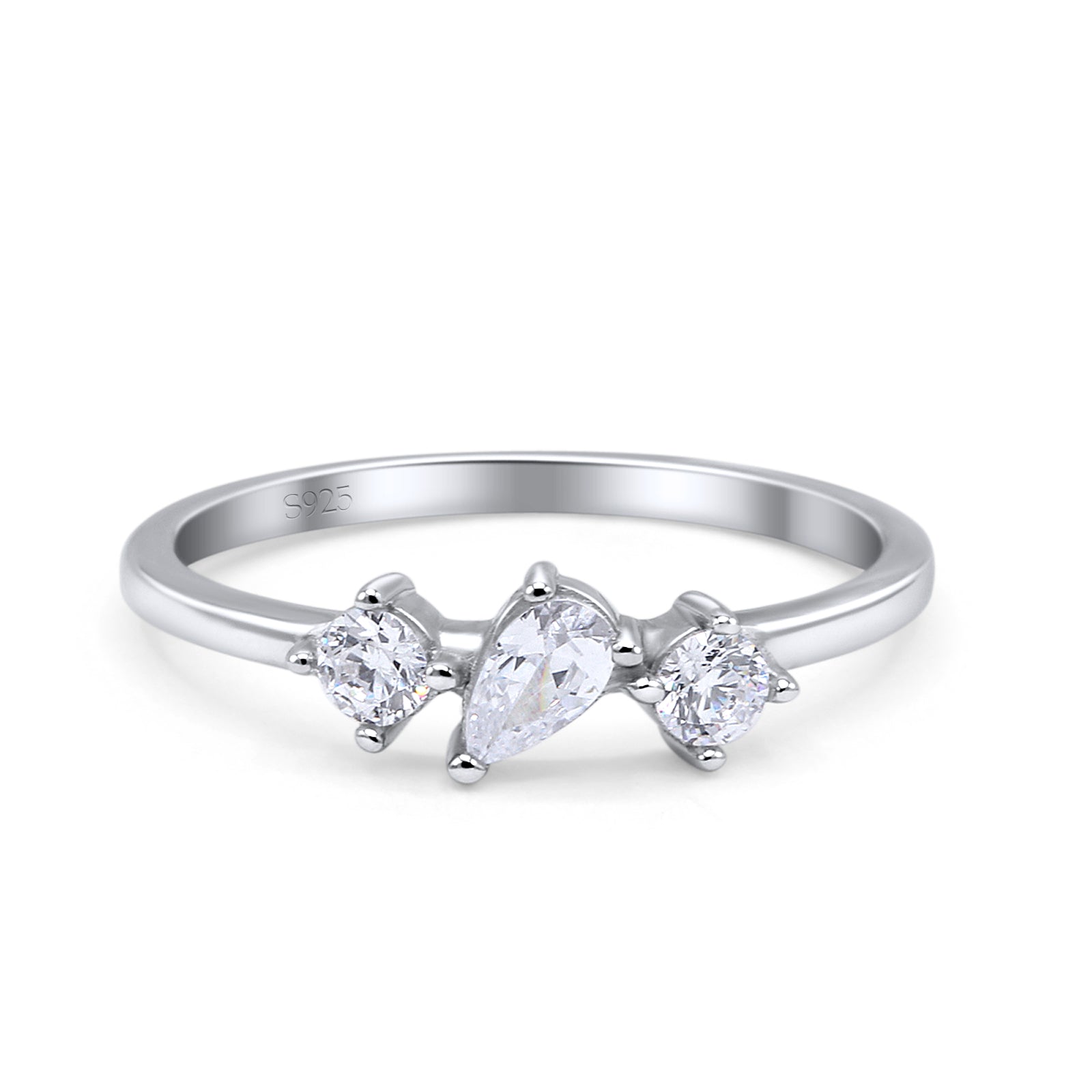 Stacking Three Stone Pear Fashionable Engagement Wedding Ring Band Round Cubic Zirconia 925 Sterling Silver