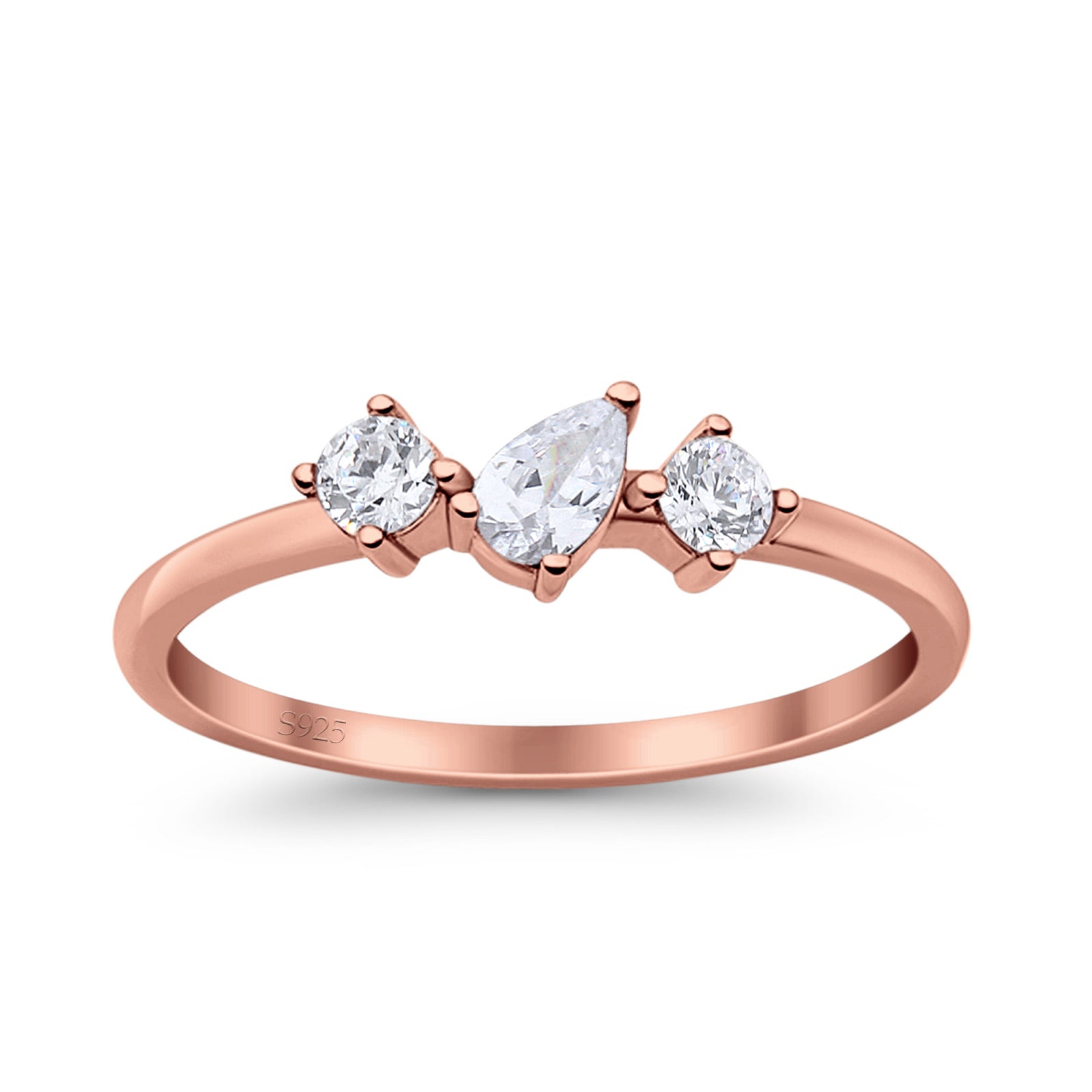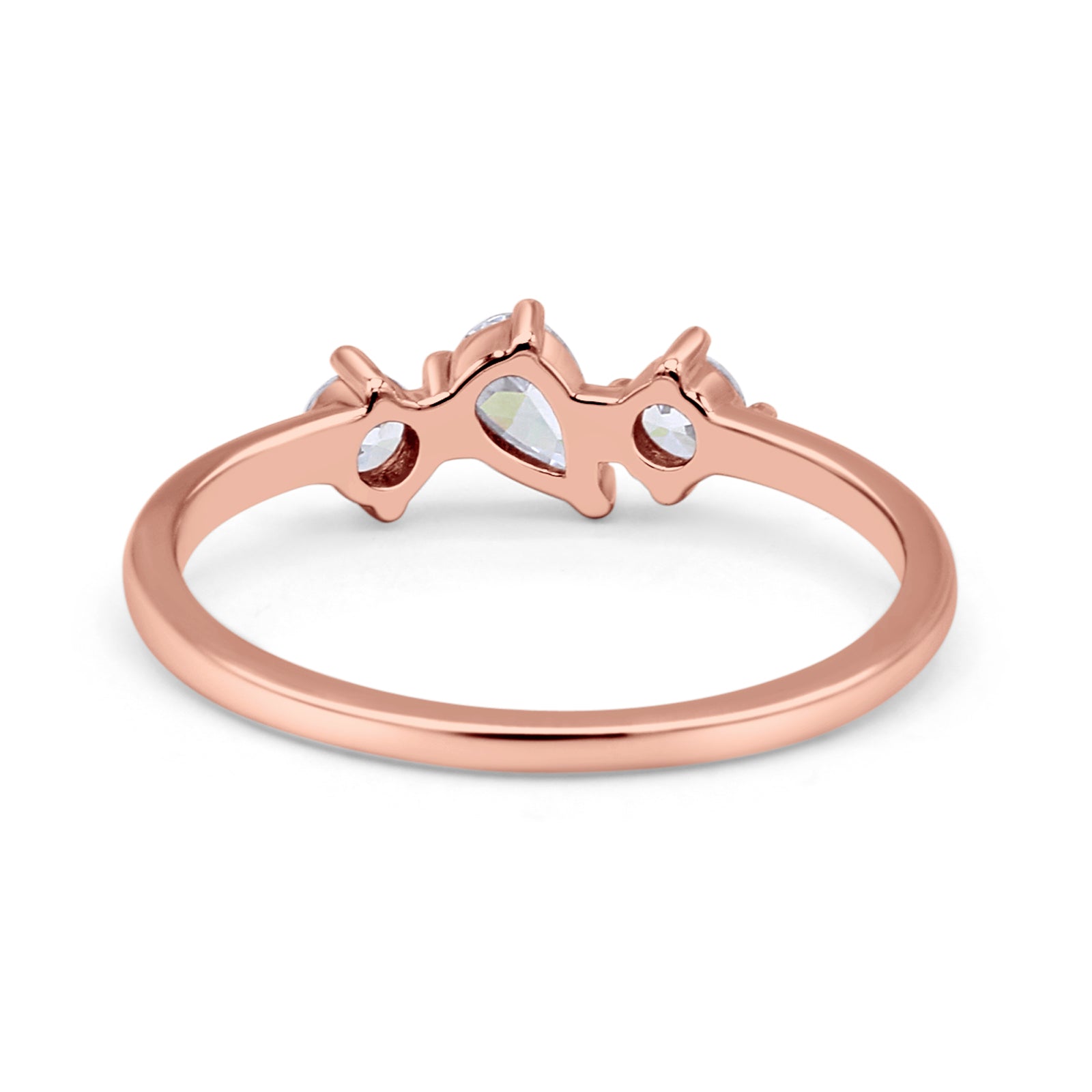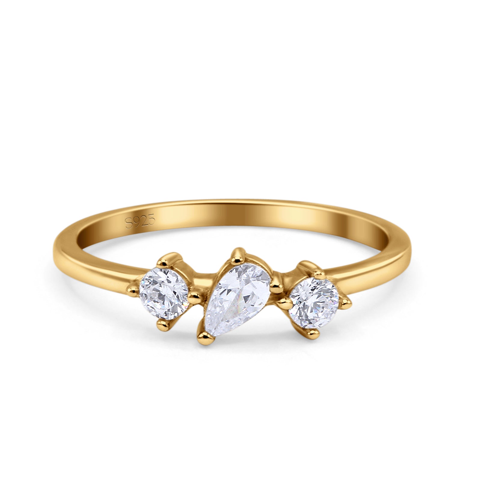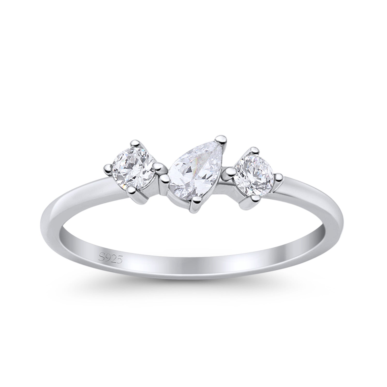 Stacking Three Stone Pear Fashionable Engagement Wedding Ring Band Round Cubic Zirconia 925 Sterling Silver