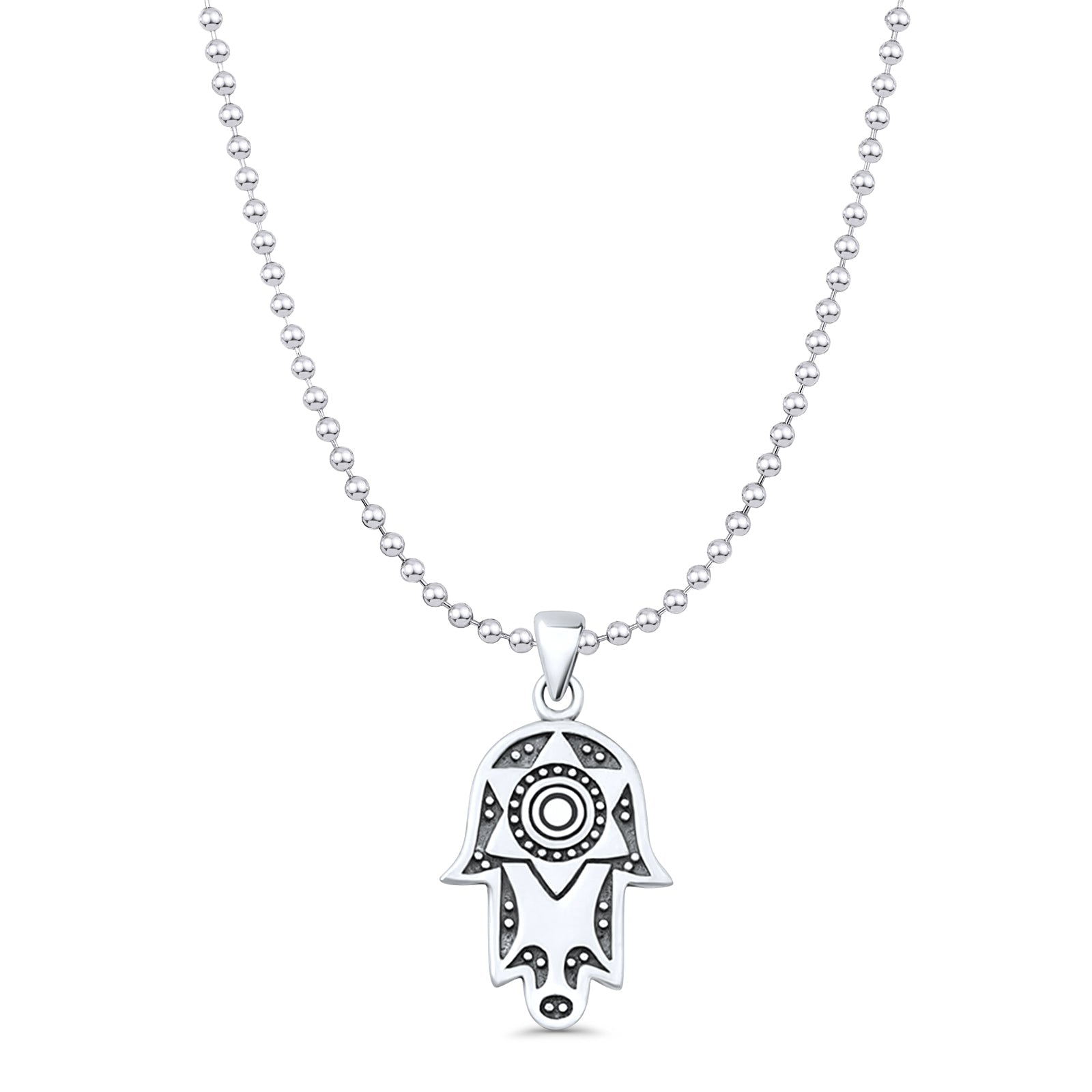 Star Hand Of Hamsa Pendant Bead Chain Necklace Oxidized 925 Sterling Silver