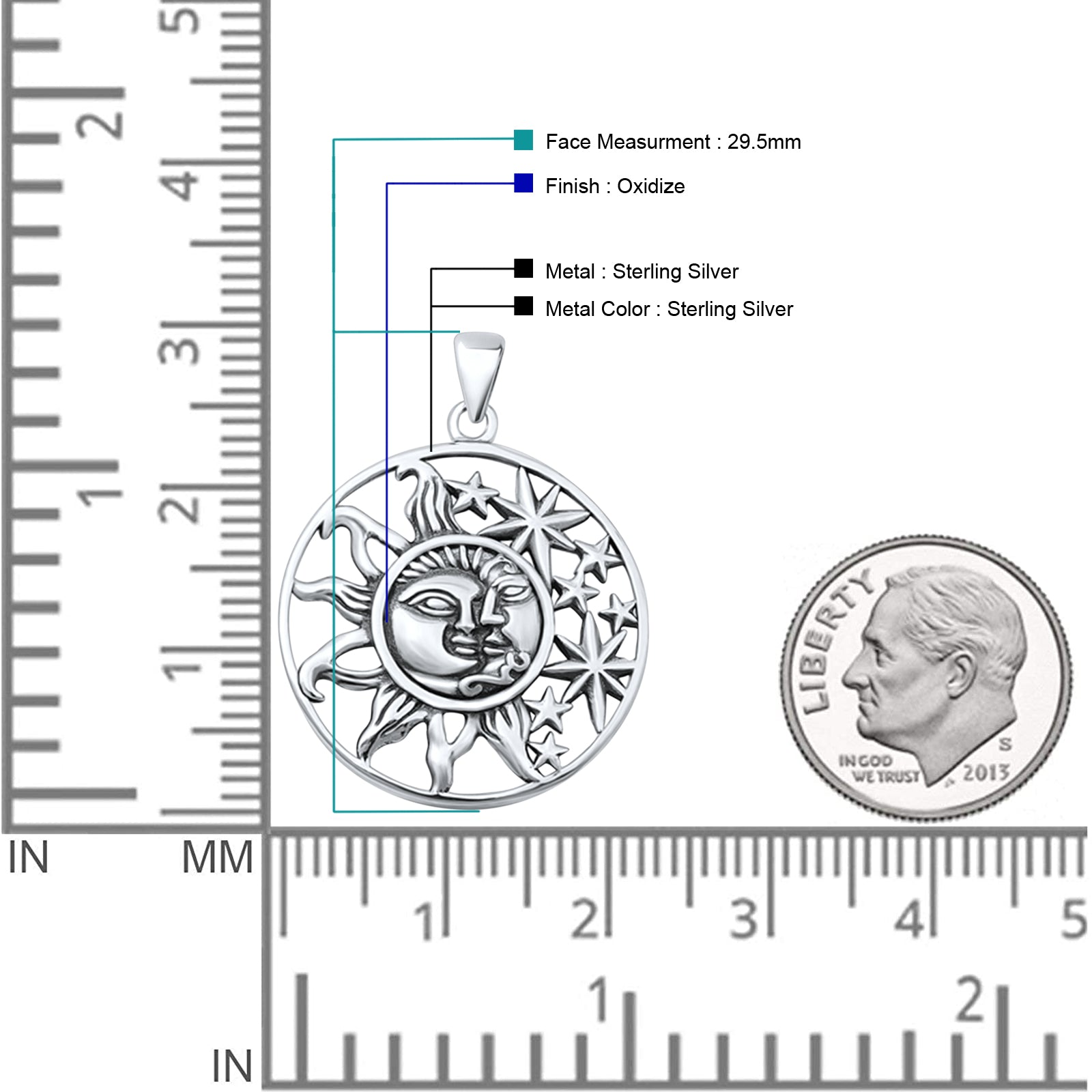 Style: Oxidized Sun Moon & Stars Pendant Necklace