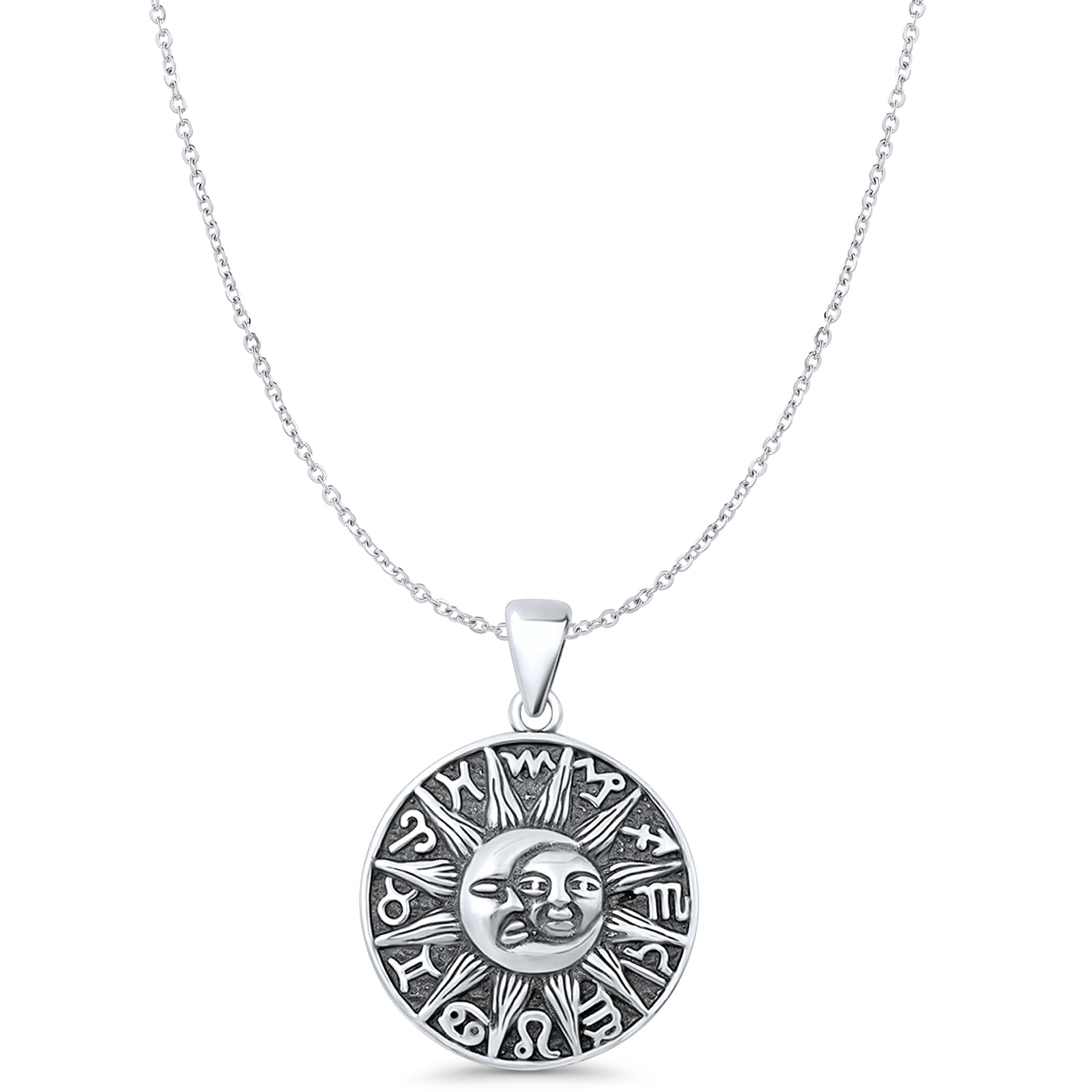 Sun, Moon & Zodiacs Charm Pendant Cable Chain Necklace Oxidized 925 Sterling Silver