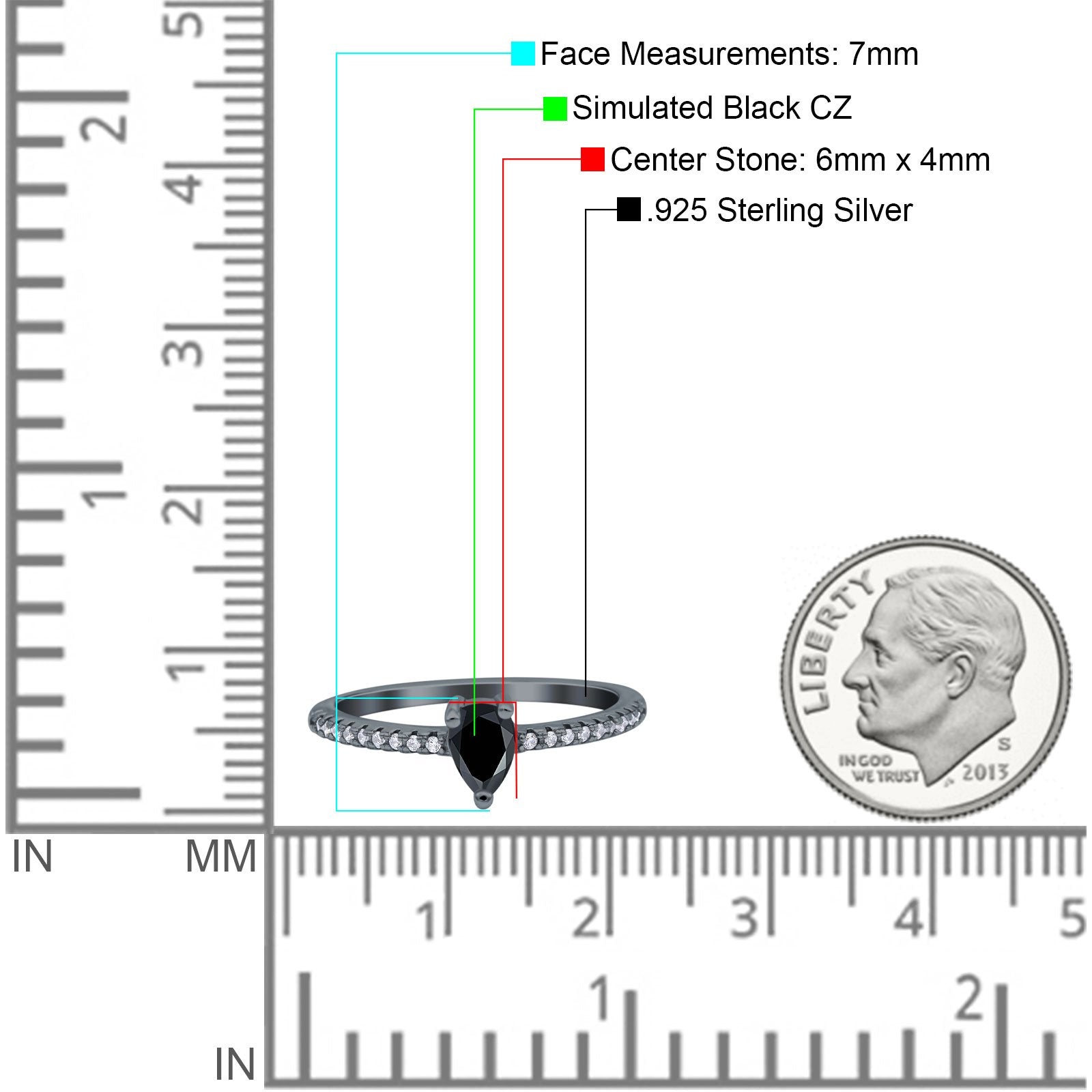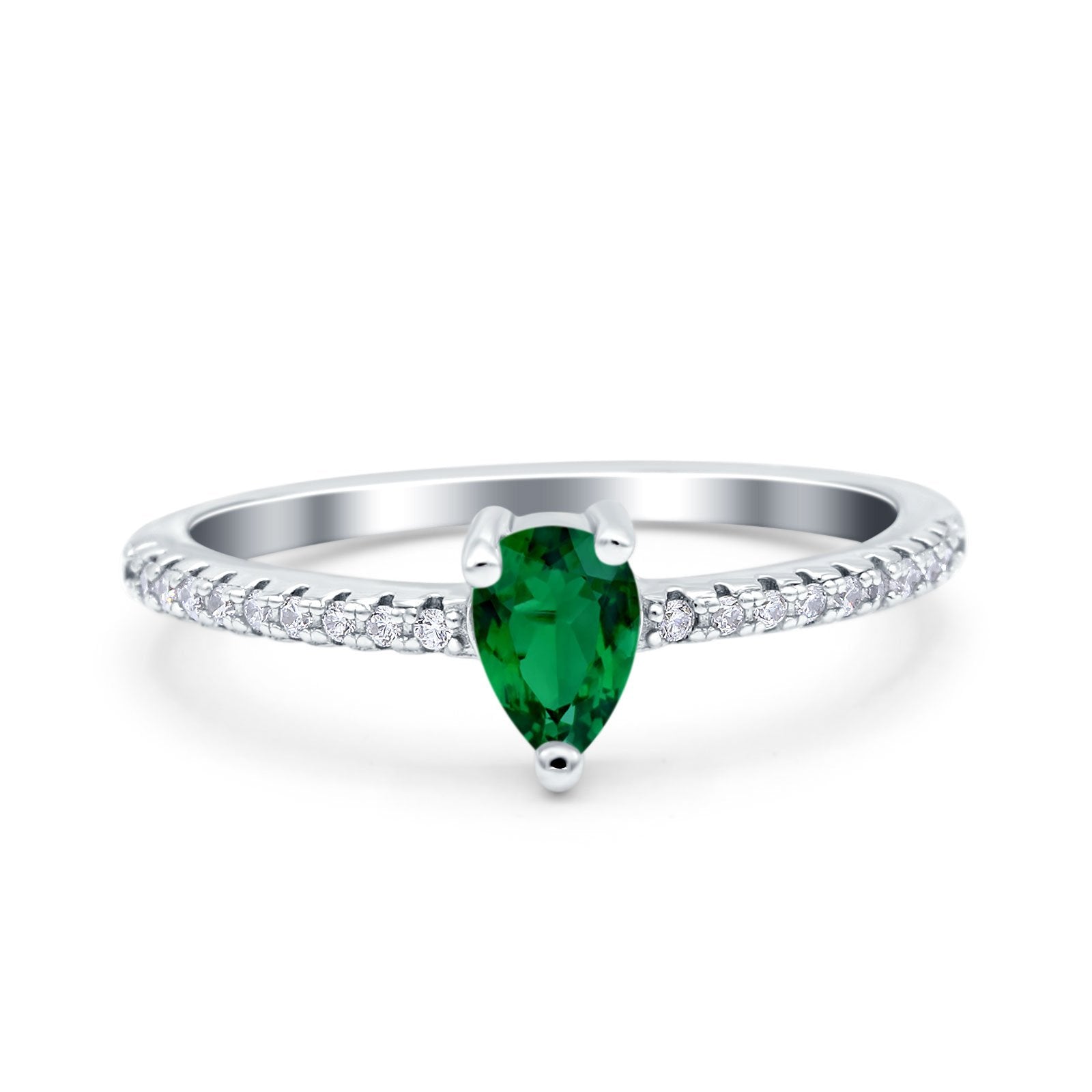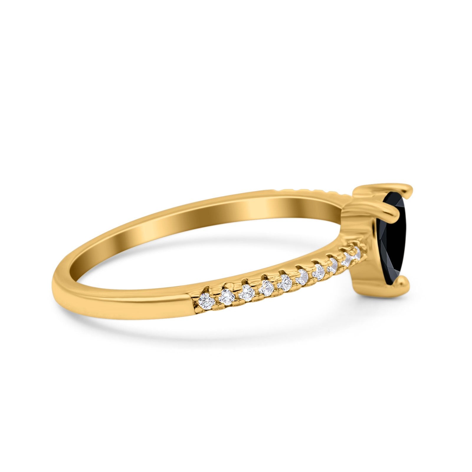 Teardrop Pear Art Deco Wedding Ring Simulated Cubic Zirconia 925 Sterling Silver