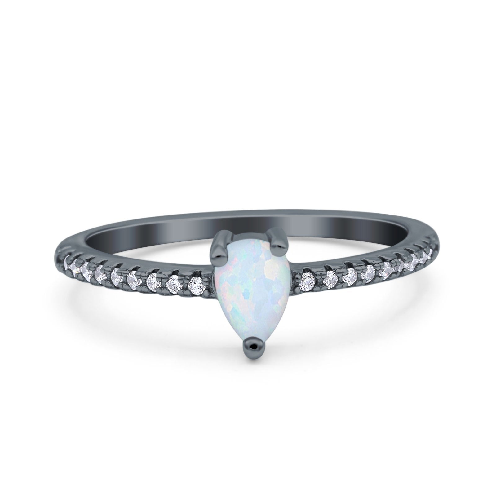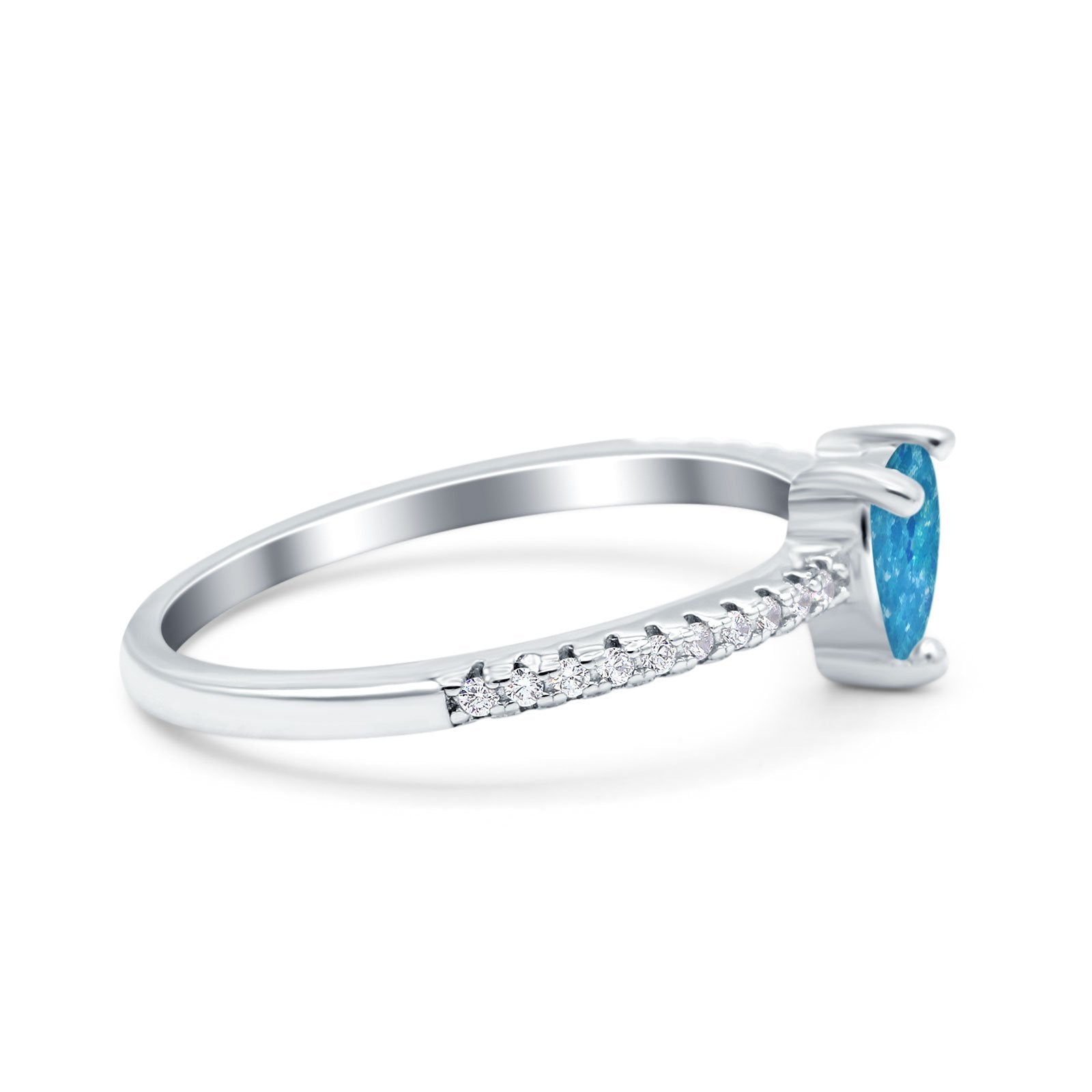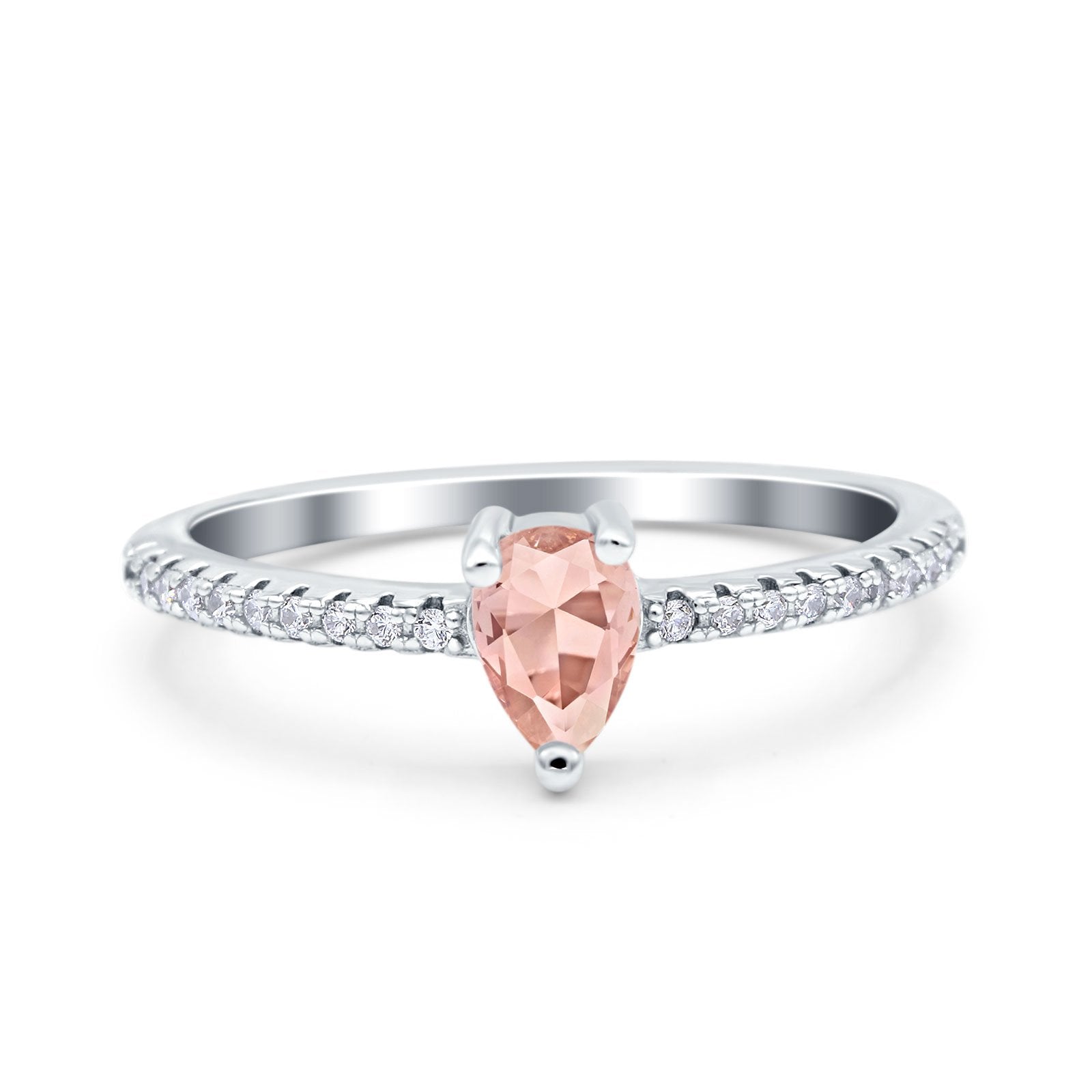 Teardrop Pear Art Deco Wedding Ring Simulated Cubic Zirconia 925 Sterling Silver