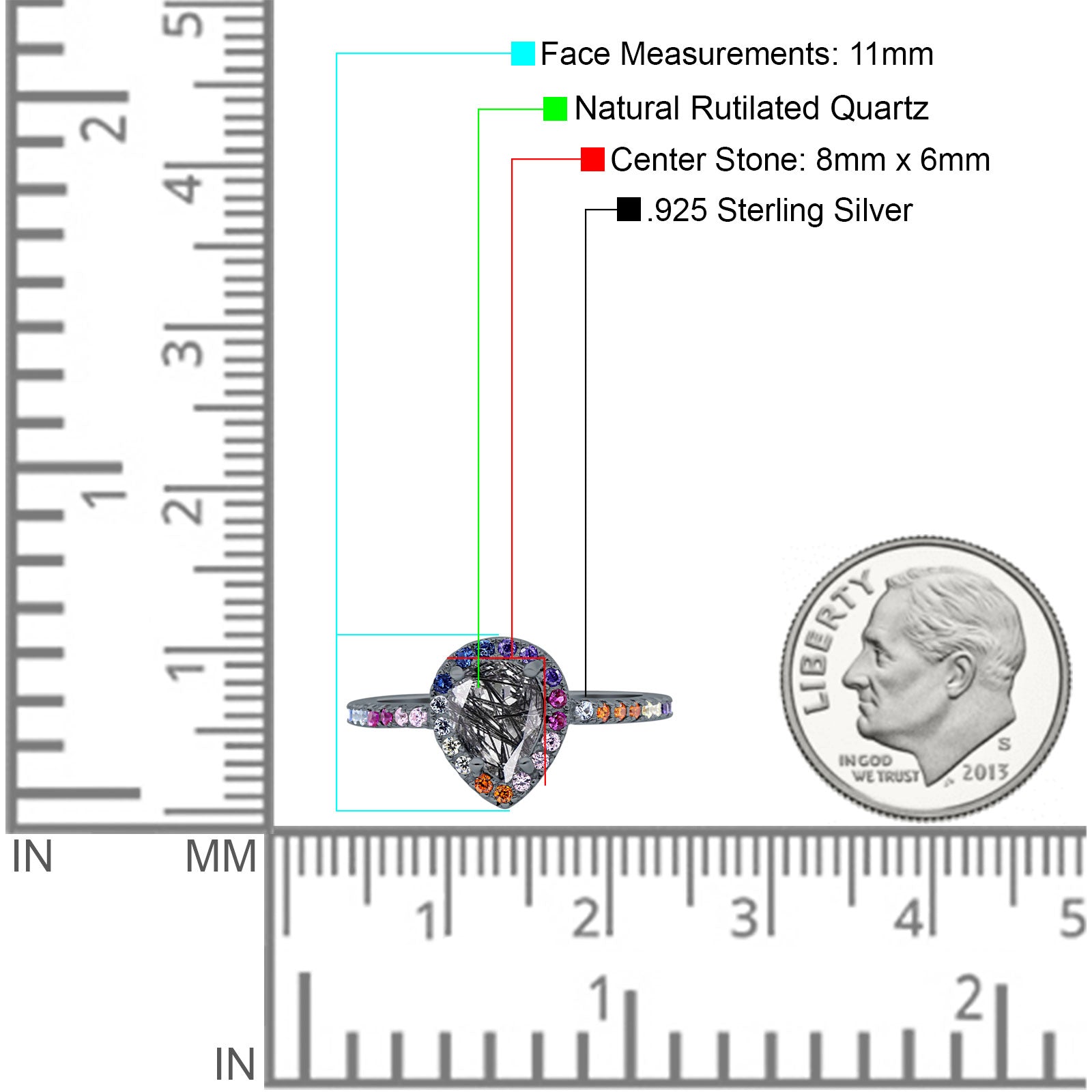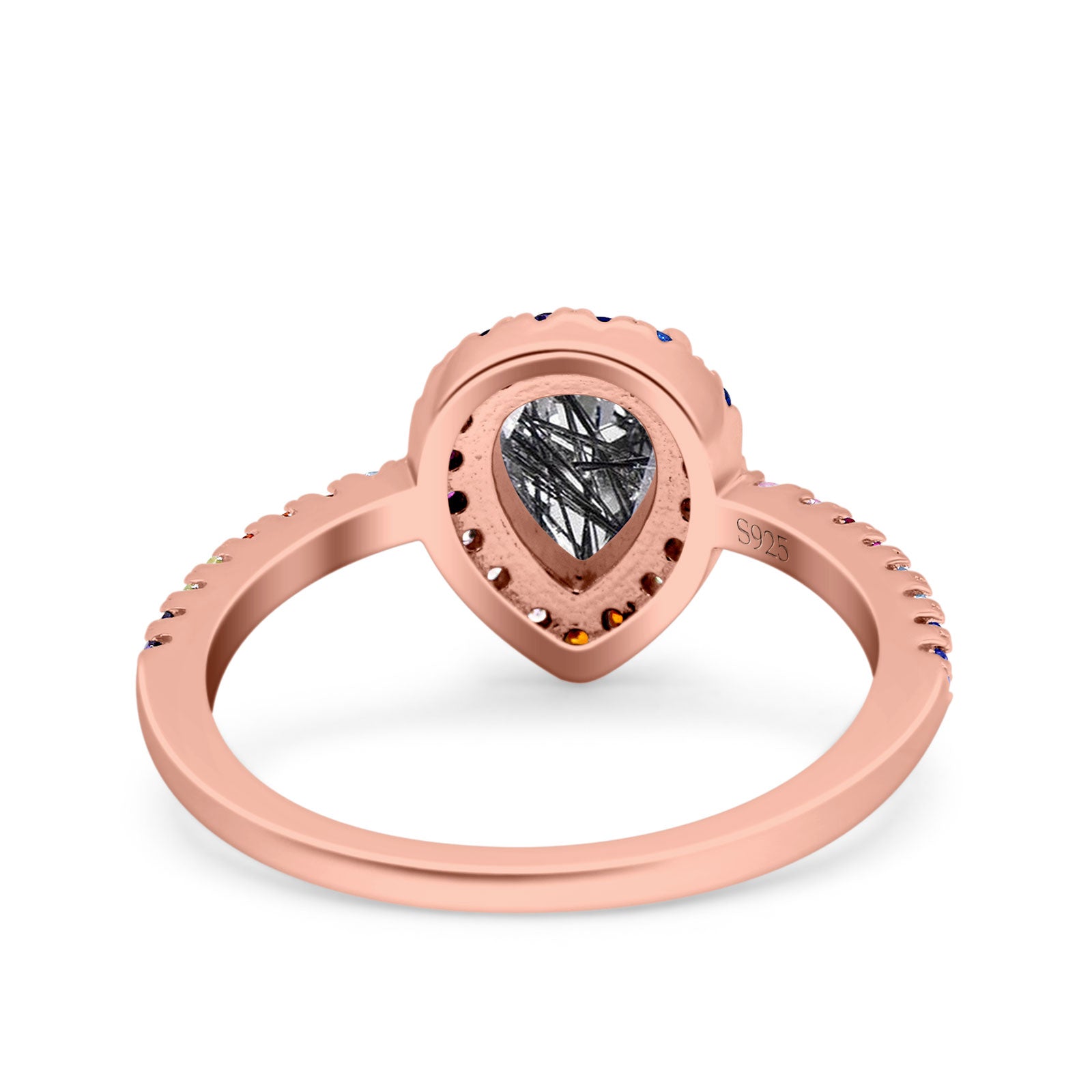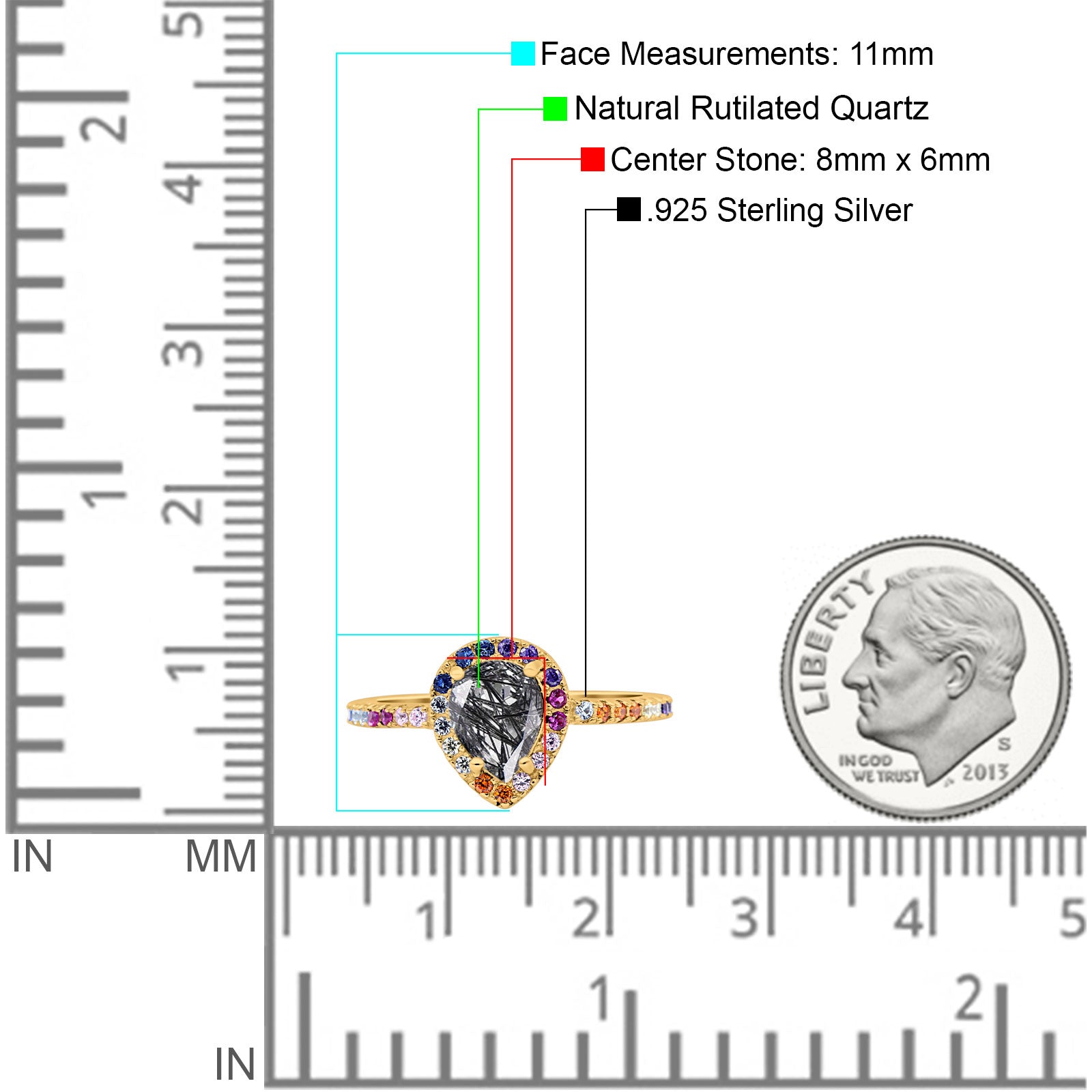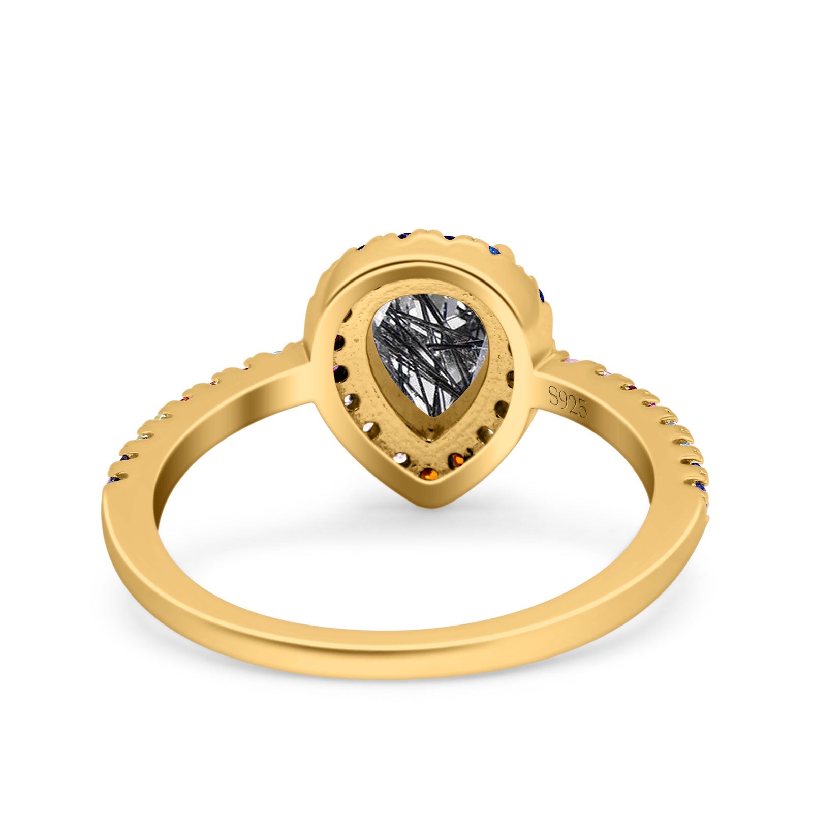Teardrop Pear Natural Rutilated Quartz Vintage Style Ring 925 Sterling Silver