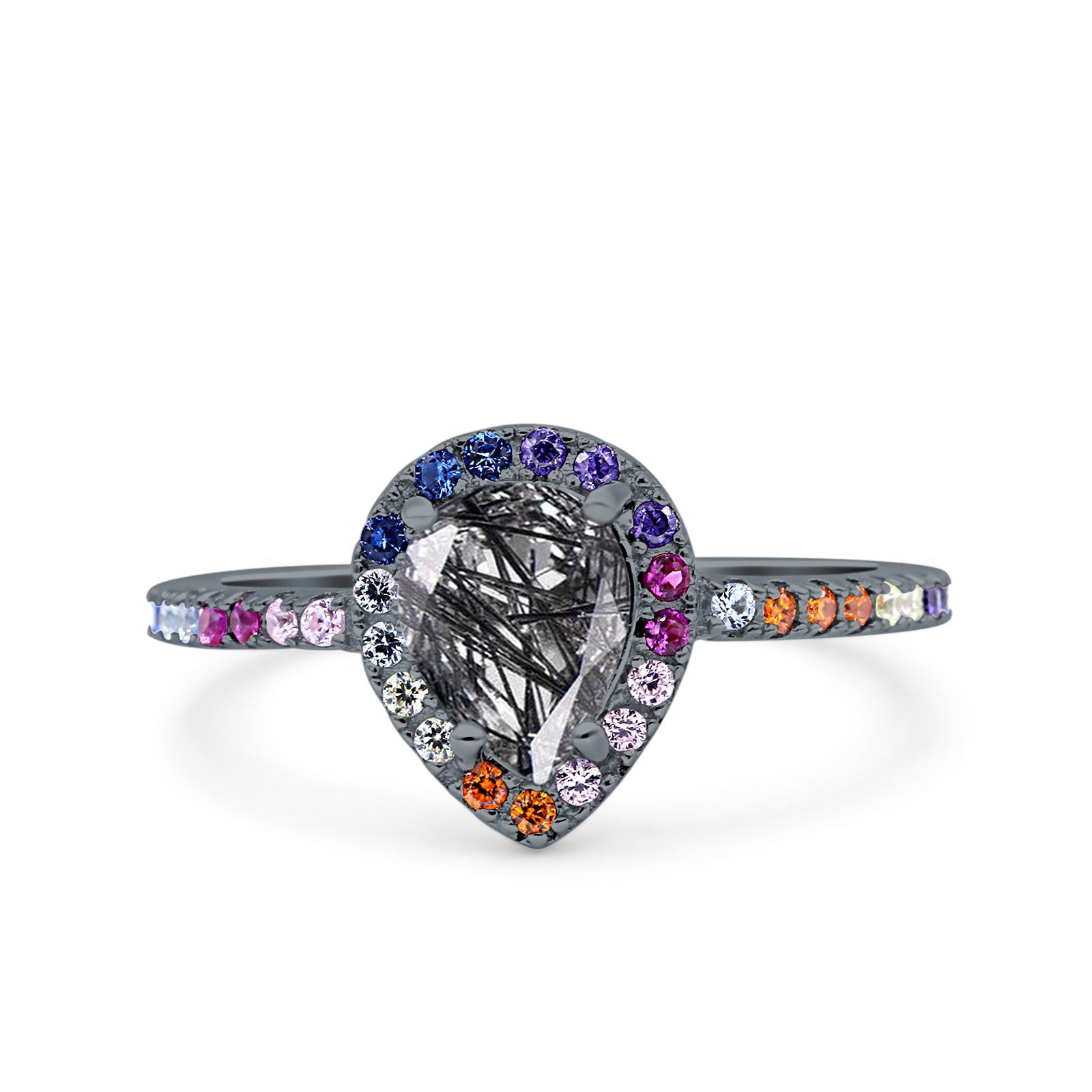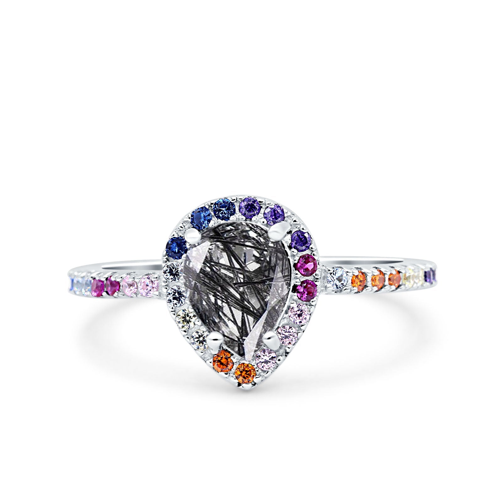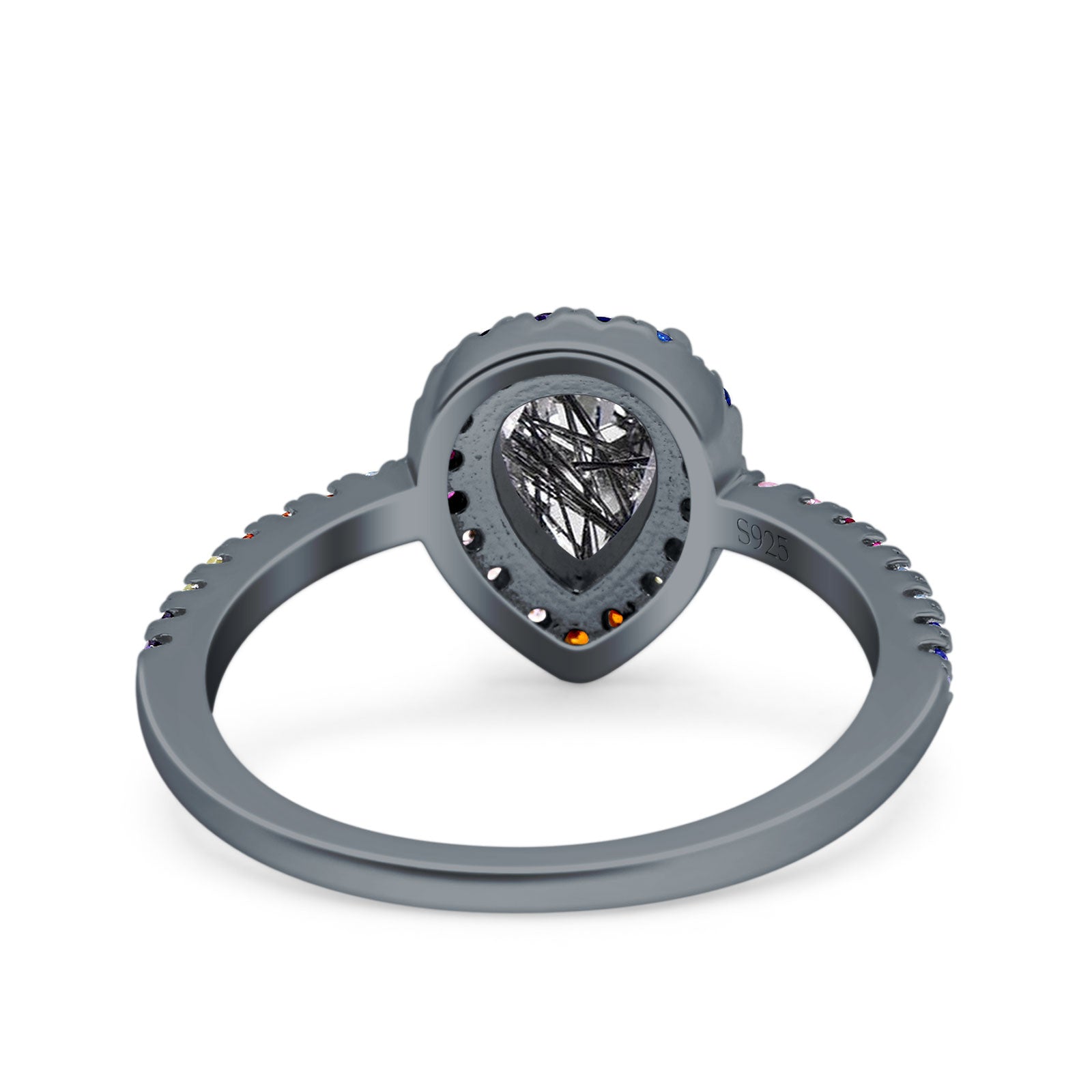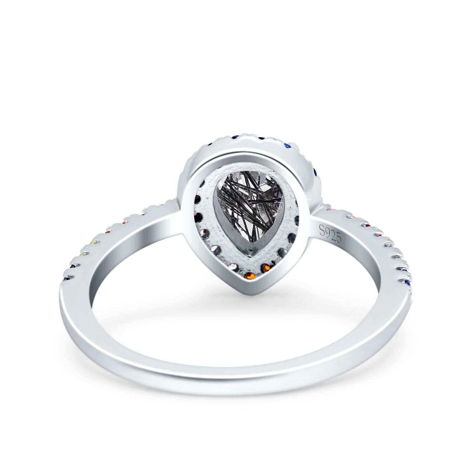 Teardrop Pear Natural Rutilated Quartz Vintage Style Ring 925 Sterling Silver