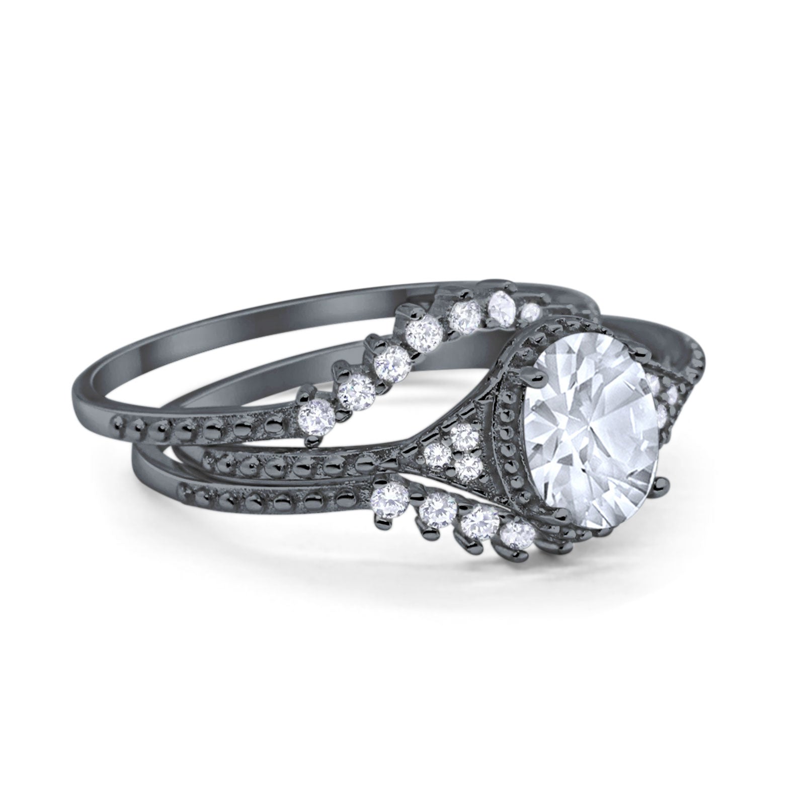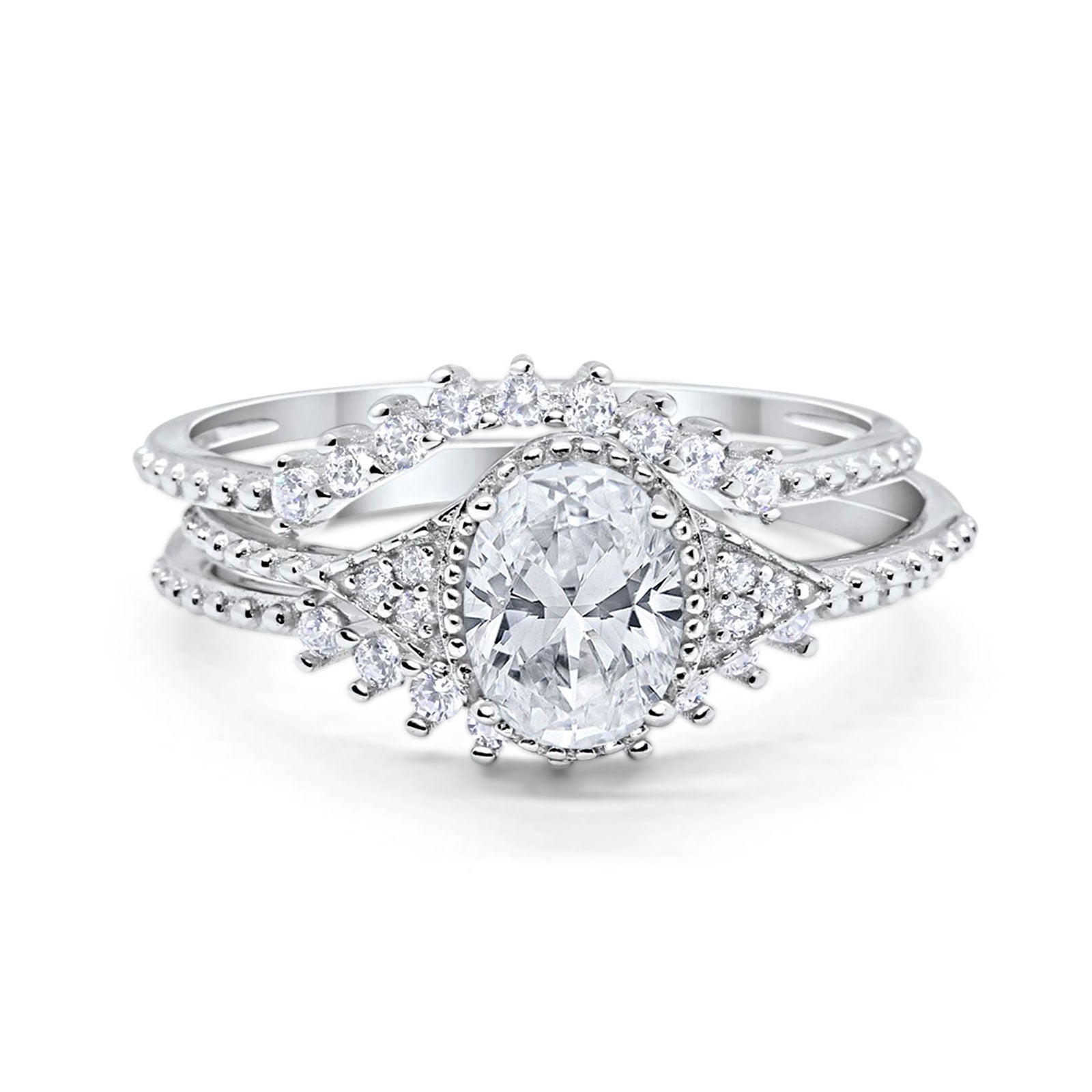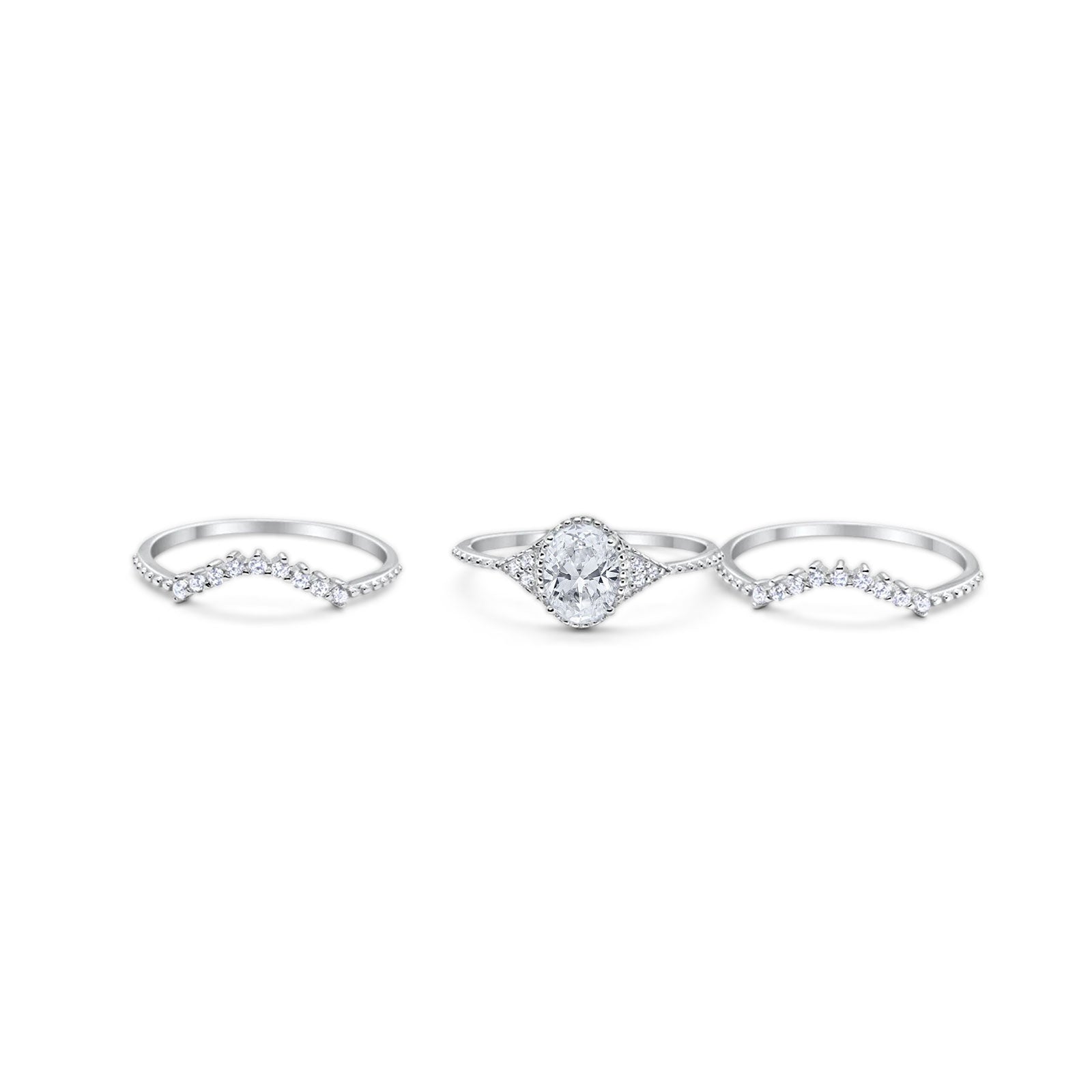 Three Piece Oval Moissanite Beaded Ring 925 Sterling Silver