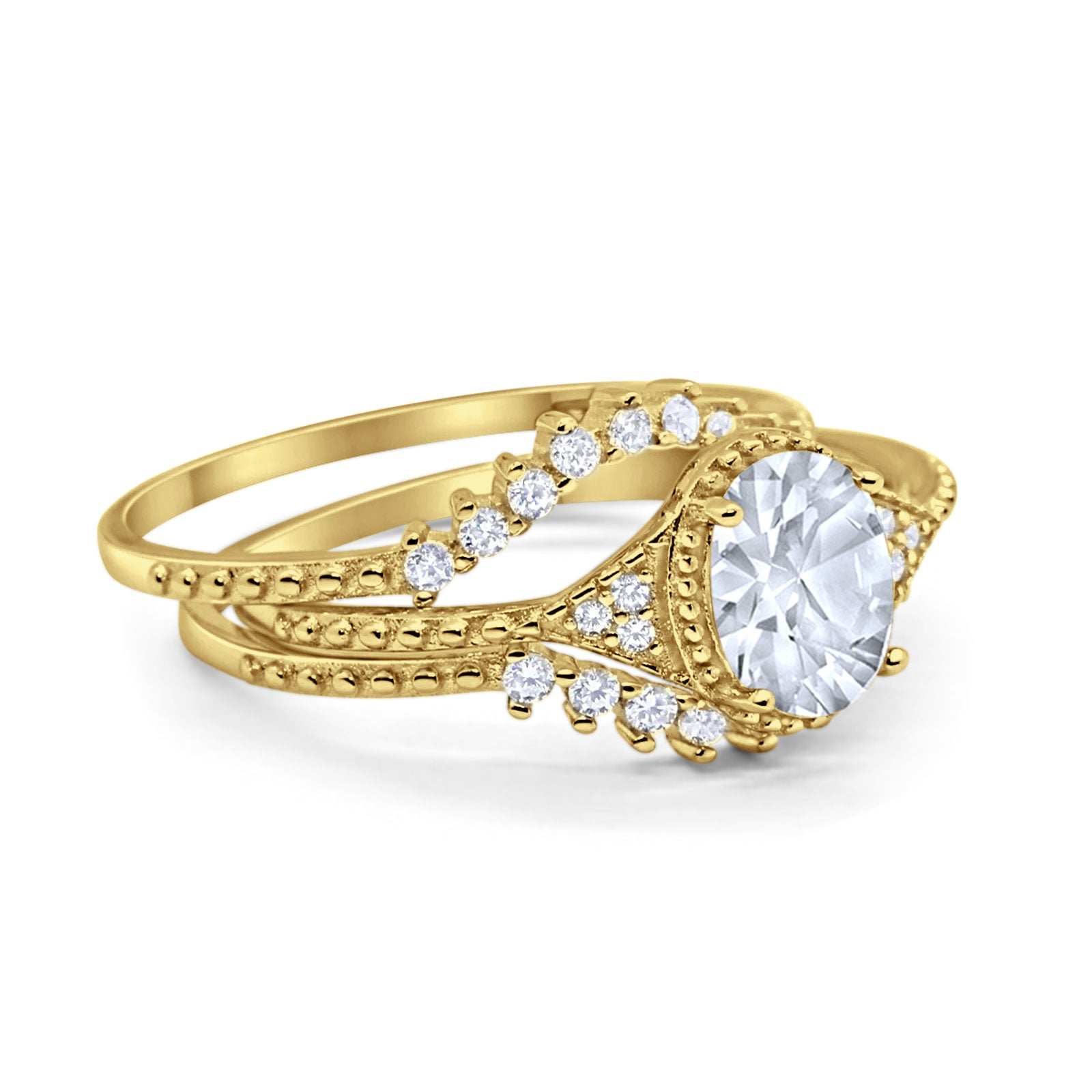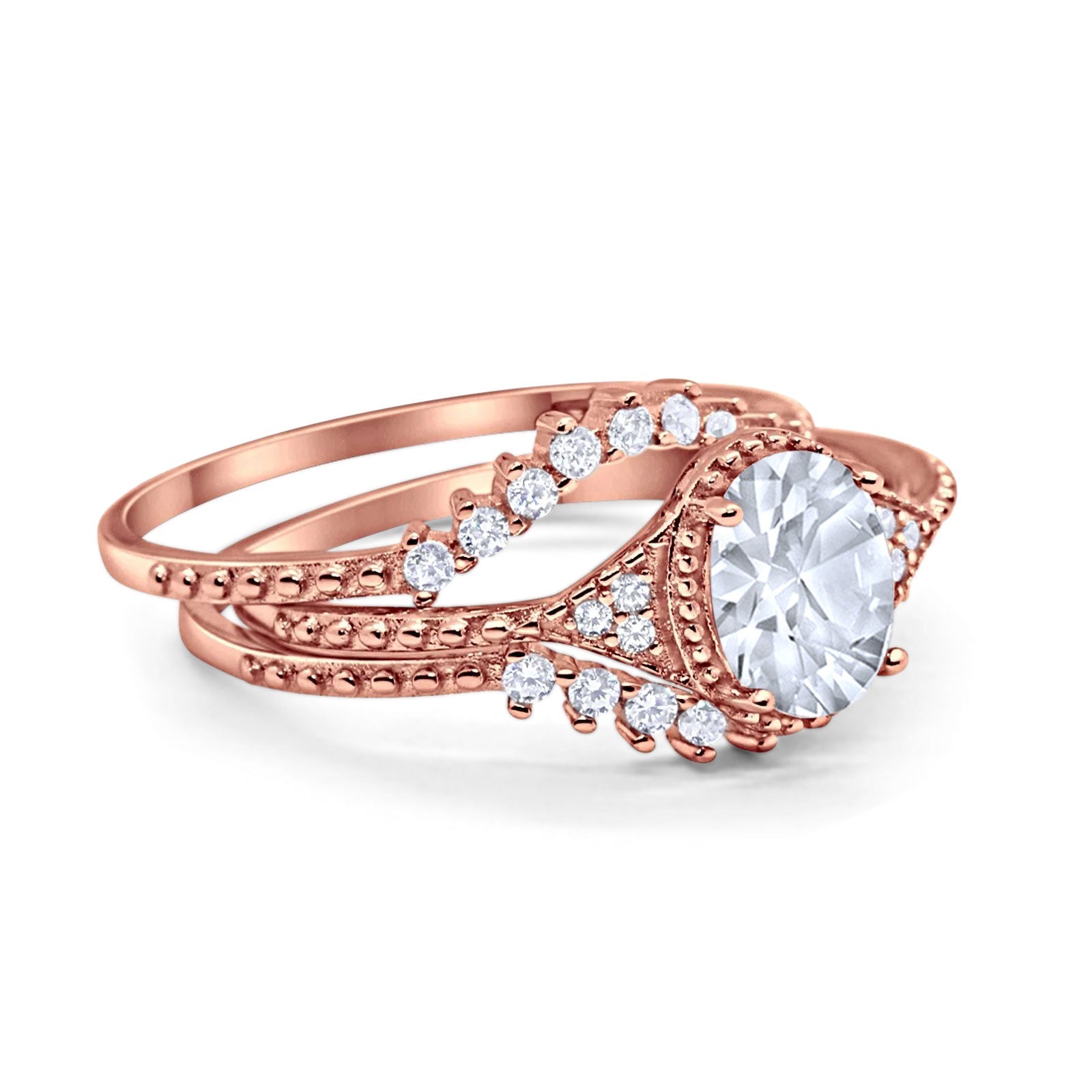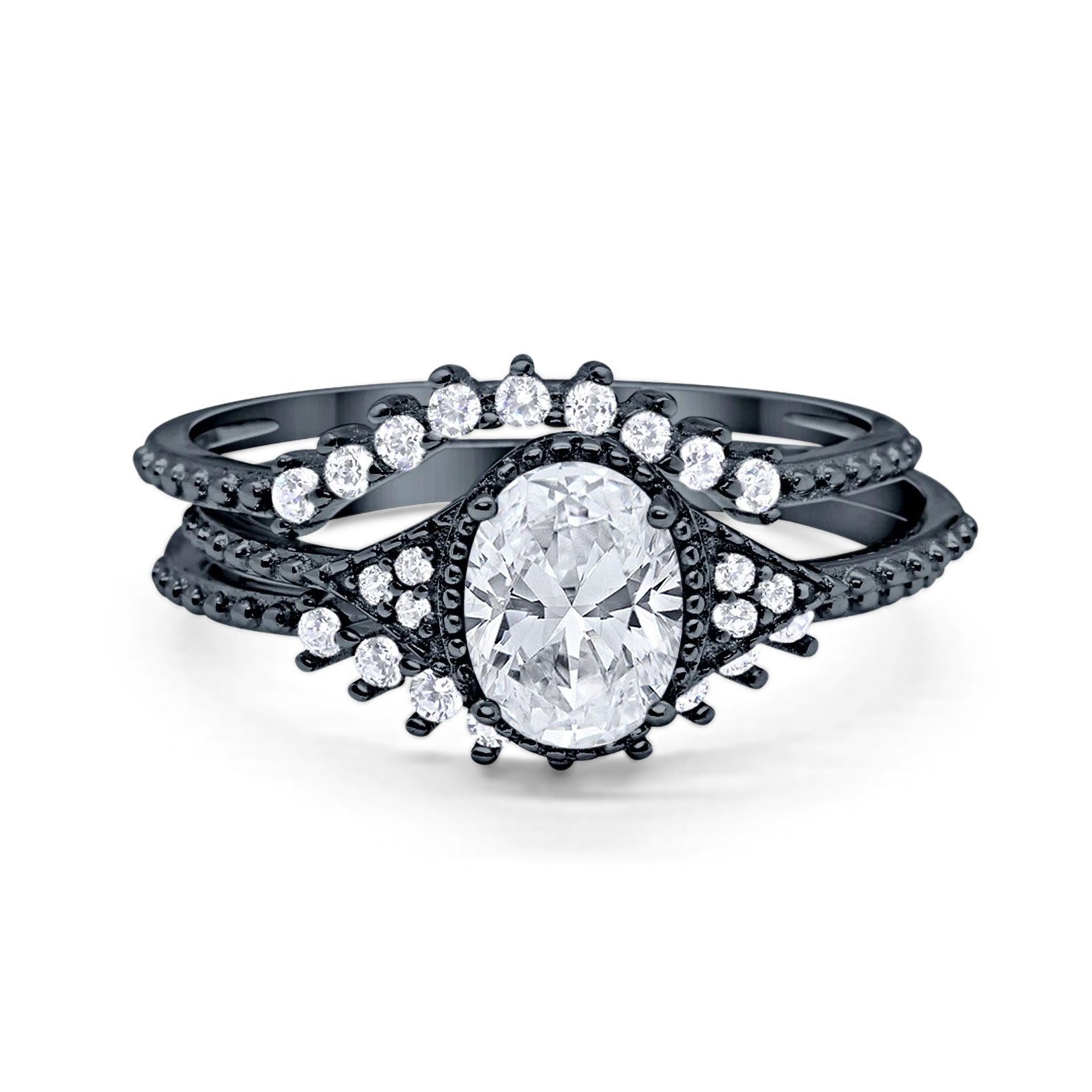 Three Piece Oval Moissanite Beaded Ring 925 Sterling Silver
