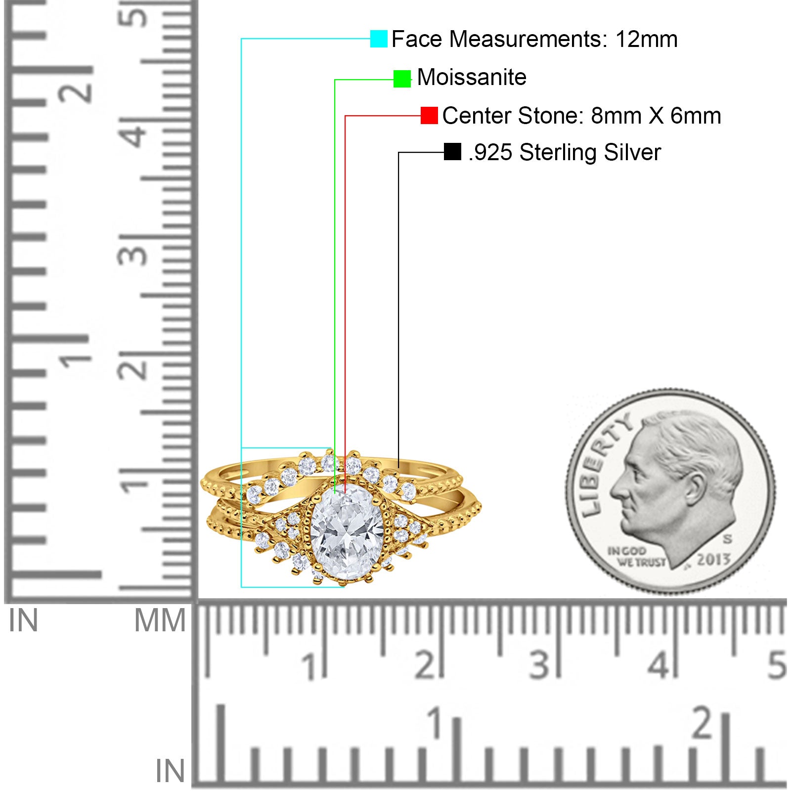 Center Stone Measurements: 8mmX6mm.
