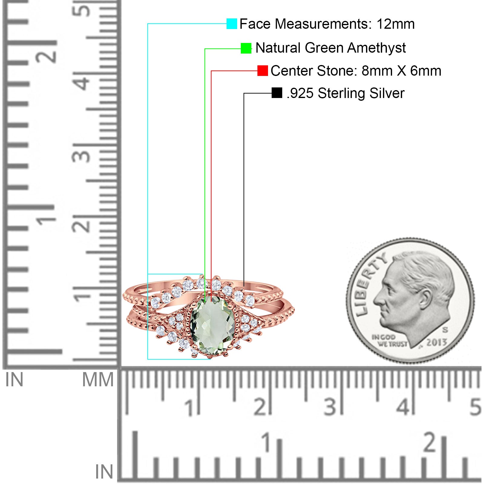 Natural Green Amethyst Prasiolite Rose Tone Silver