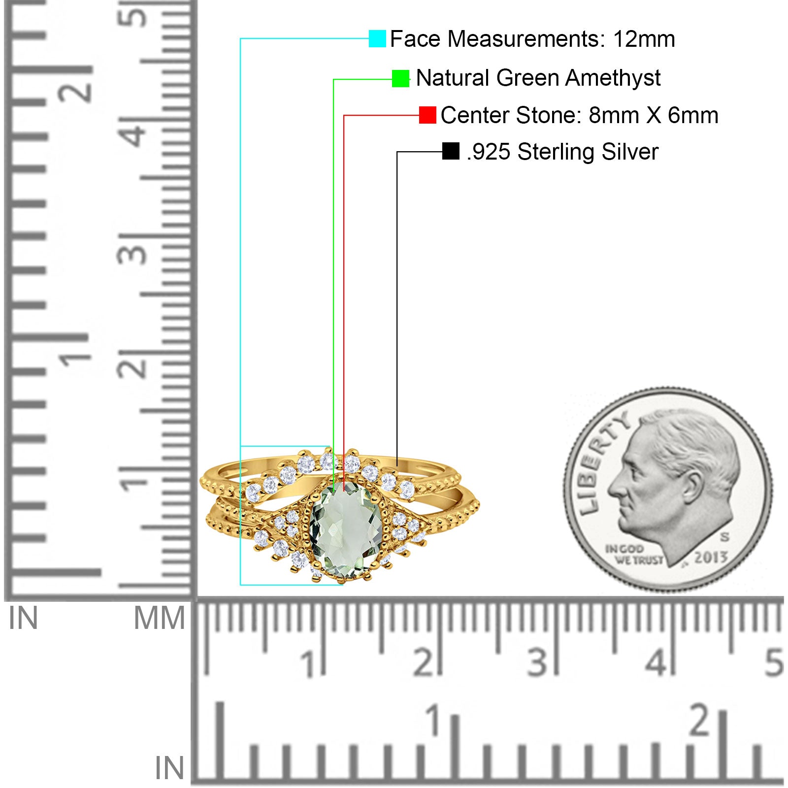 Center Stone Measurements: 8mmX6mm.