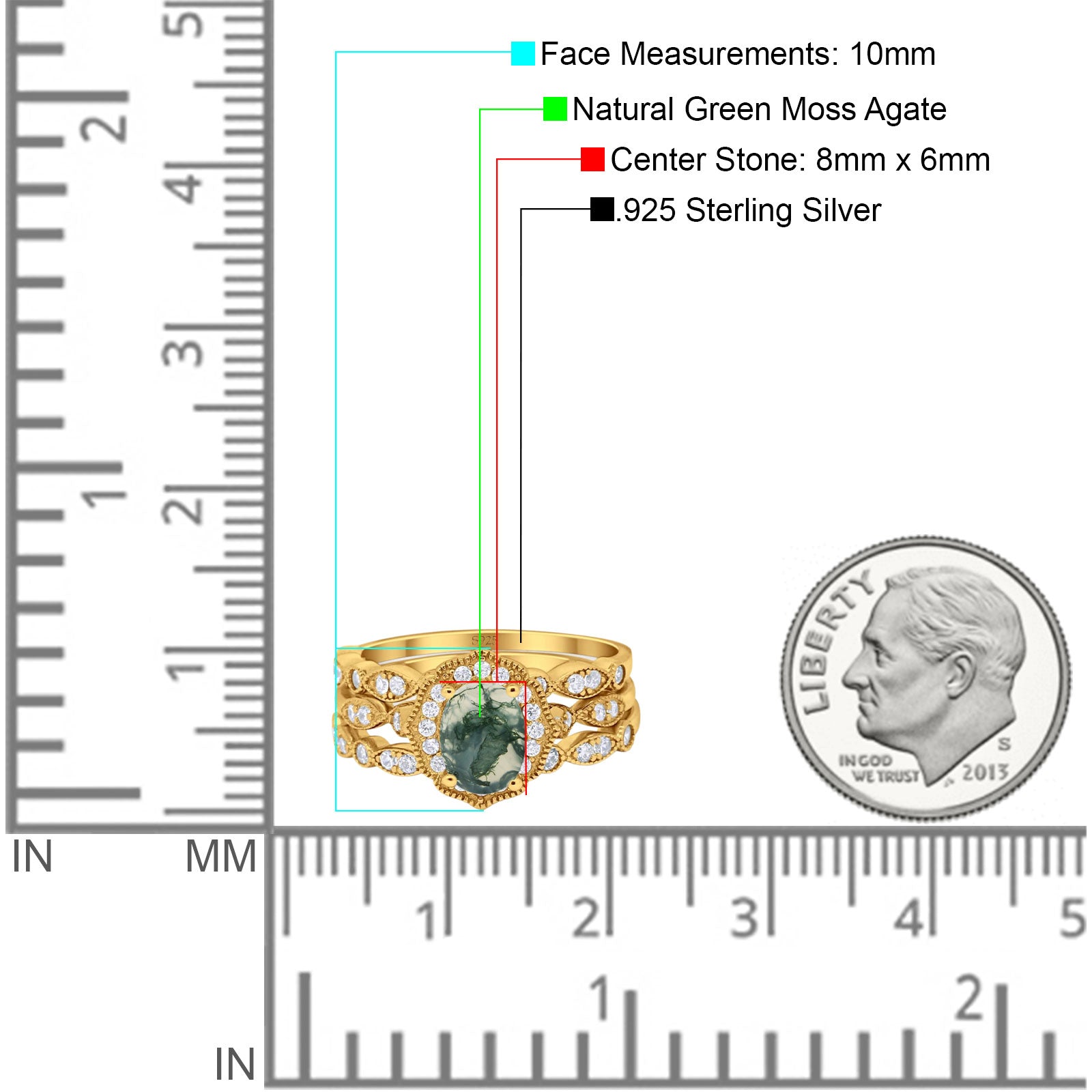 Center Stone Measurements:8mmx6mm.